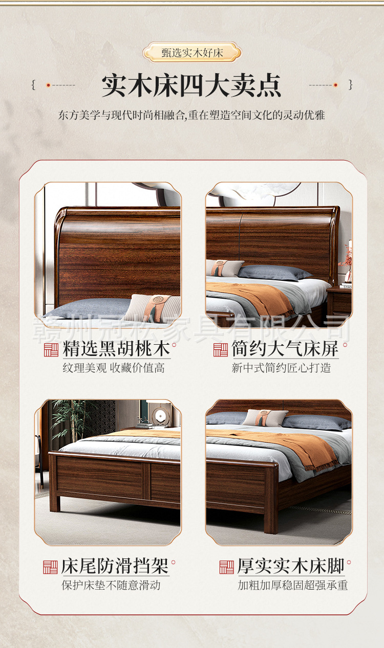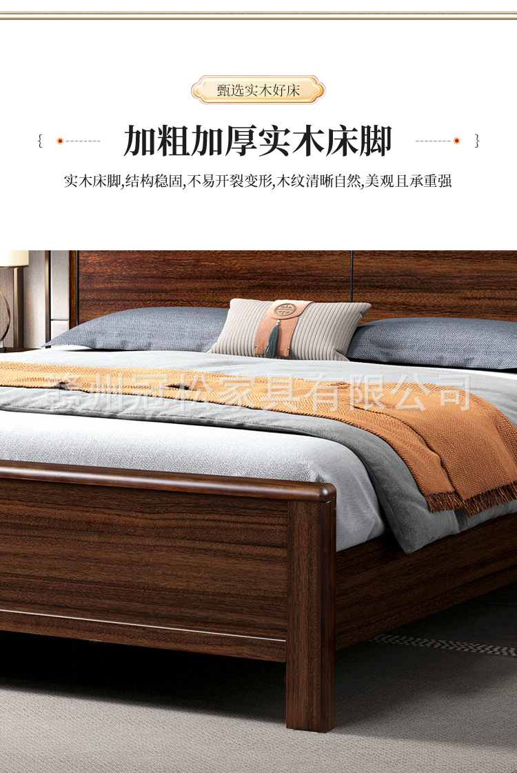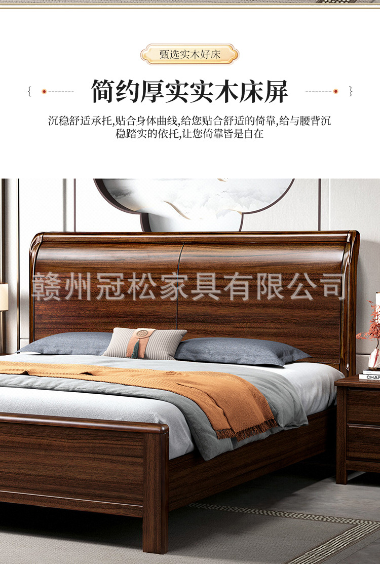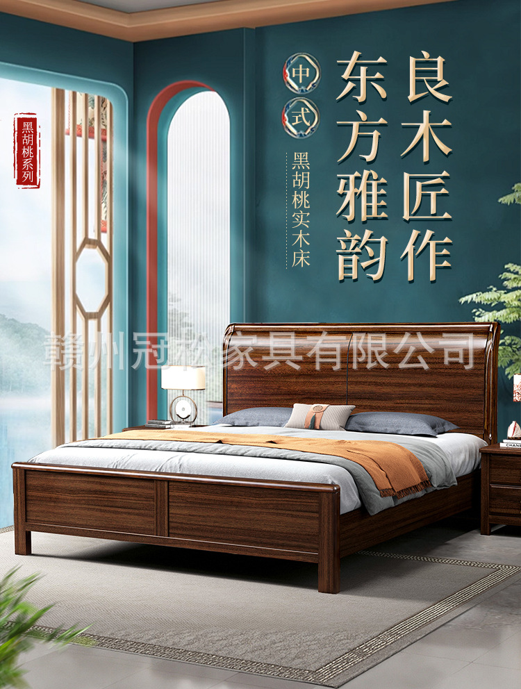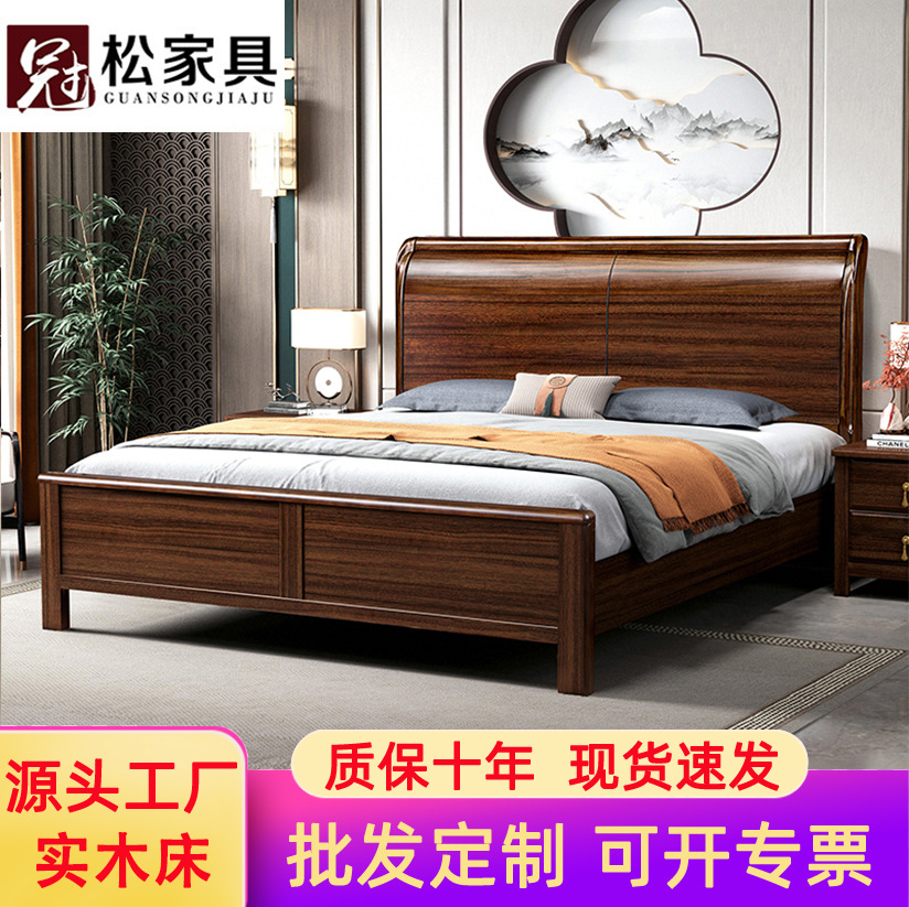 블랙 호두 원목 침대 1.8m 더블 침대 라이트 럭셔리 홈 모던 심플 1.5m 대형 침대 하이 박스 수납 웨딩 침대