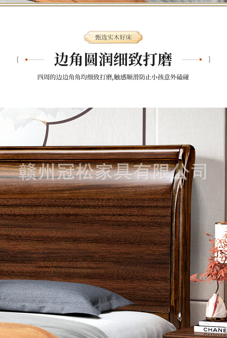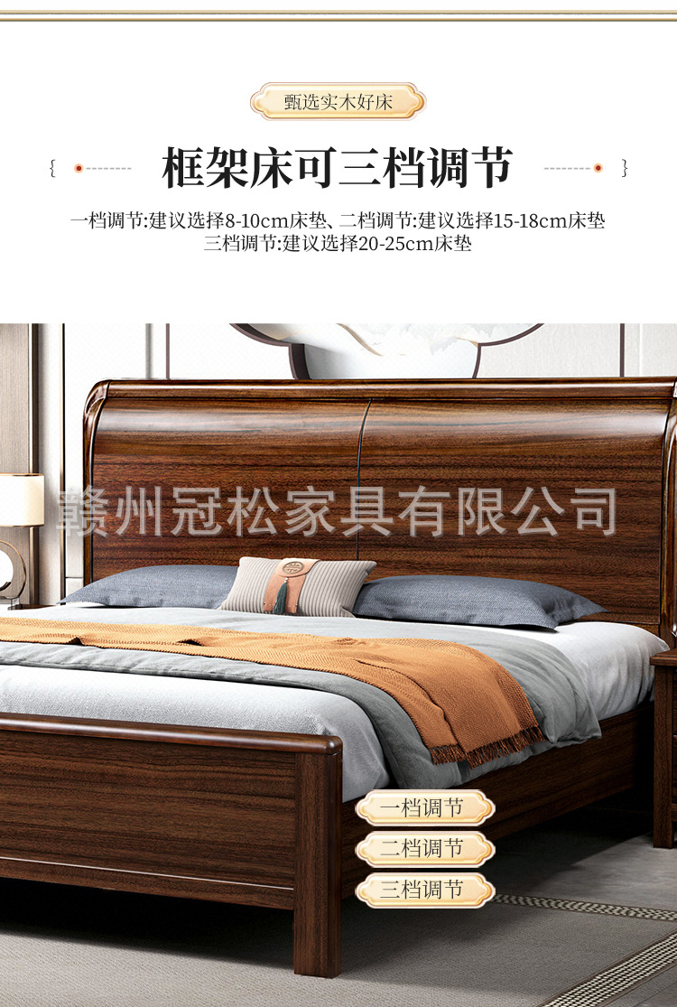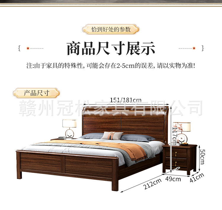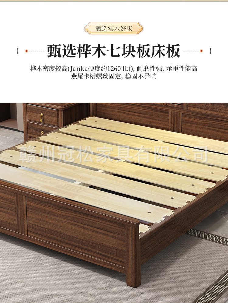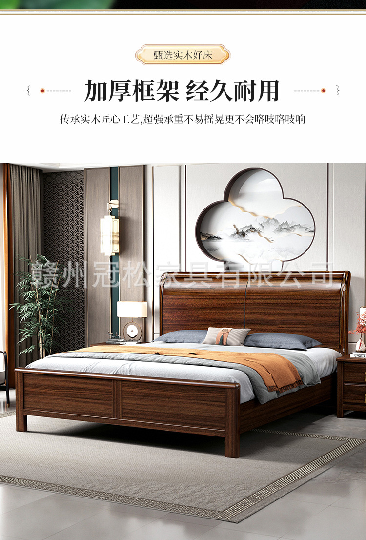 블랙 호두 원목 침대 1.8m 더블 침대 라이트 럭셔리 홈 모던 심플 1.5m 대형 침대 하이 박스 수납 웨딩 침대