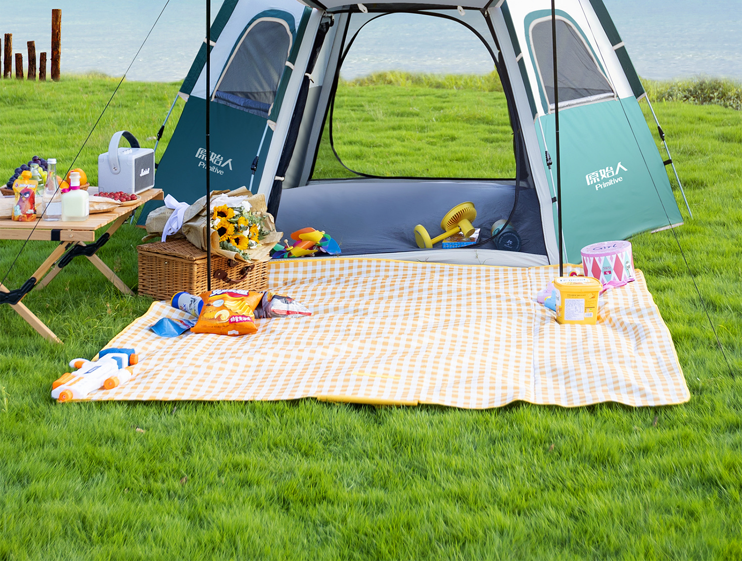 • [No.[두꺼운 자외선 차단제]] 침실 1개, 거실 1개, 짙은 녹색 + 방습매트 + 피크닉매트