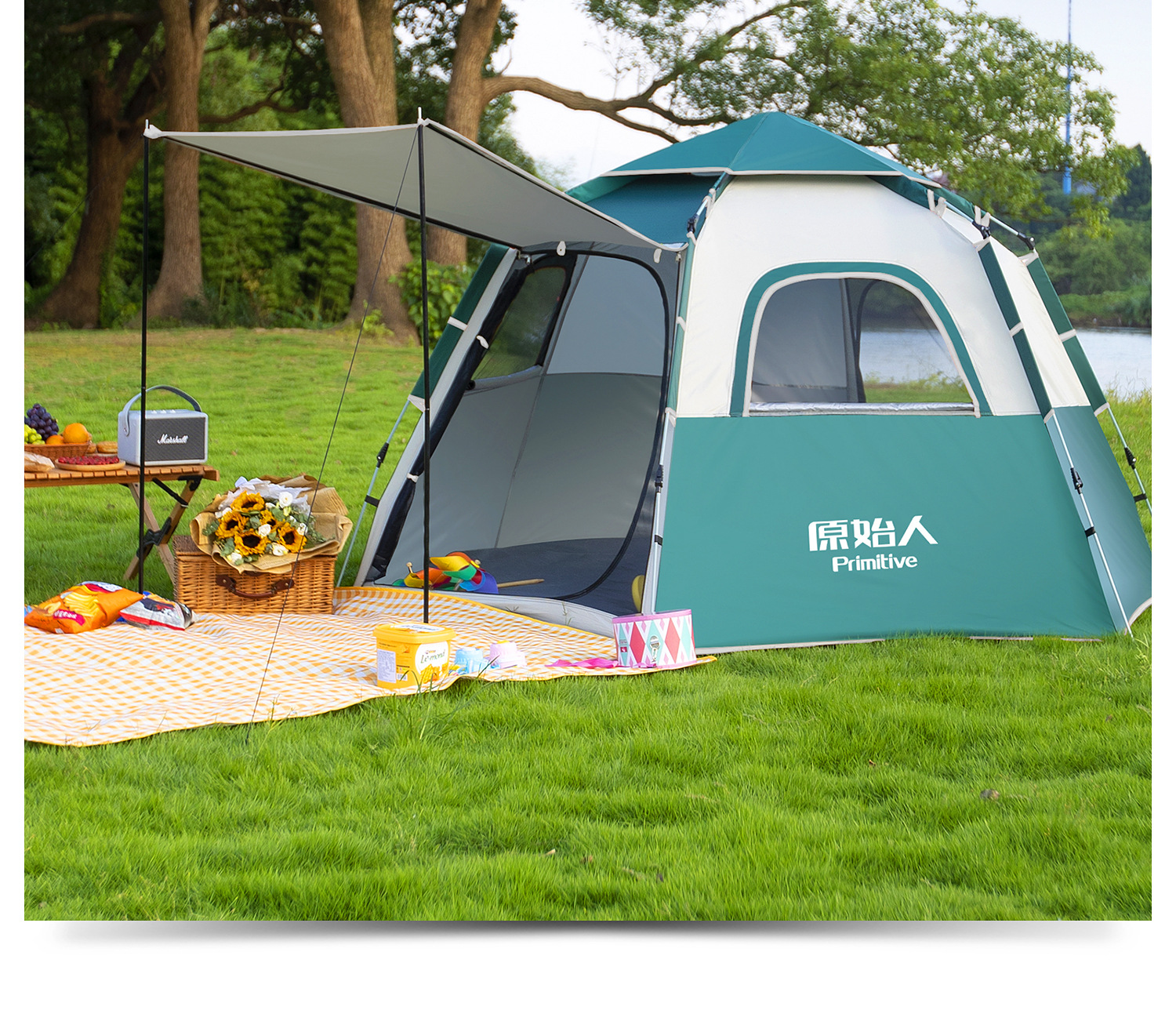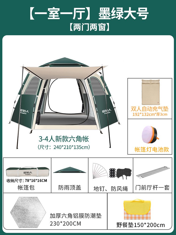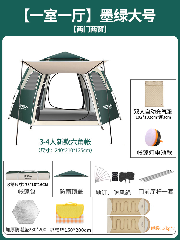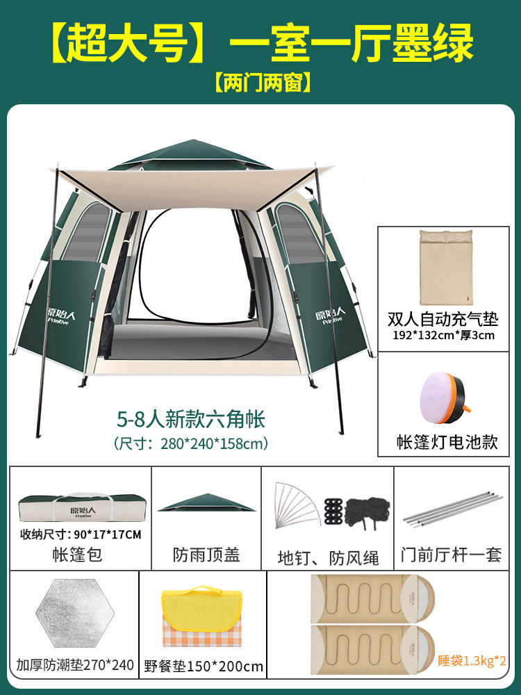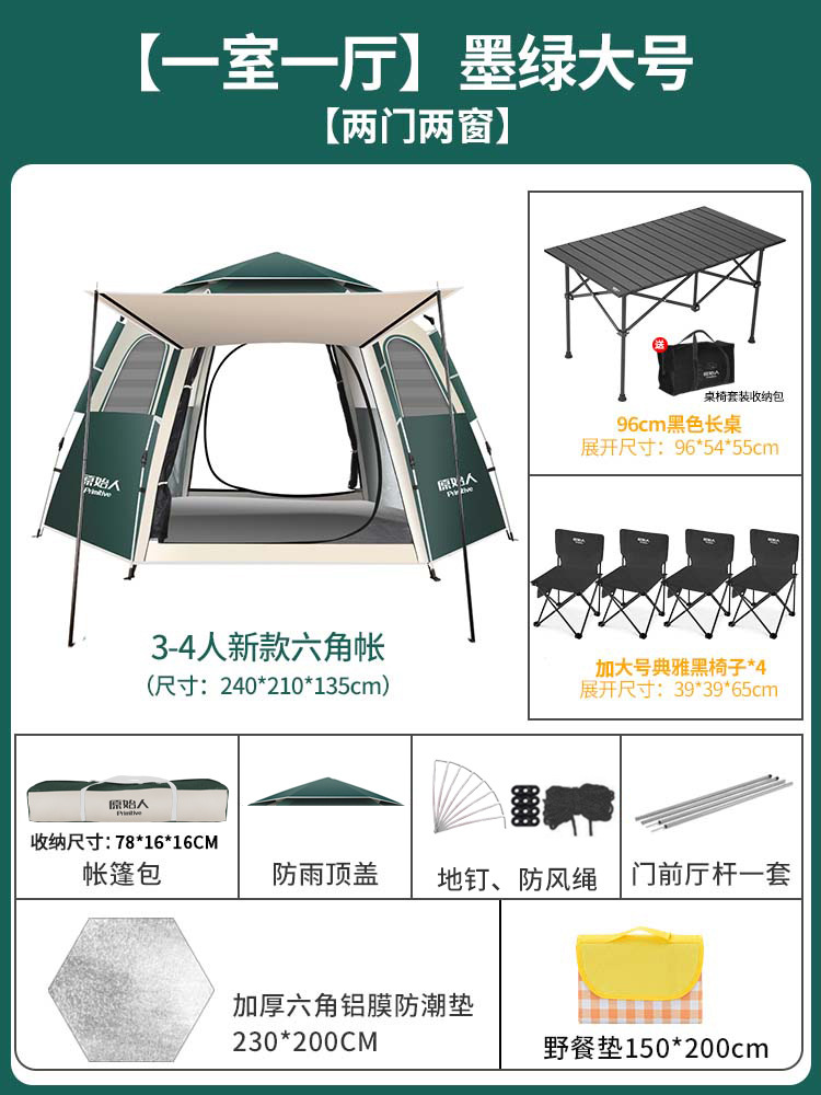 텐트 야외 접이식 휴대용 캠핑 밤새도록 비로부터 보호 두꺼운 캠핑 장비 전체 세트 자동 야외스토어 가기