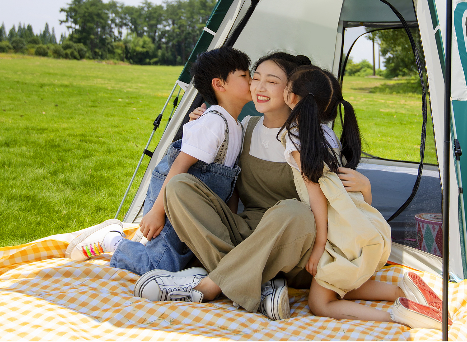 • [침실 1개, 거실 1개] [두꺼운 자외선 차단] 다크그린 대형 + 방습매트 + 피크닉매트 + 행잉매트