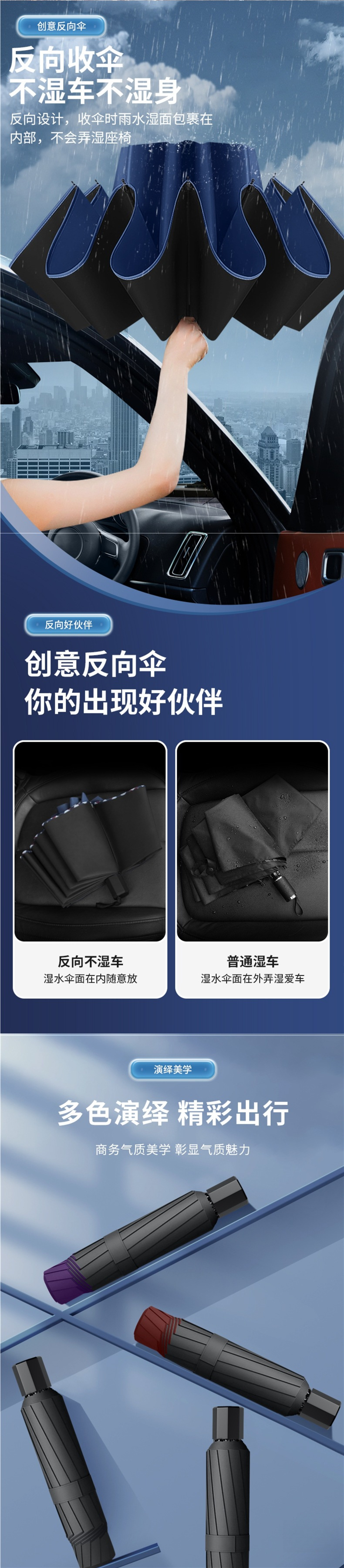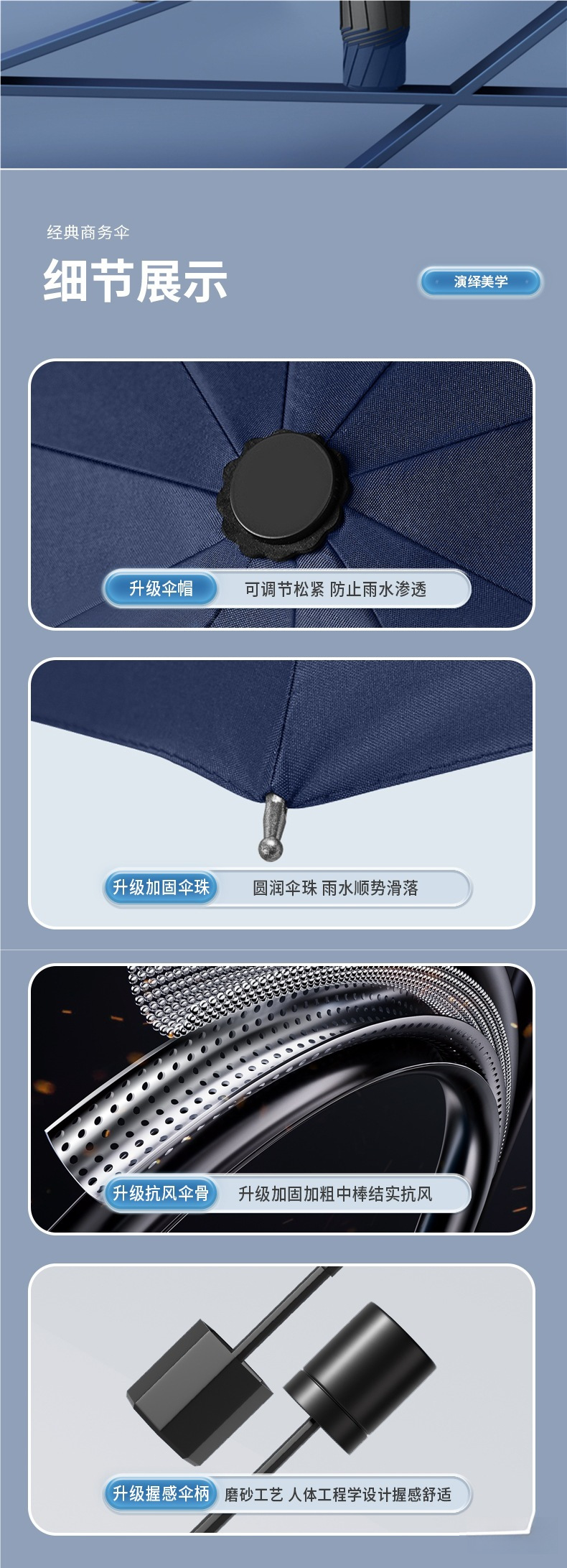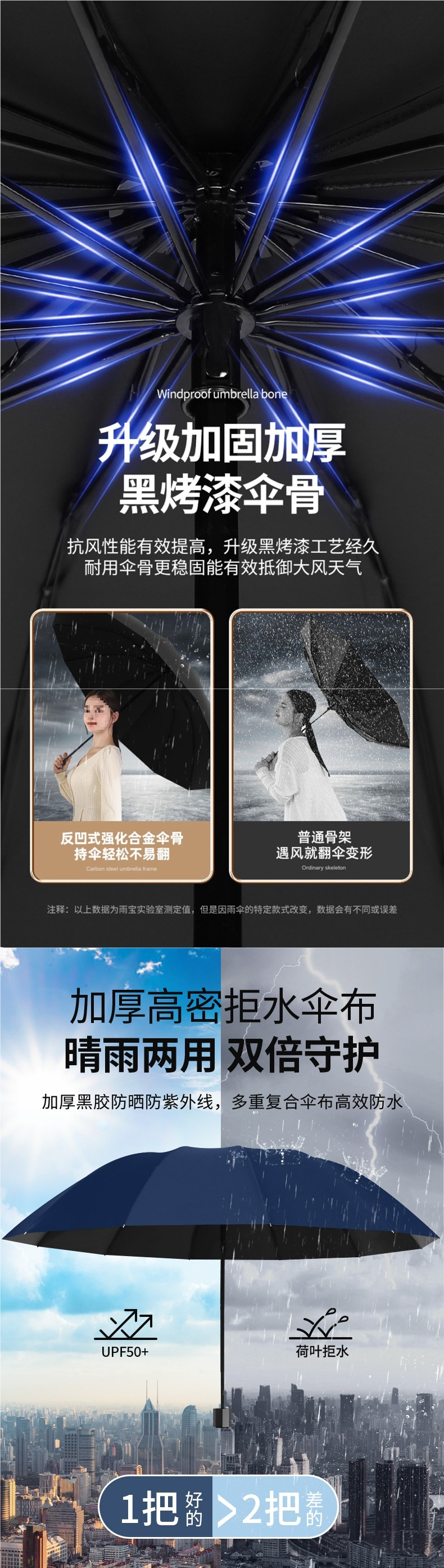 • 네이비 블루️ 강화 10 리브 [3인용 대형 우산 + 비가 오나 눈이 오나] 직경 125CM 우산 아래