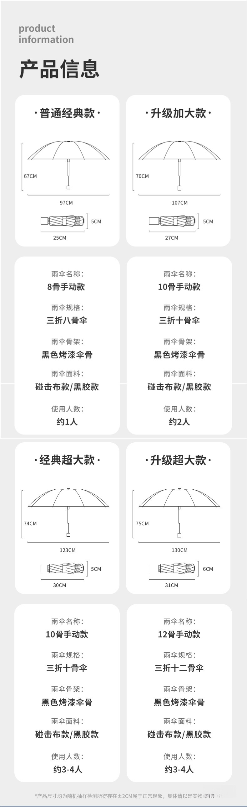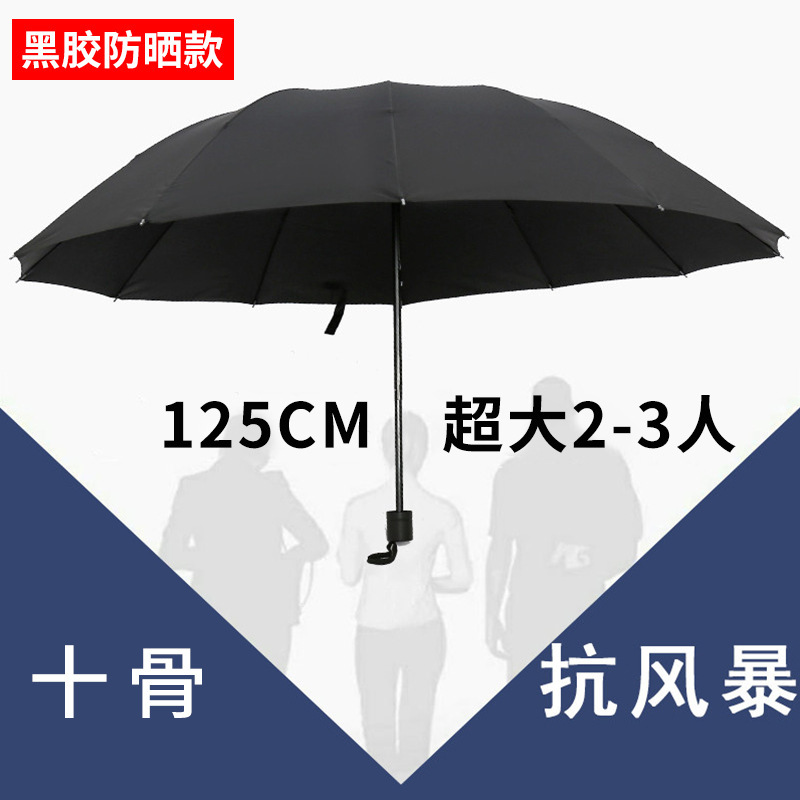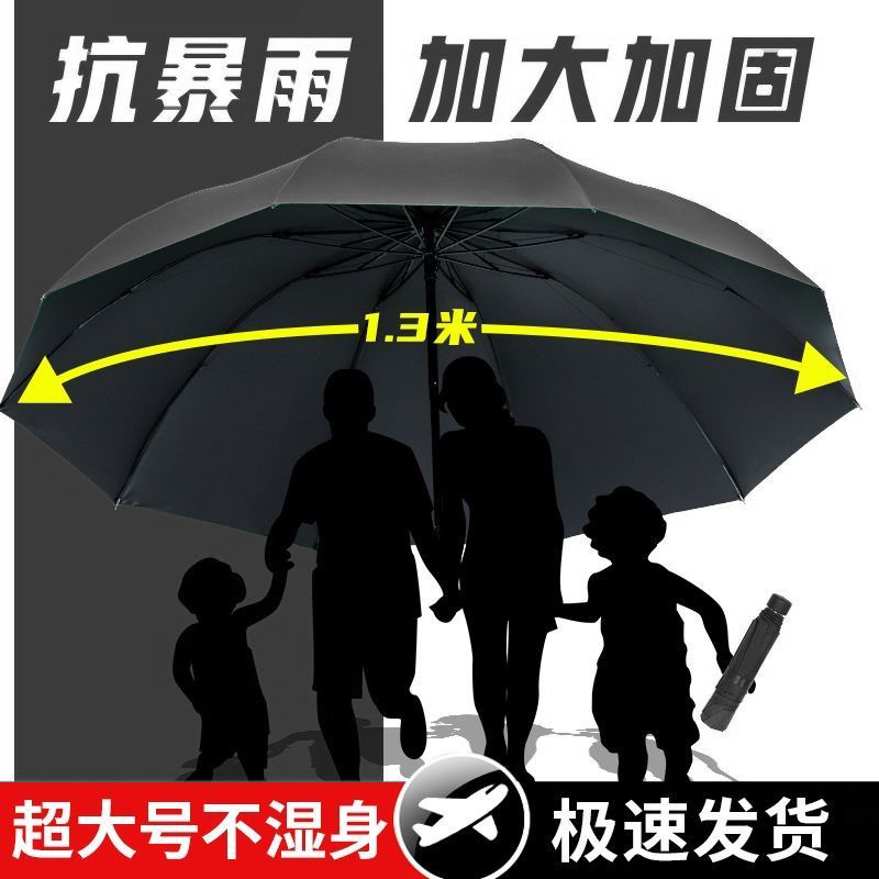 • 검정색️ 강화 10개 갈비뼈 [3인용 대형 우산 + 비가 오나 눈이 오나] 직경 125CM 우산 아래