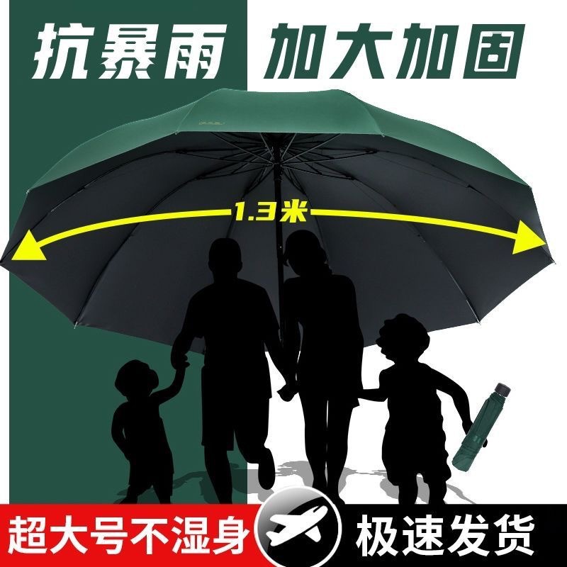 • 짙은 녹색️ 강화 12개 갈비뼈 [3-4인용 초대형 우산 + 비가 오나 눈이 오나] 우산 아래 직경 130CM