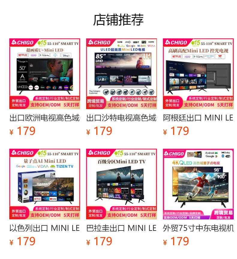 이라크 TV 고색 영역 65inch MiniLED 스마트 LCD 초박형 75 85inch 벽화 TV 수출스토어 가기