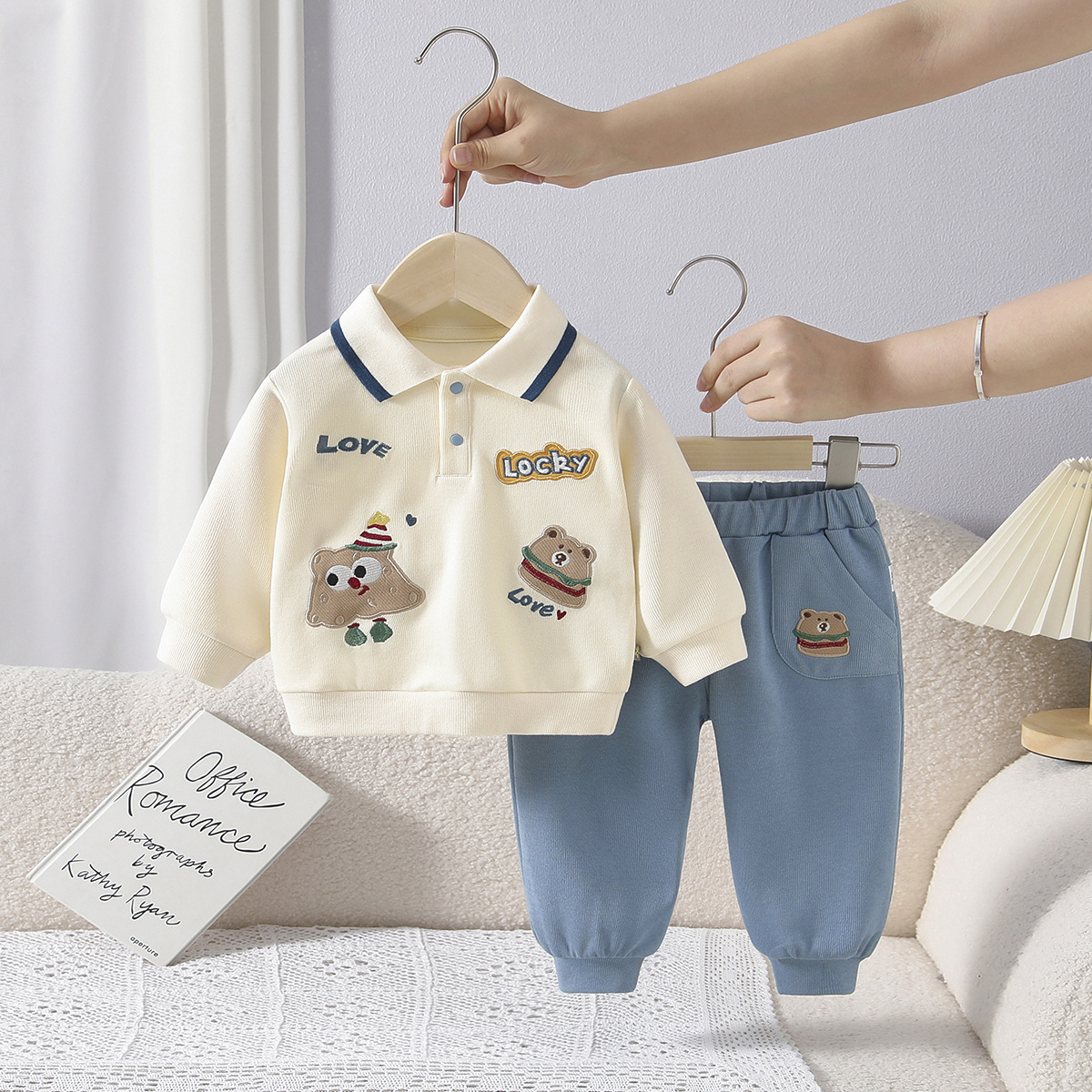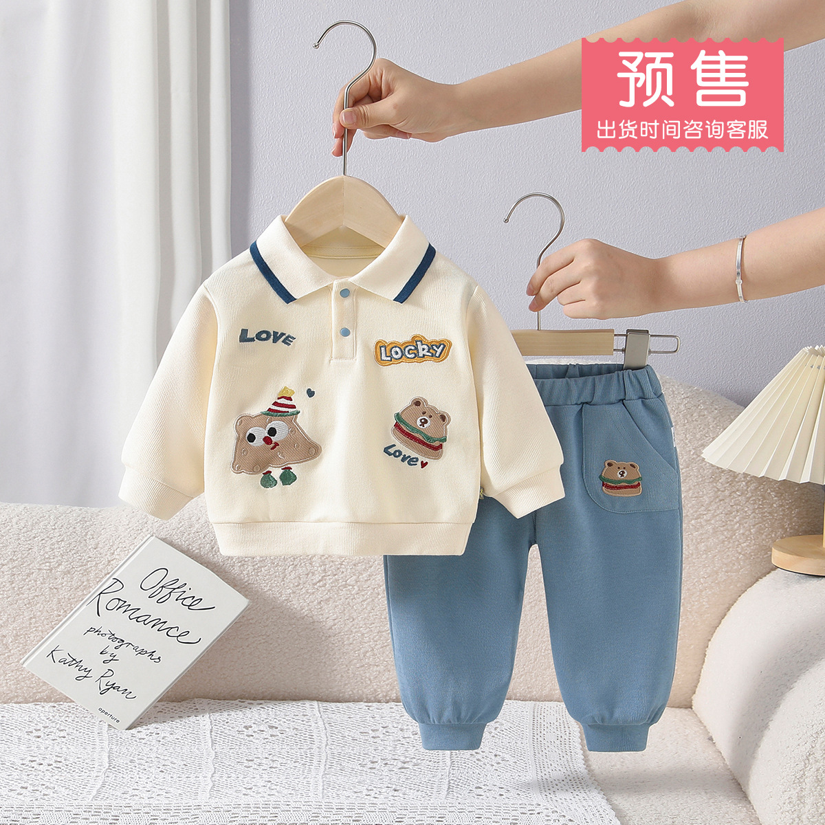 소년 정장 가을 새로운 폴로 셔츠 어린이 한국 만화 긴팔 운동복 투피스 세트 아기 겉옷스토어 가기
