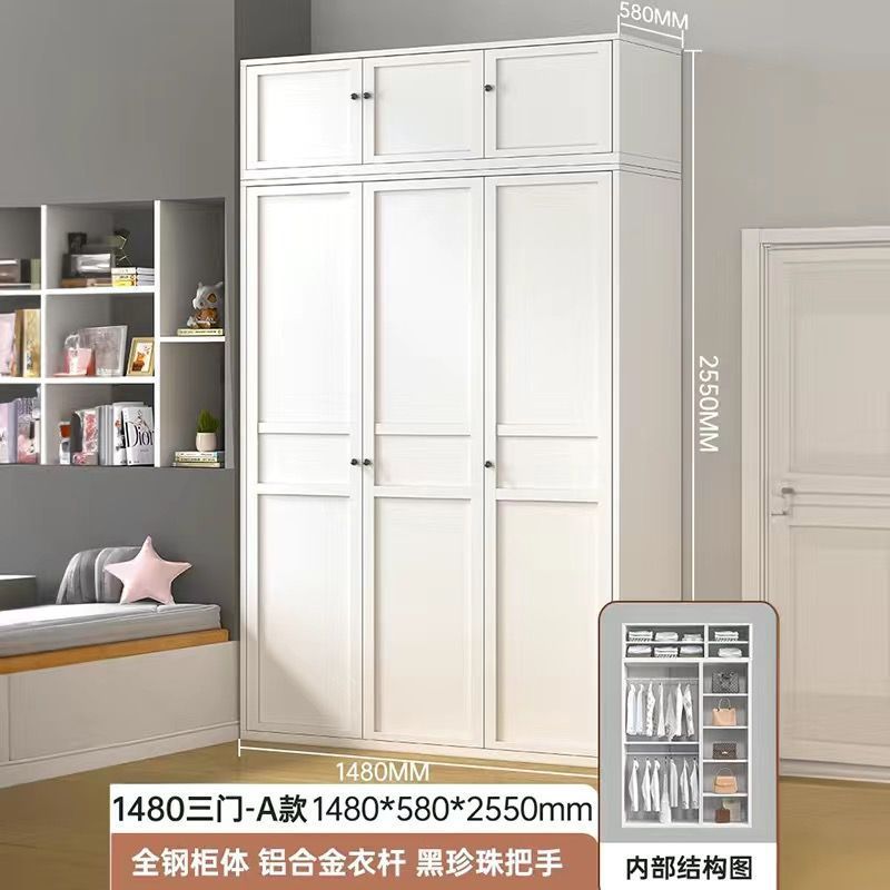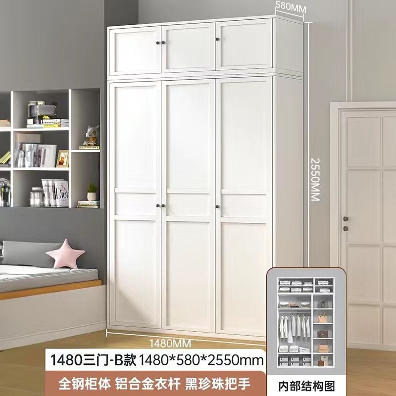 두꺼운 철 옷장 2025 새로운 스타일 홈 침실 현대 간단한 유럽 스타일의 금속 스토리지 스틸 옷장스토어 가기