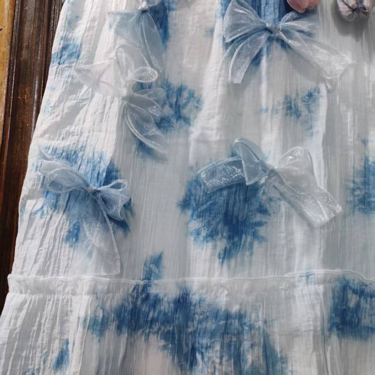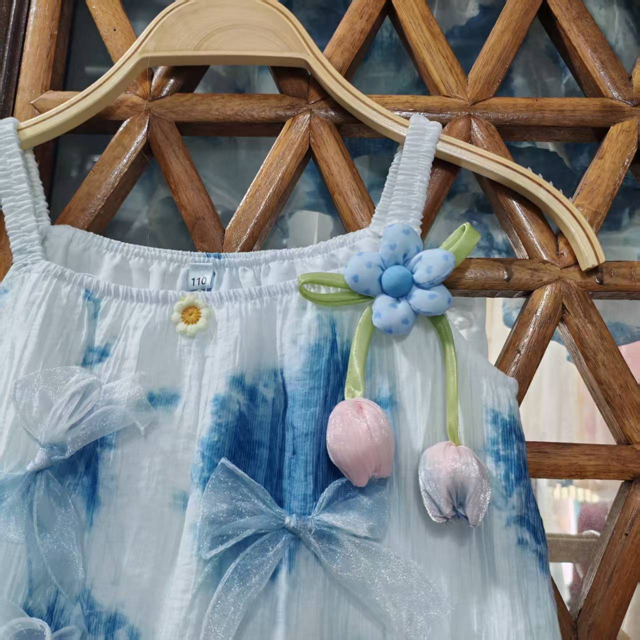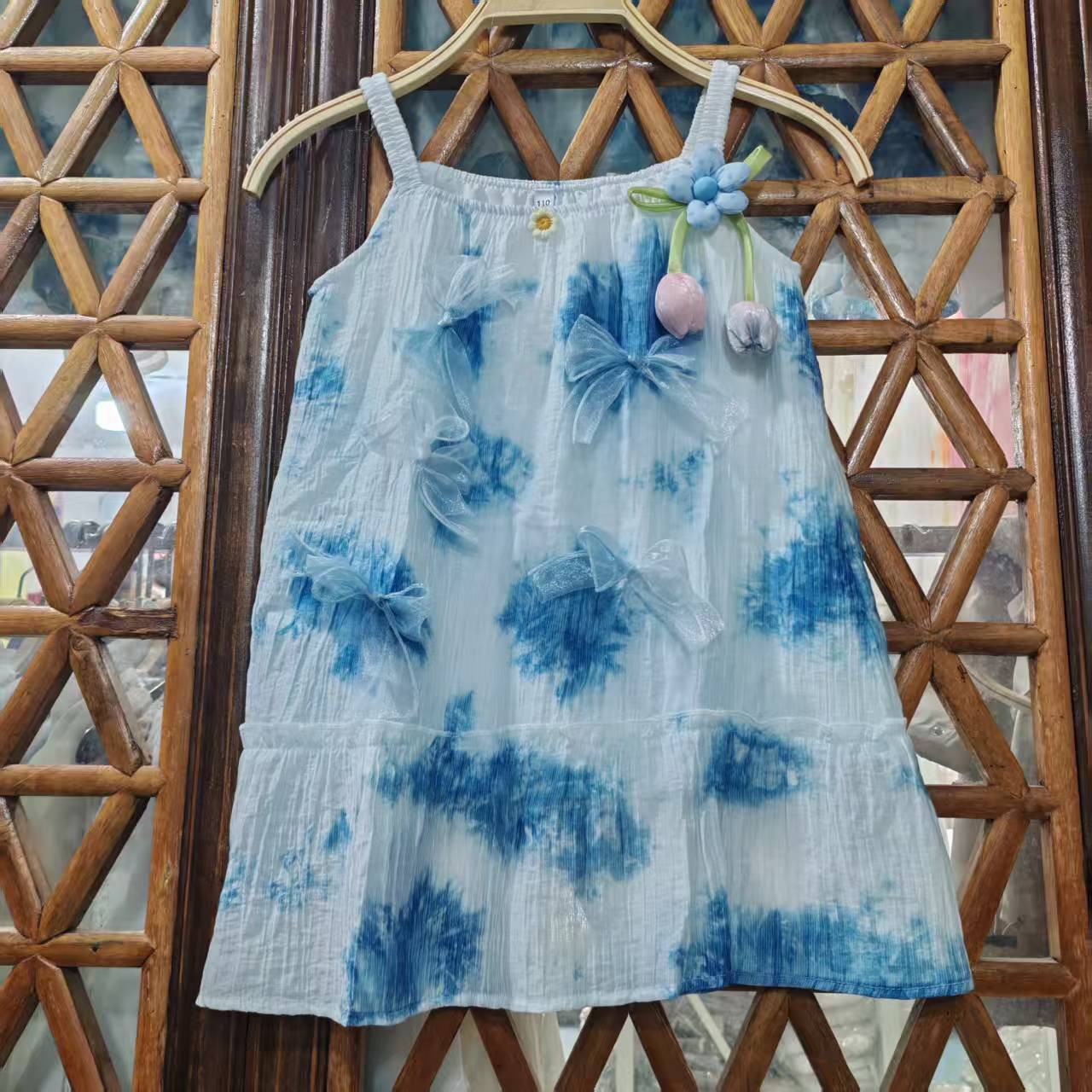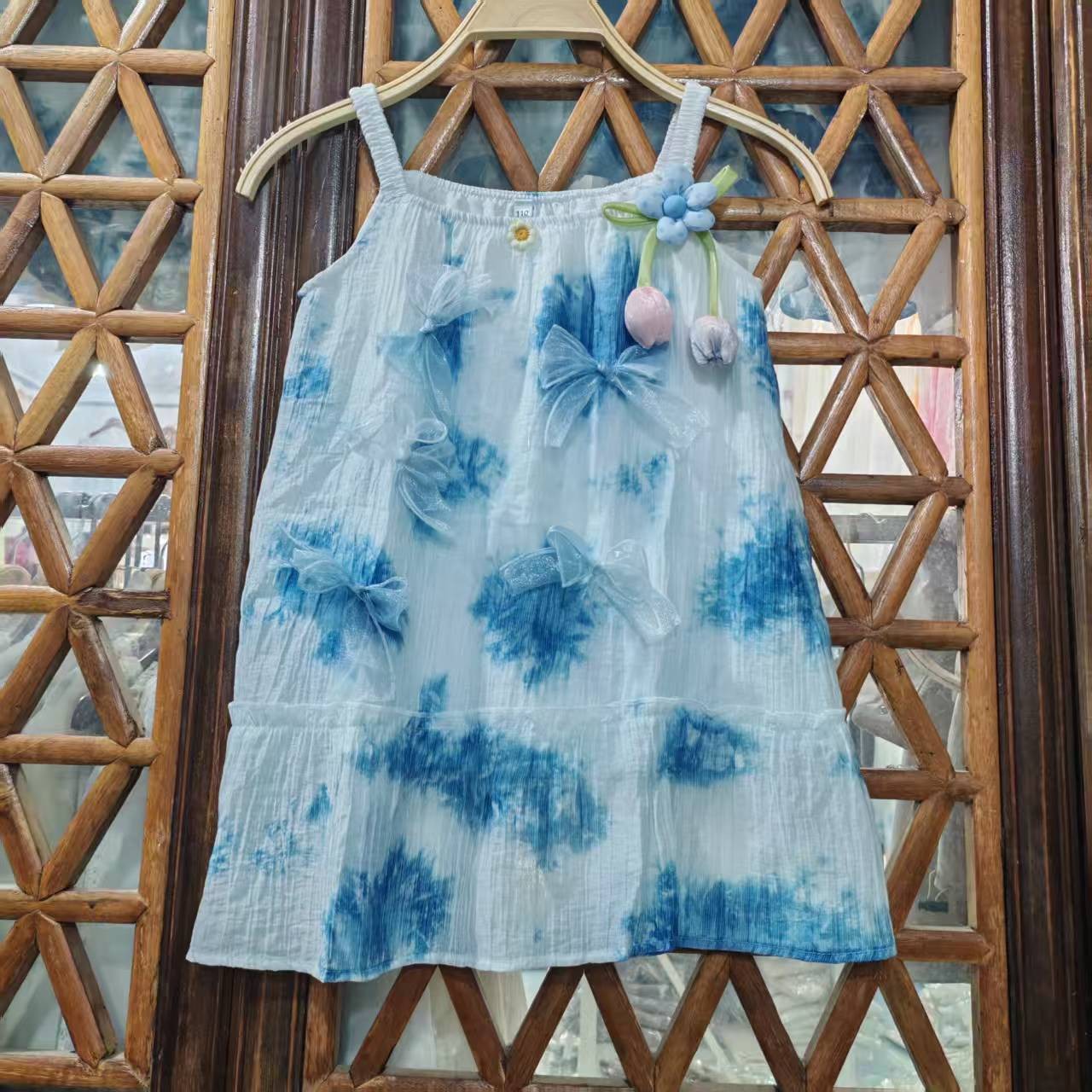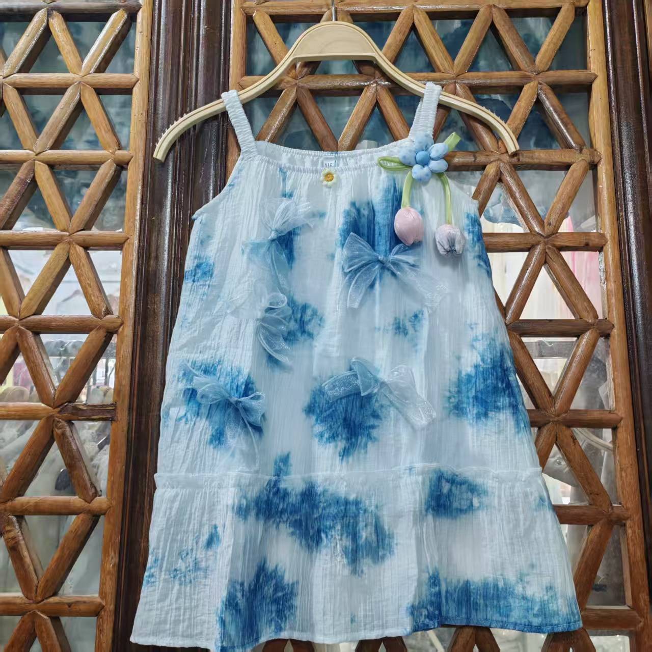 도매 타이 염색 드레스 새로운 스타일 소녀의 푸른 염색 드레스 민족 스타일 수제 타이 염색 탄성 슬링 어린이 드레스스토어 가기