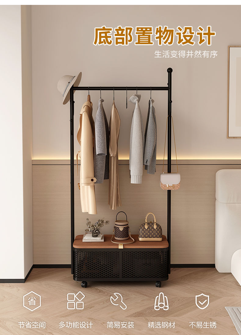 가정용 옷걸이, 심플하고 고급스러운 거실 선반, 옷걸이, 수납 옷걸이, 이동식 간이 침실 바닥 스탠딩