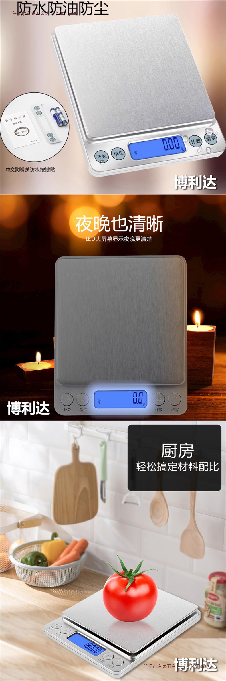 3kg 스테인레스 스틸 고정밀 전자 저울 소형 그램 주방 저울 베이킹 저울 식품 저울 방수 저울 소형 저울