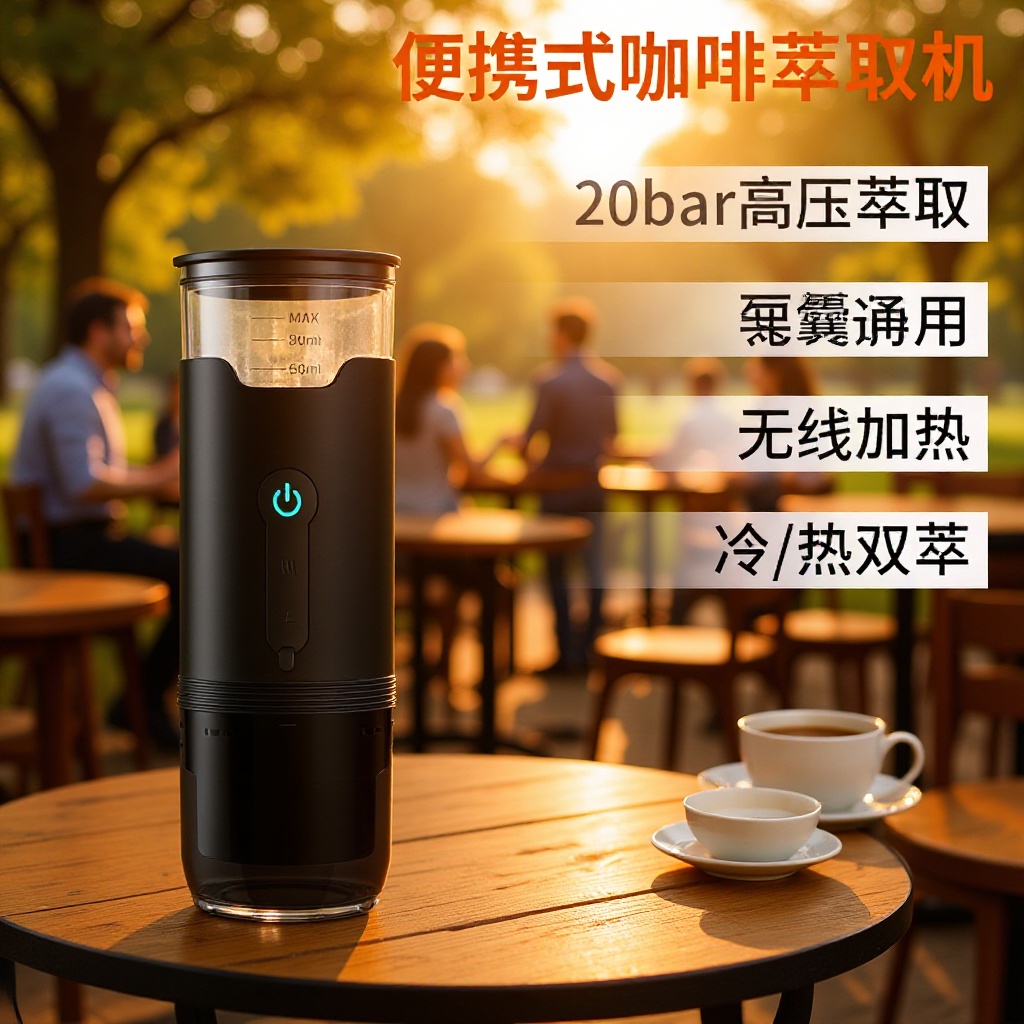 크로스보더 가열식 소형 커피머신, 이탈리안 에스프레소 휴대용 커피머신, 커피가루 및 캡슐 3-in-1스토어 가기