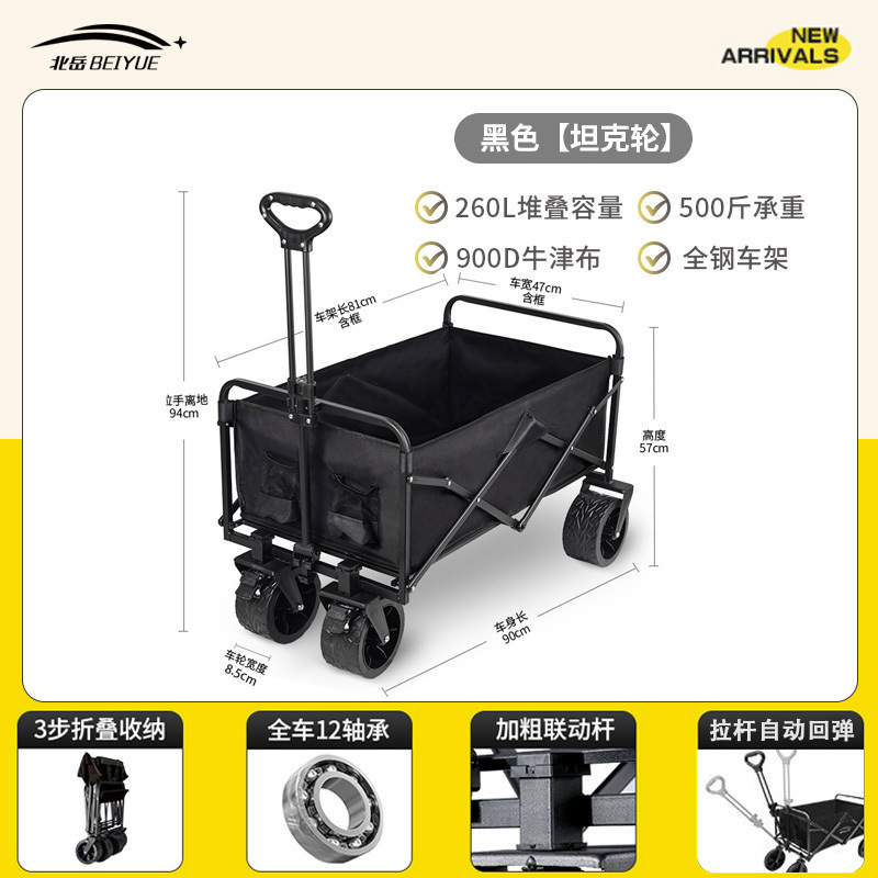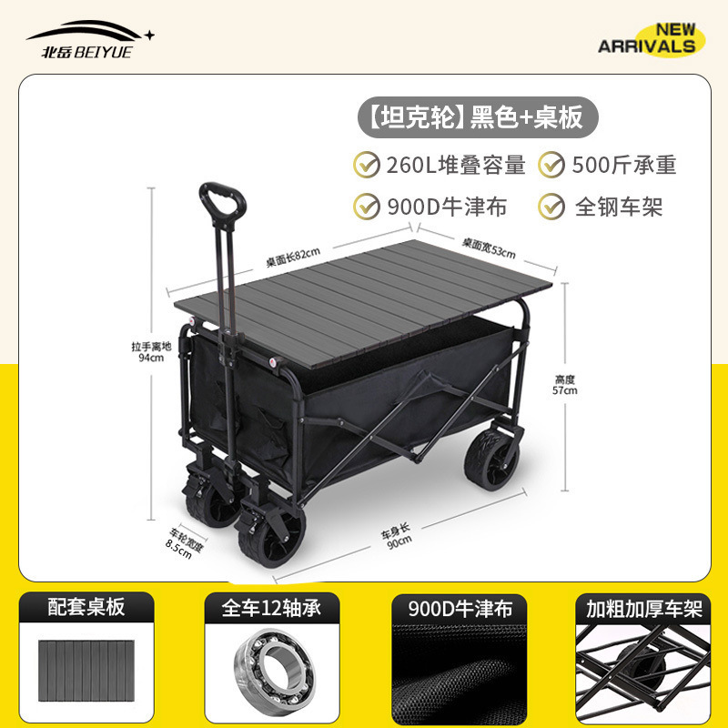 • 블랙 [이중 두꺼운 옥스포드 천] - 상단 구성 / 10inch 탱크 휠 / 더블 브레이크 + 스톨 확장 테이블