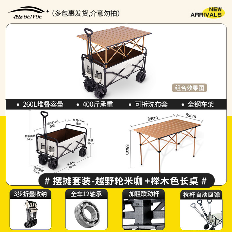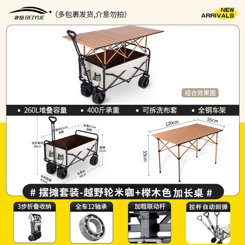 • 카키 [이중 두꺼운 옥스포드 천]-대형/ 8inch 고무 바퀴 + 스톨 확장 테이블