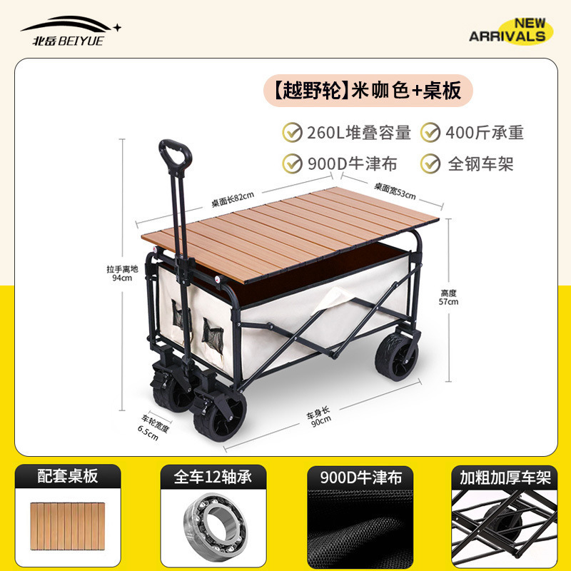• 카키 [이중 두꺼운 옥스포드 천] - 업그레이드/ 8inch 베어링 오프로드 휠/더블 브레이크 + 접이식 테이블