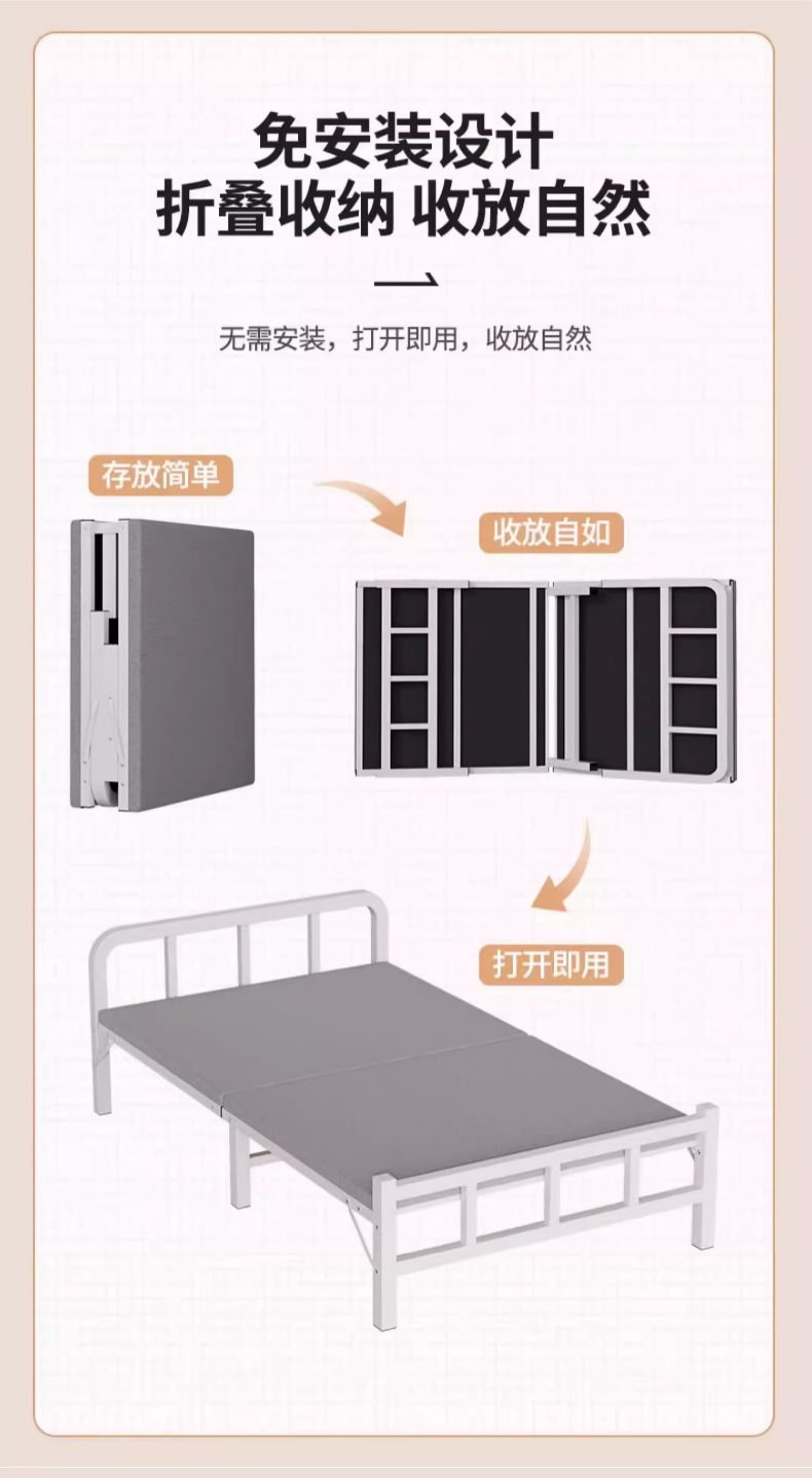 싱글 침대 가정용 접이식 침대 임대 작은 침대 침실 추가 침대 1.2m 성인용 간이 침대 1.5m 더블 침대스토어 가기