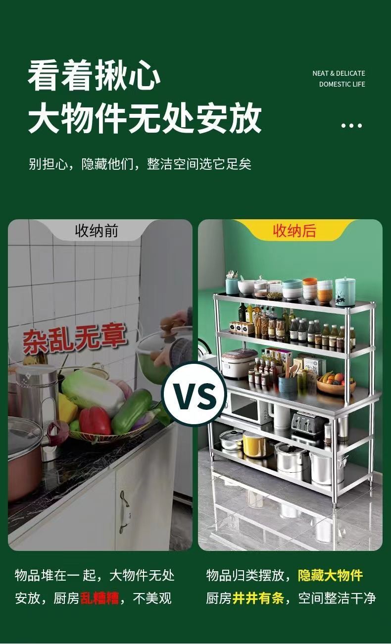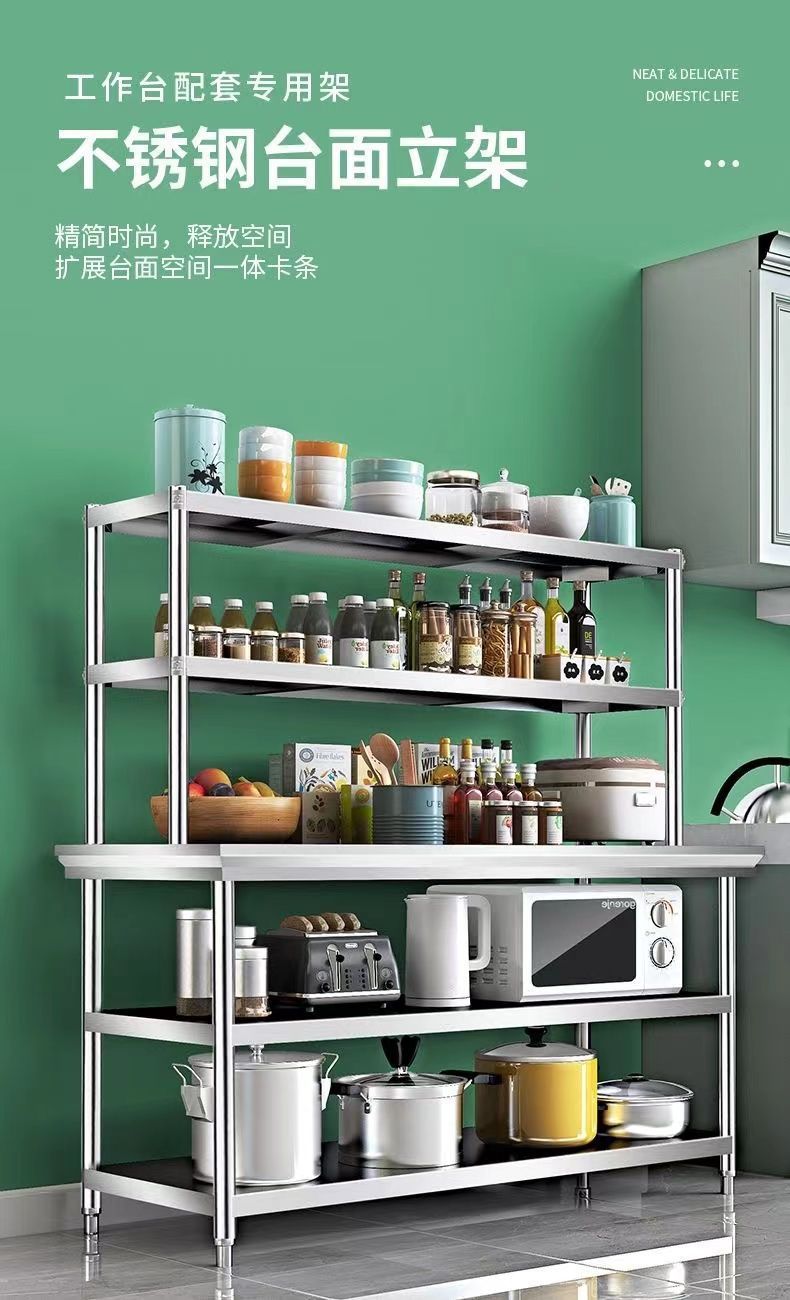 스테인레스 스틸 스탠드 2단 또는 3단 밀크티 샵 테이블 상단 스탠드 주방 수납 선반 작업대 선반스토어 가기