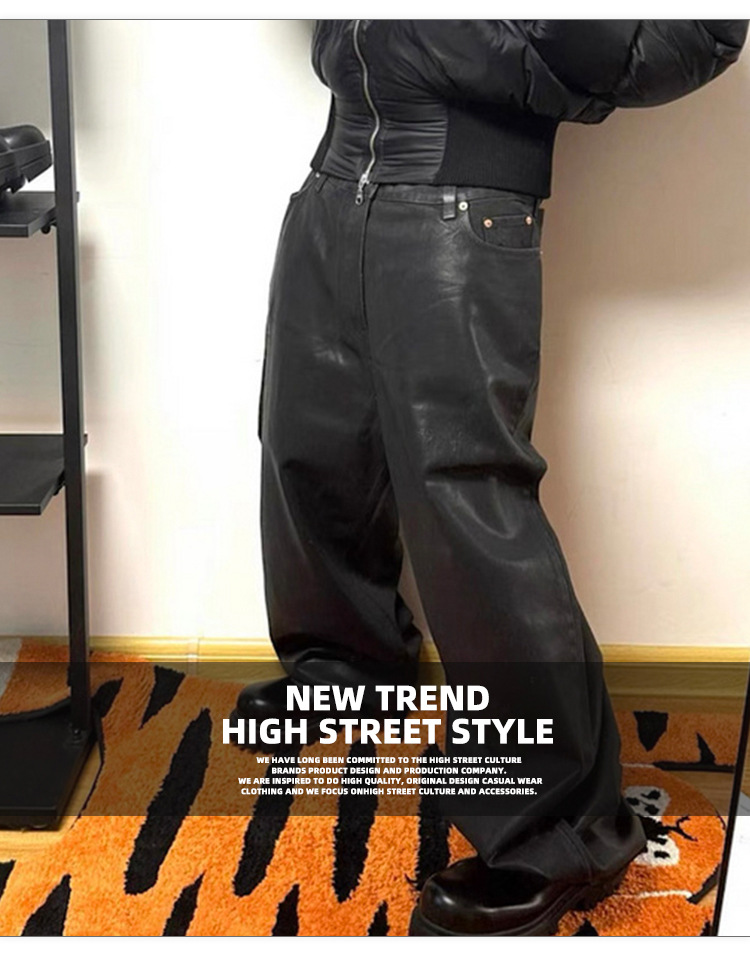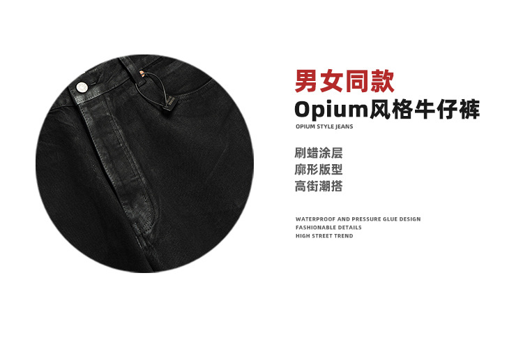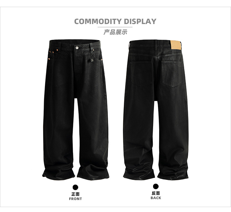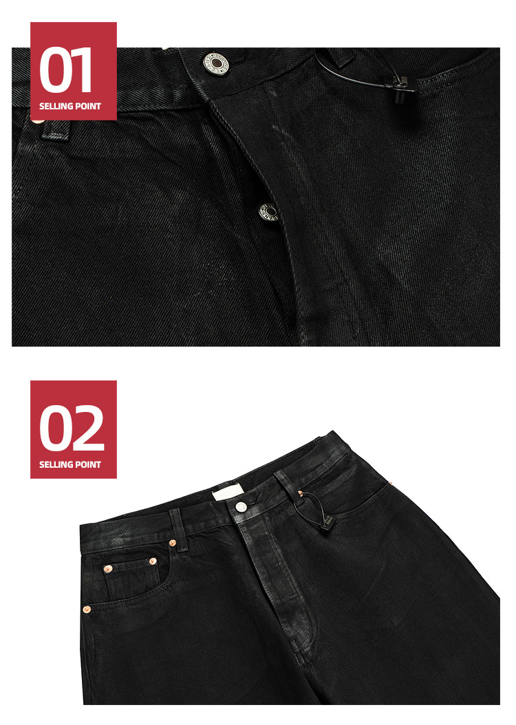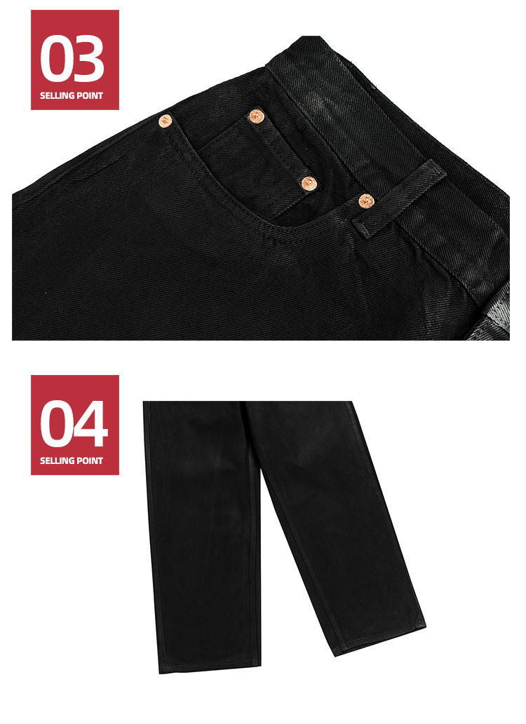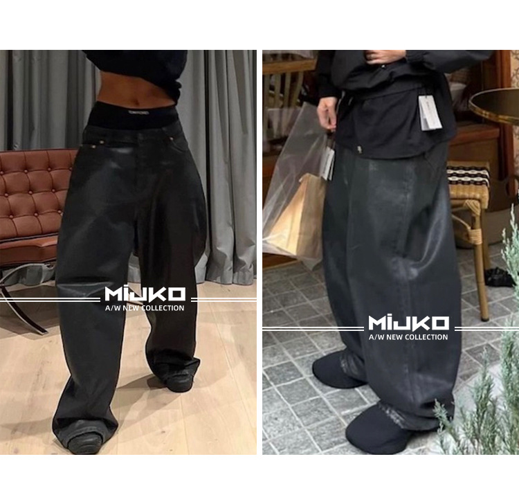 MIJKO 남성 및 여성 블랙 왁스 코팅 실루엣 청바지 남성 및 여성 같은 스타일 스트레이트 아메리칸 유니섹스 바지 트렌디스토어 가기