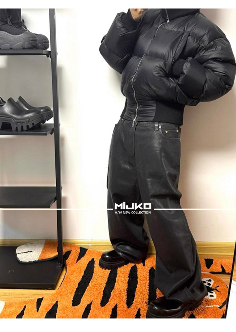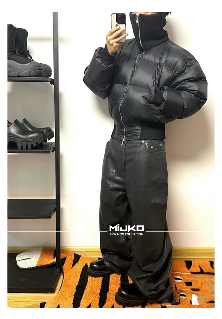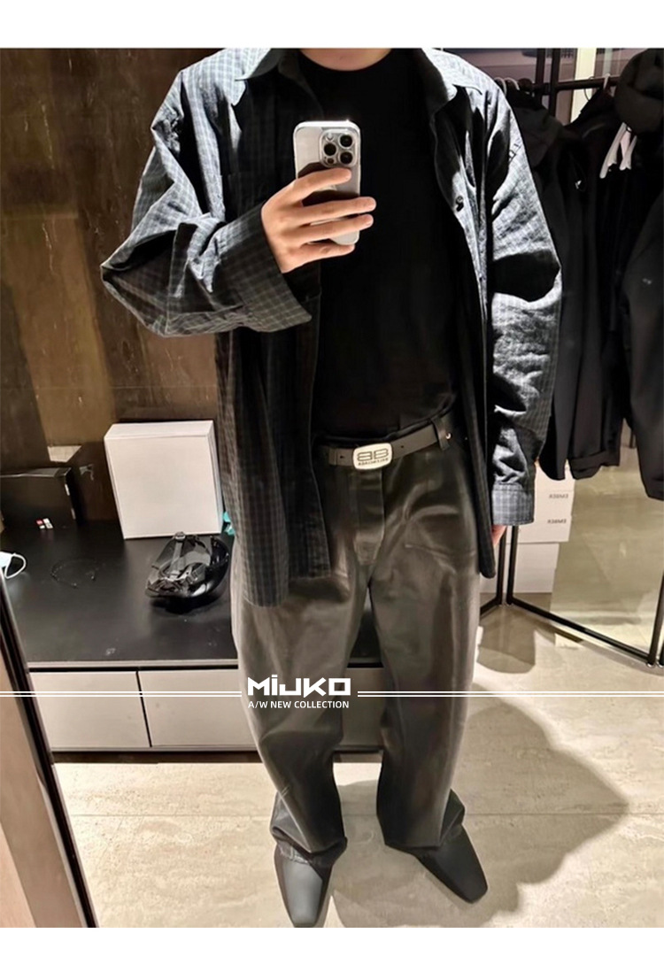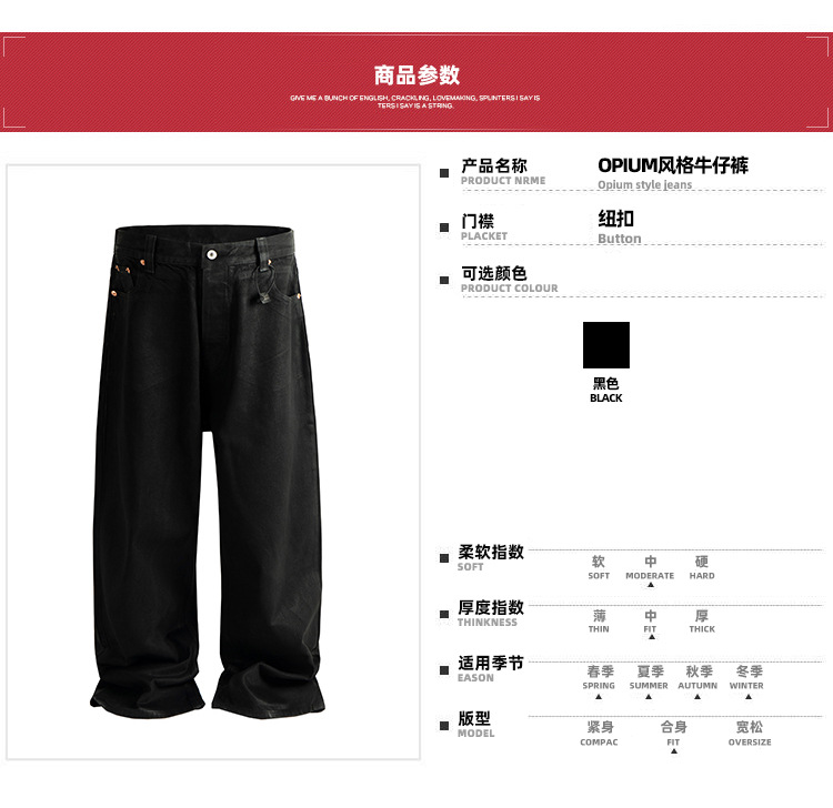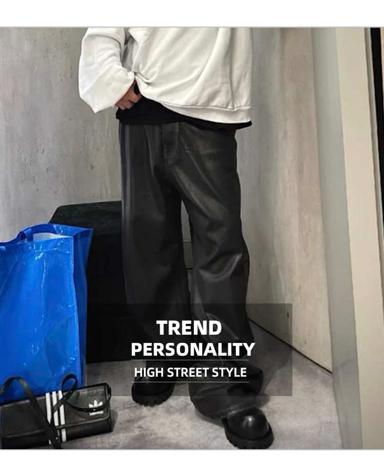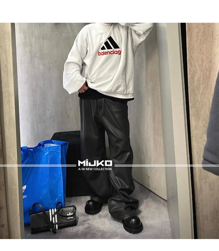 MIJKO 남성 및 여성 블랙 왁스 코팅 실루엣 청바지 남성 및 여성 같은 스타일 스트레이트 아메리칸 유니섹스 바지 트렌디스토어 가기