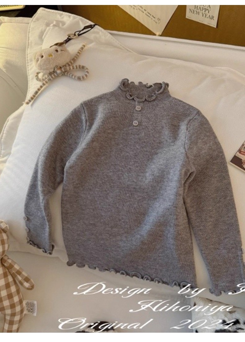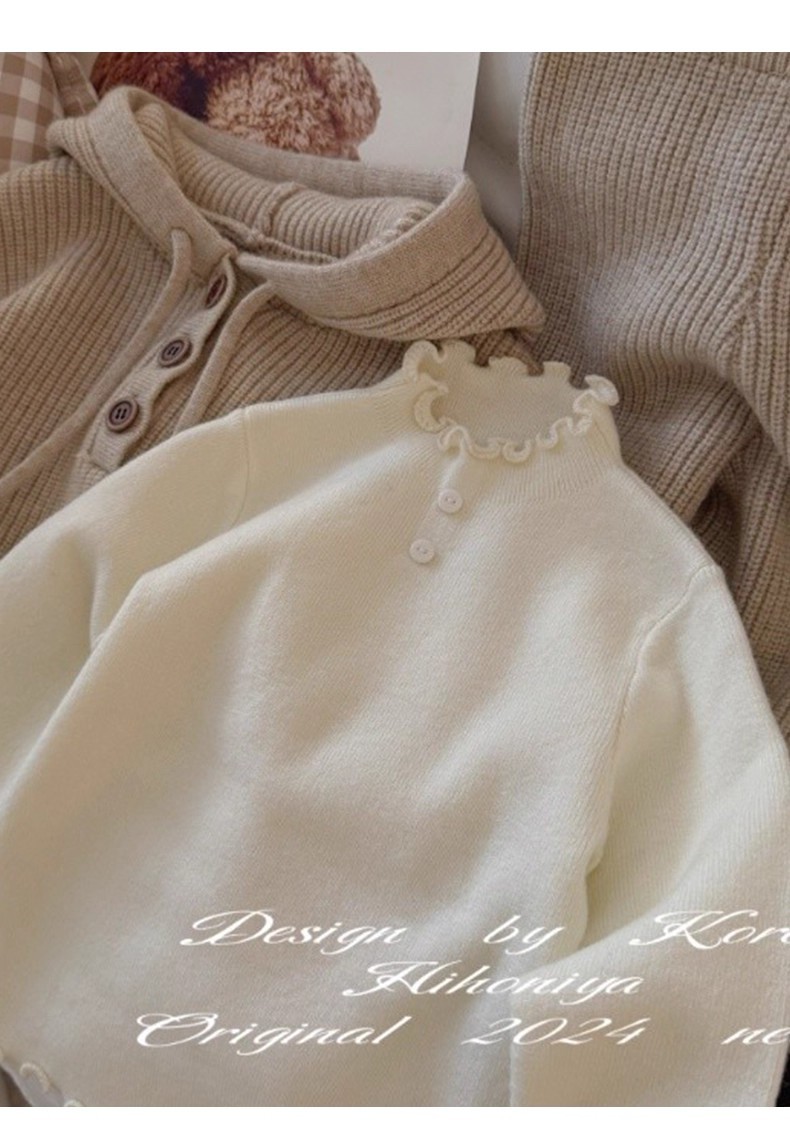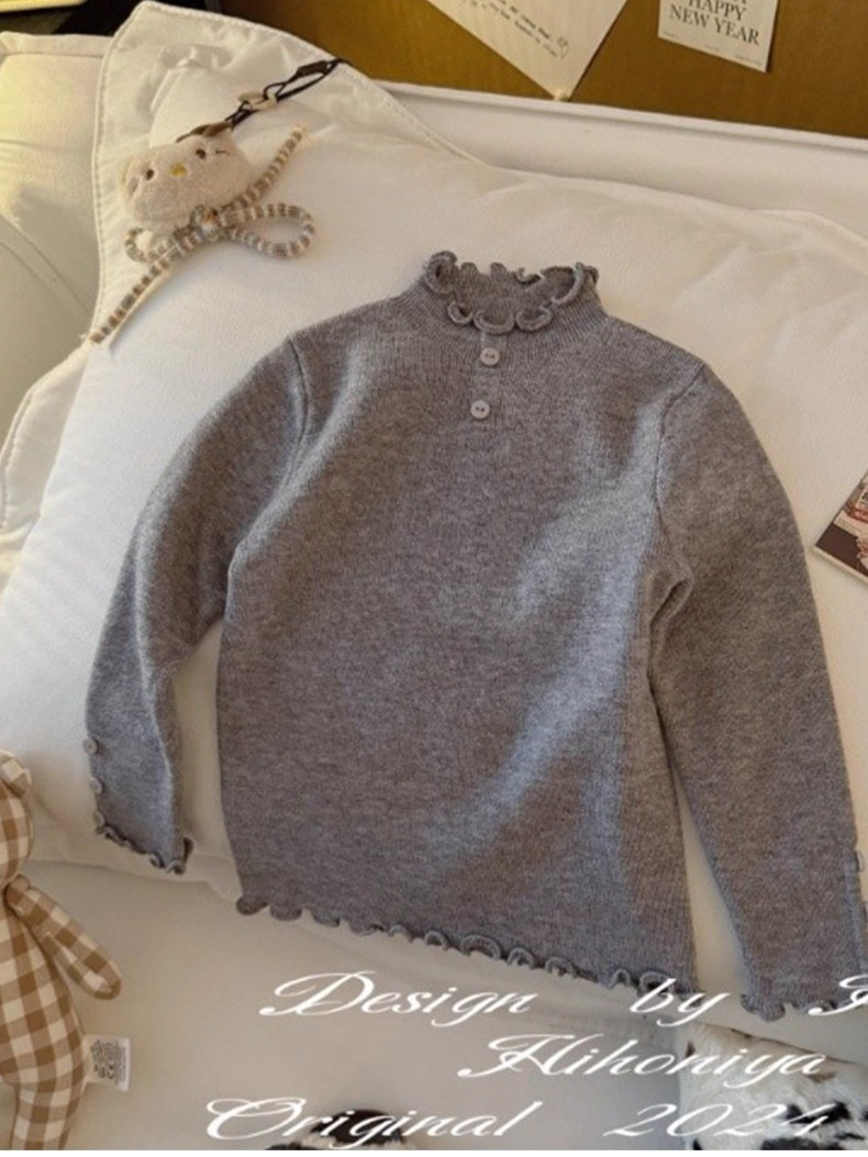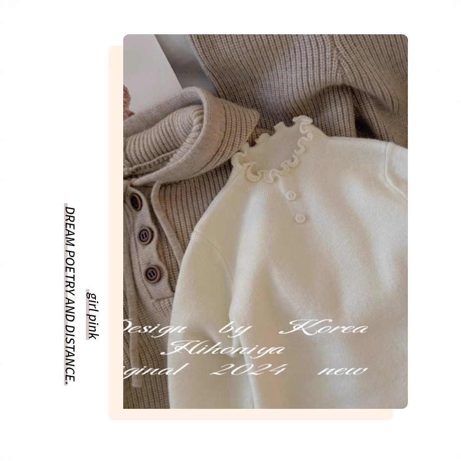 2025 한국 아동복 2025 가을 겨울 새로운 다용도 단색 소녀 한국식 스웨터 부모-자식 스타일