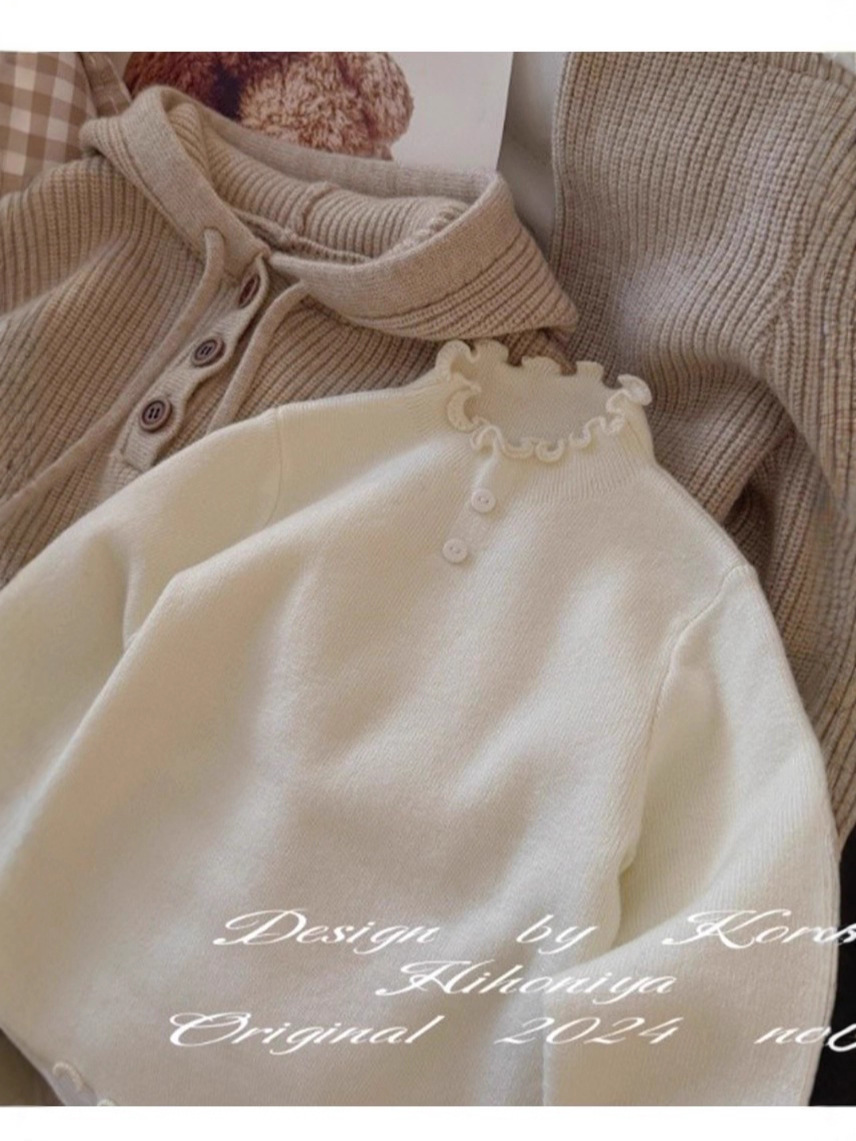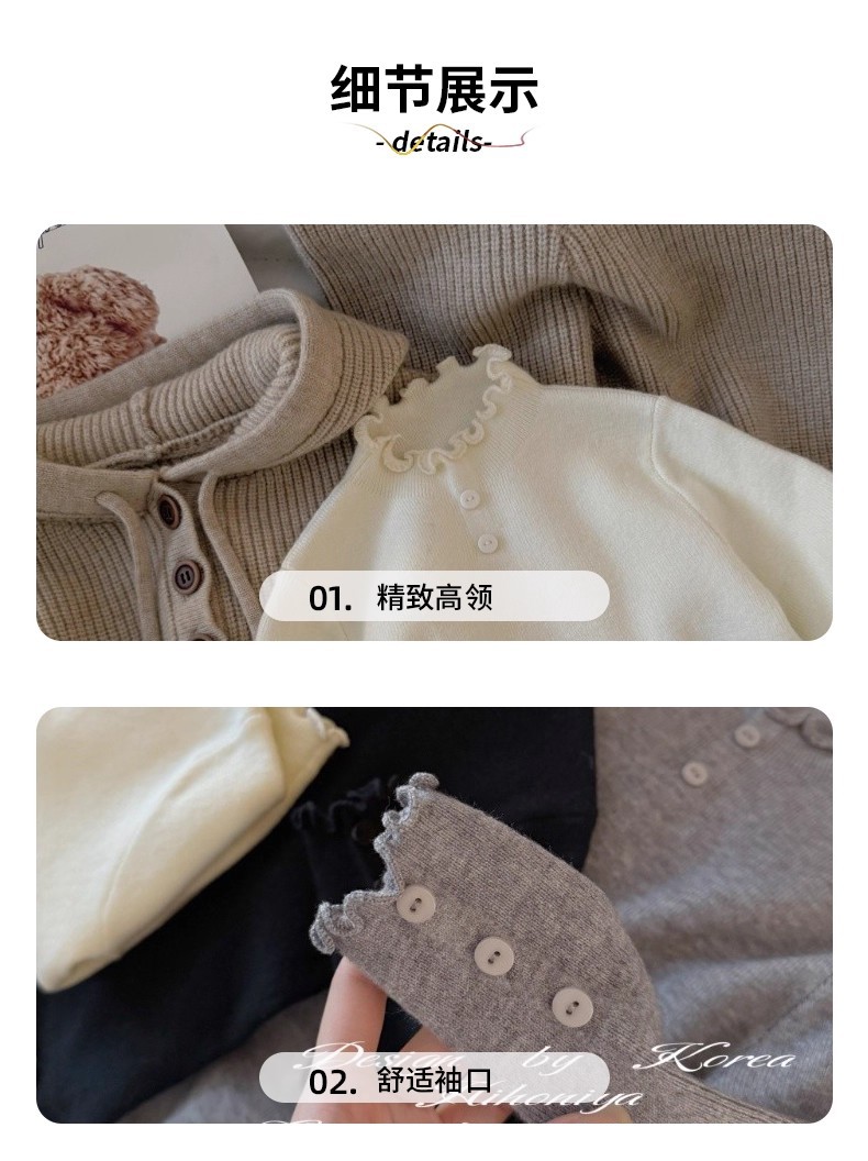 2025 한국 아동복 2025 가을 겨울 새로운 다용도 단색 소녀 한국식 스웨터 부모-자식 스타일스토어 가기