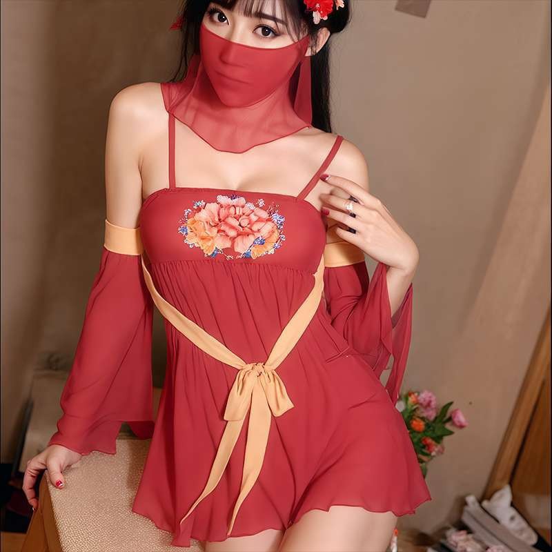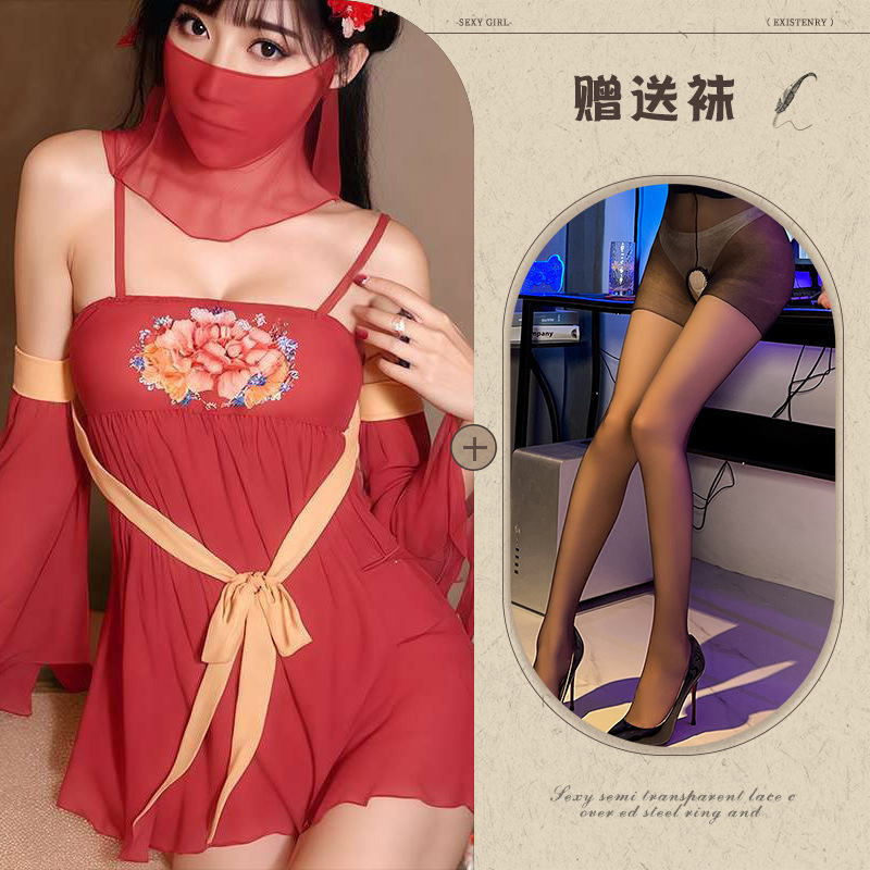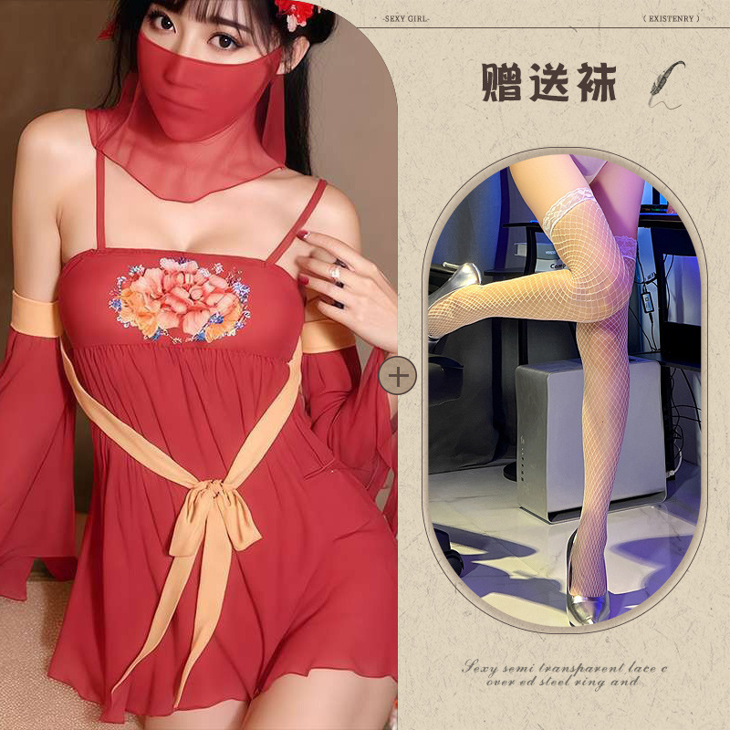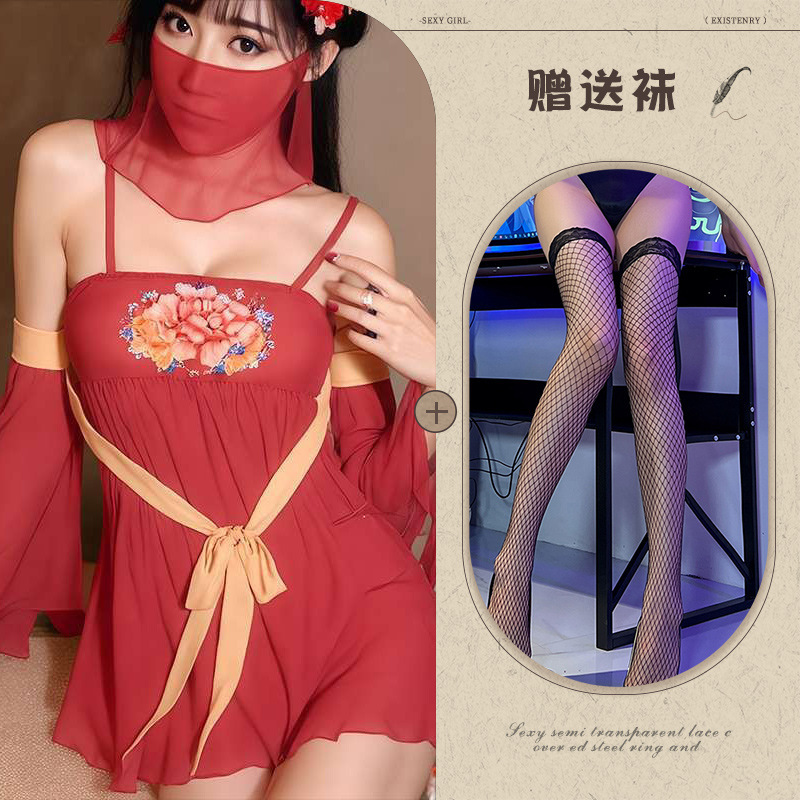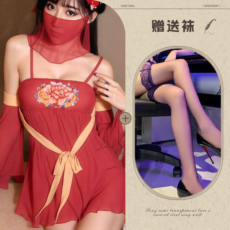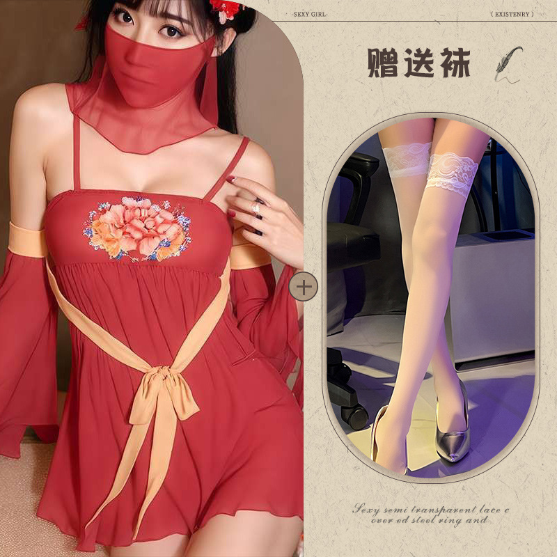 Aishangyou Palace Tang 스타일 치파오 거즈 드레스 성인 배꼽 스트랩 섹시한 유혹 잠옷 속옷 고대 스타일스토어 가기