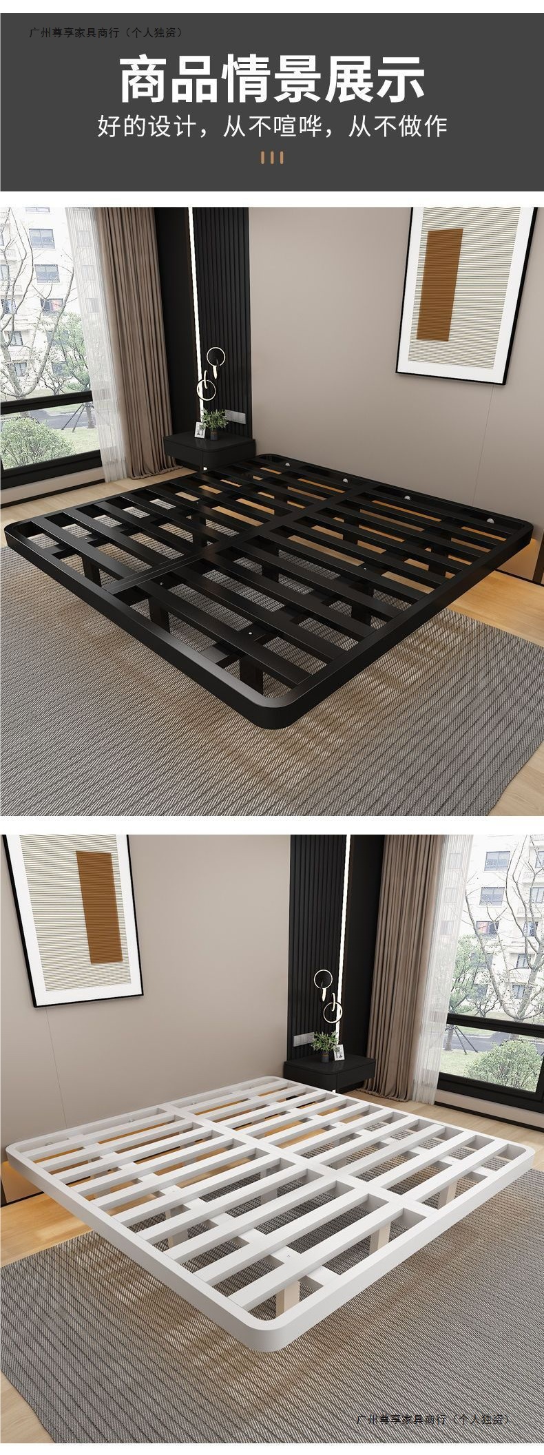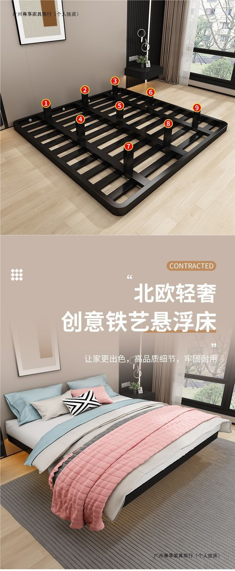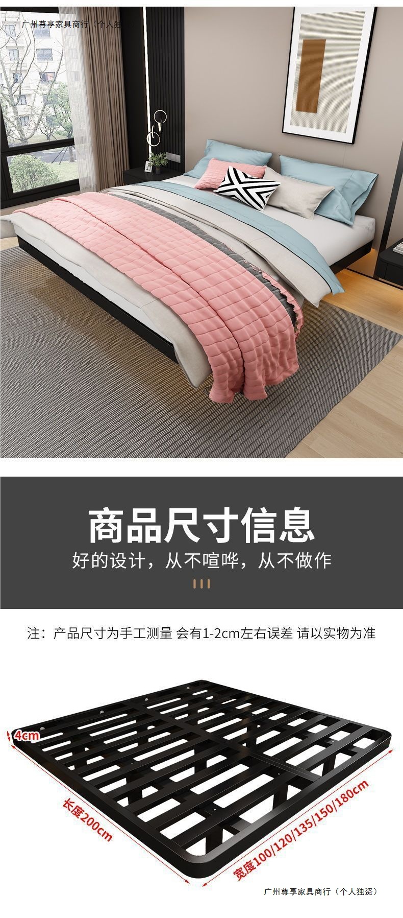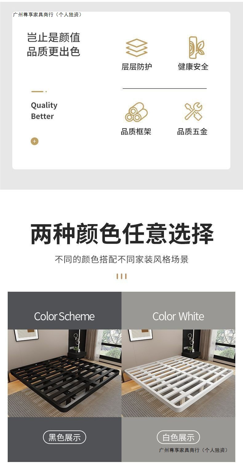 공중부양 침대 프레임, 전체 철제, 간단한 마스터 침실, 침대 옆이 없는 철제 침대 프레임, 더블 침대, 성인 아파트 임대 주택 철제 프레임 침대스토어 가기