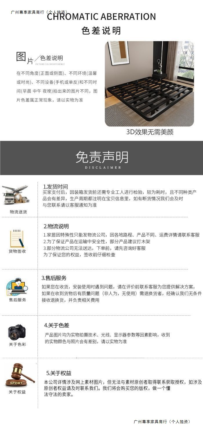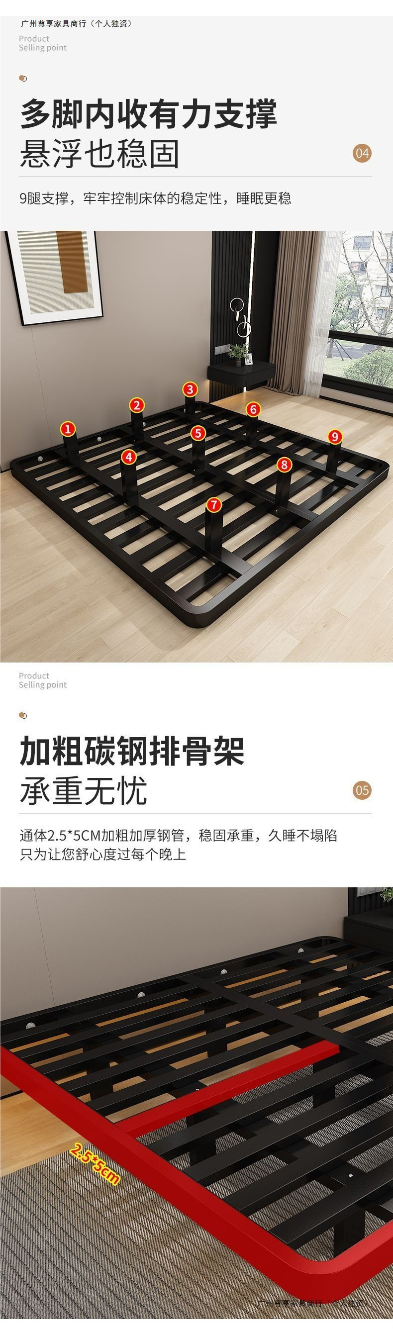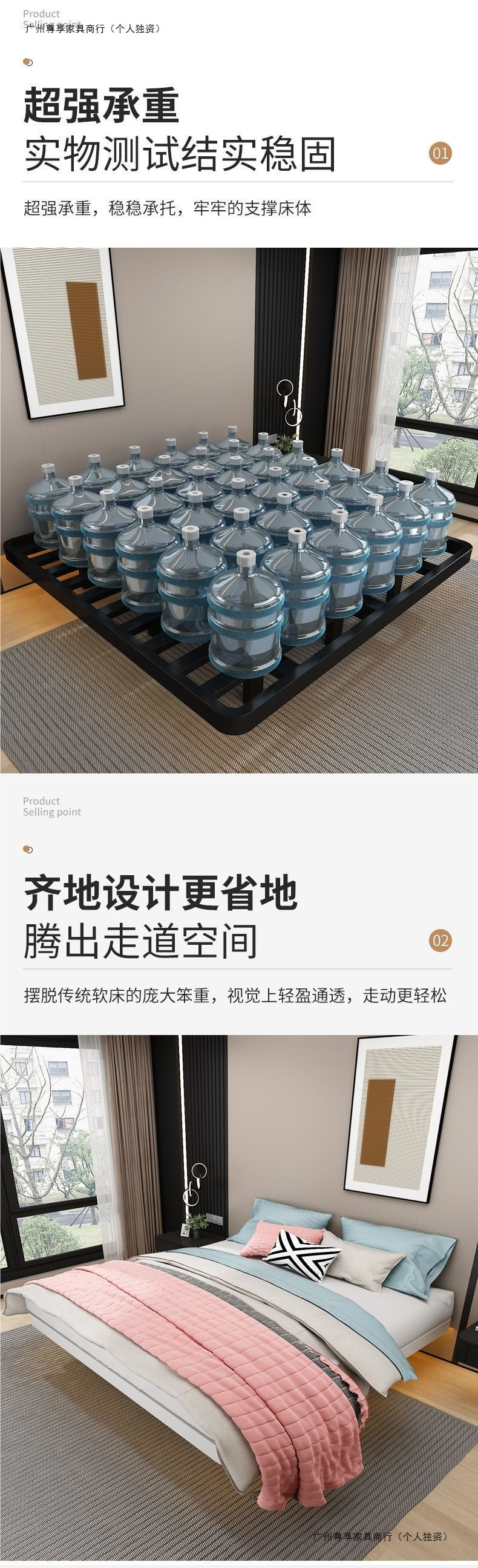 공중부양 침대 프레임, 전체 철제, 간단한 마스터 침실, 침대 옆이 없는 철제 침대 프레임, 더블 침대, 성인 아파트 임대 주택 철제 프레임 침대스토어 가기