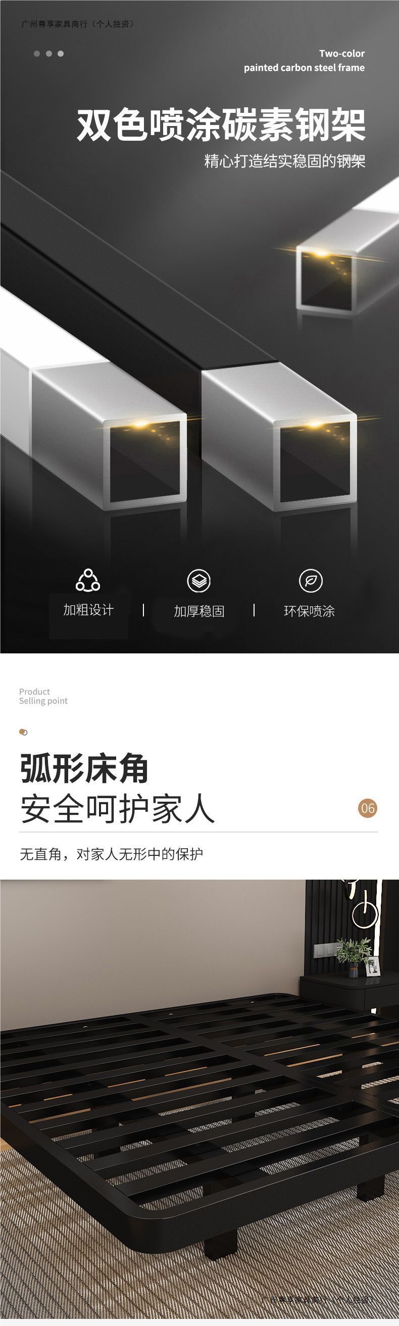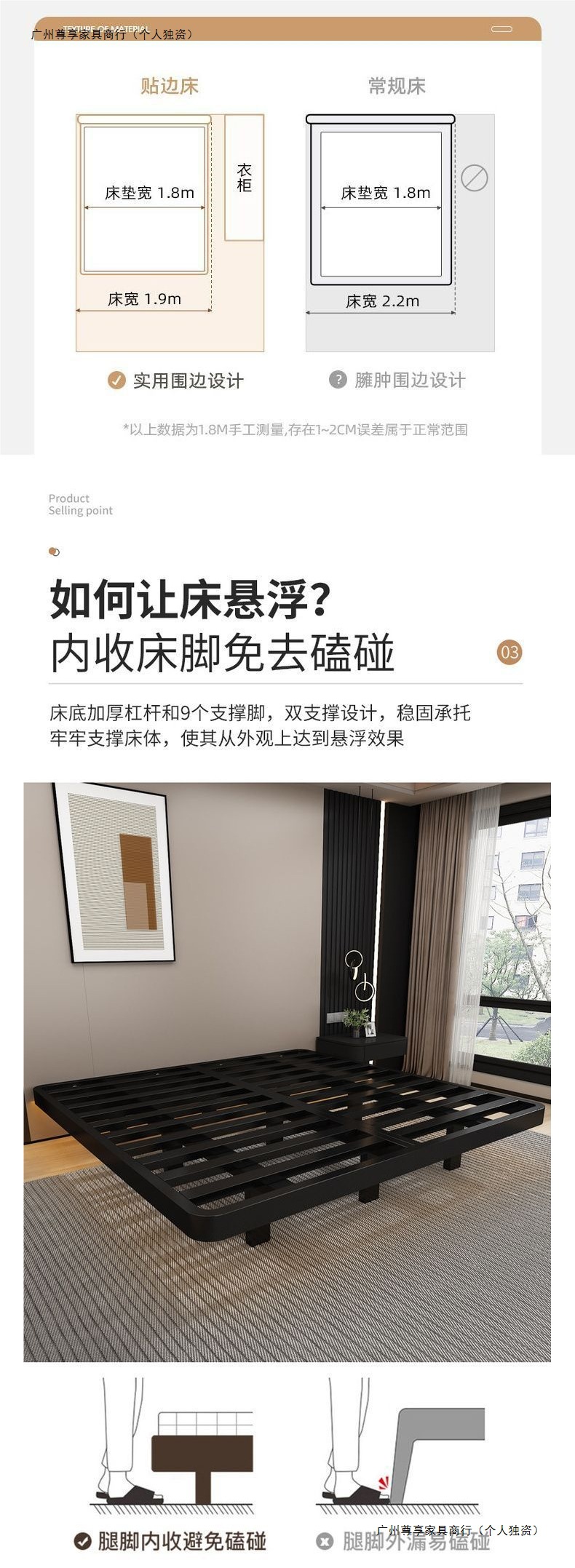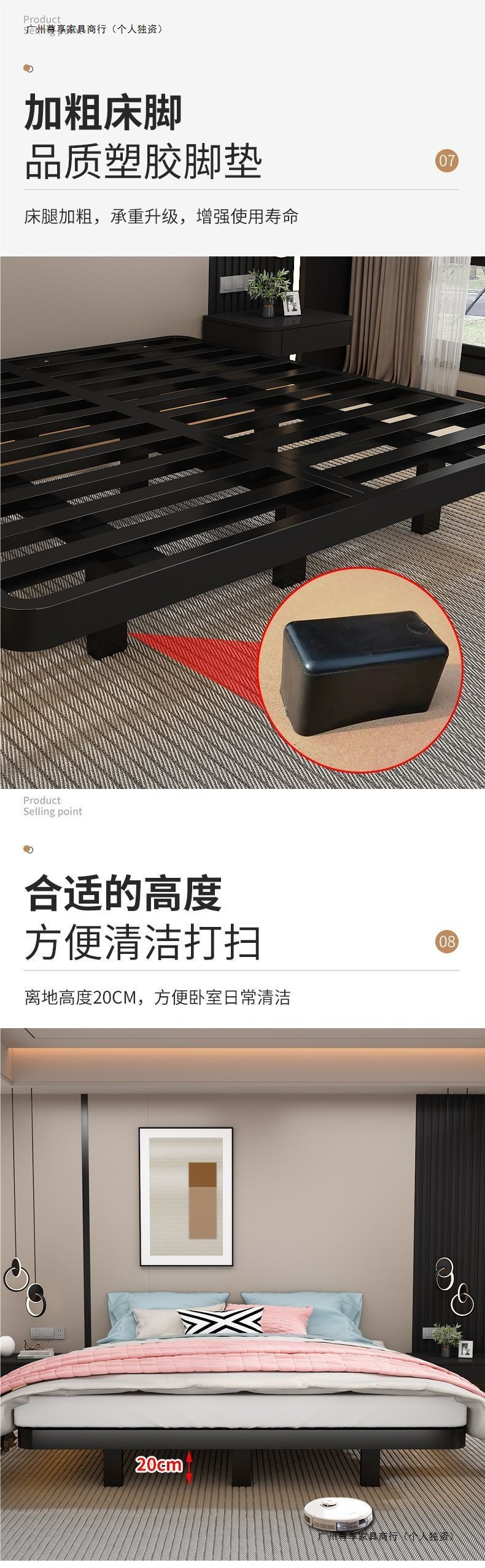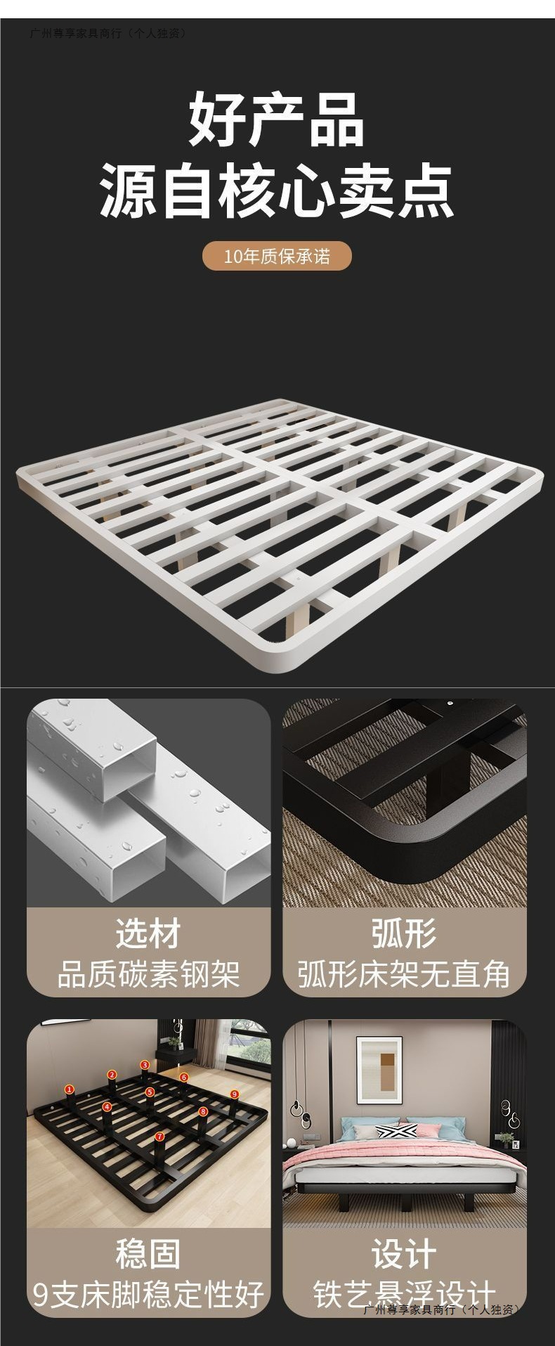 공중부양 침대 프레임, 전체 철제, 간단한 마스터 침실, 침대 옆이 없는 철제 침대 프레임, 더블 침대, 성인 아파트 임대 주택 철제 프레임 침대스토어 가기