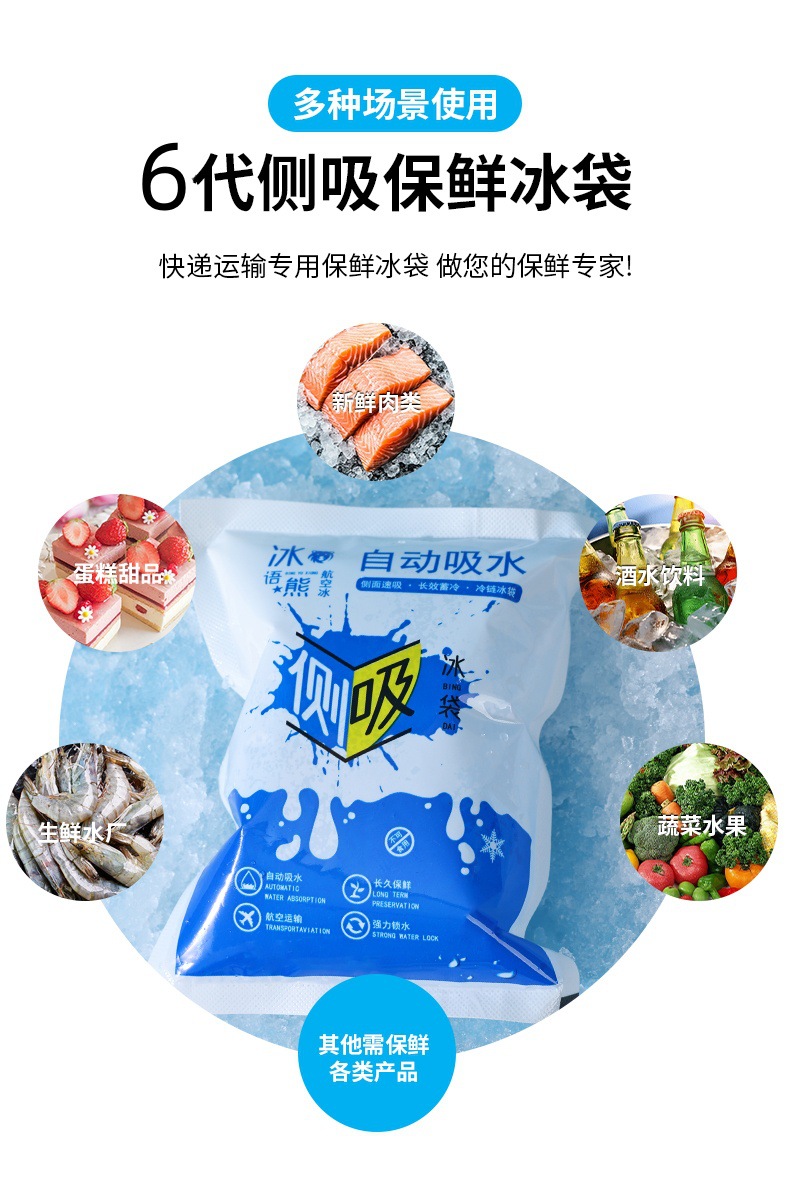 측면 흡입 아이스 백 식품 등급 냉동 테이크 아웃 신선한 수산물 냉장 냉각 젤 자체 흡수 아이스 백