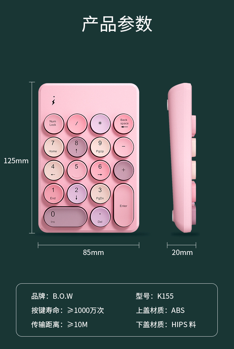 BOW Hangshi K155 미니 휴대용 테이크아웃 키패드 재무 회계 사무실 복고풍 둥근 모자 외부 귀여운