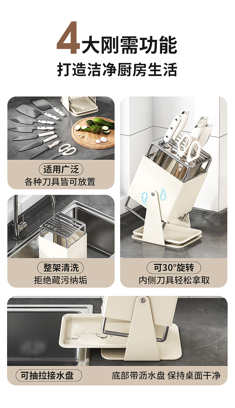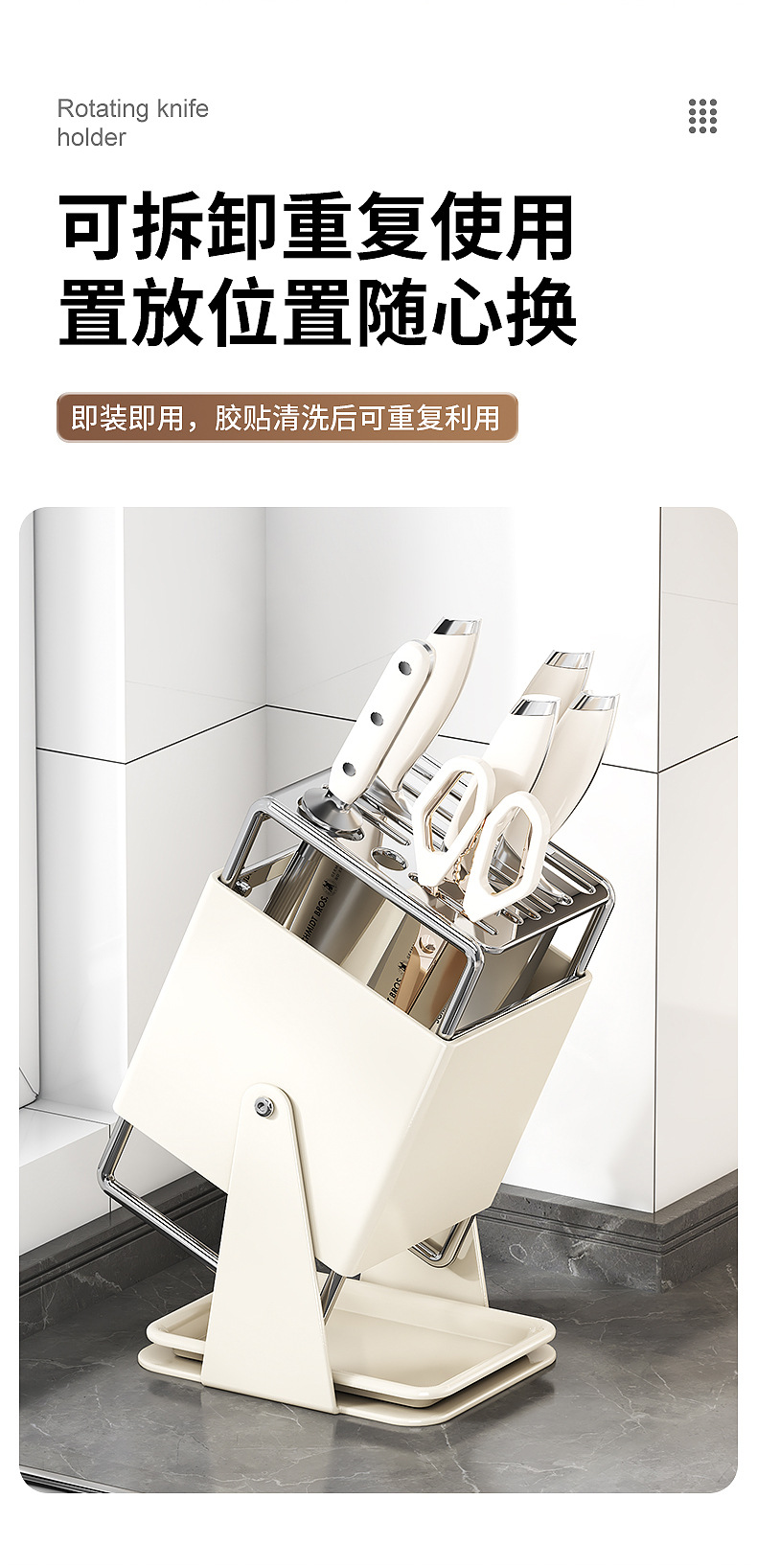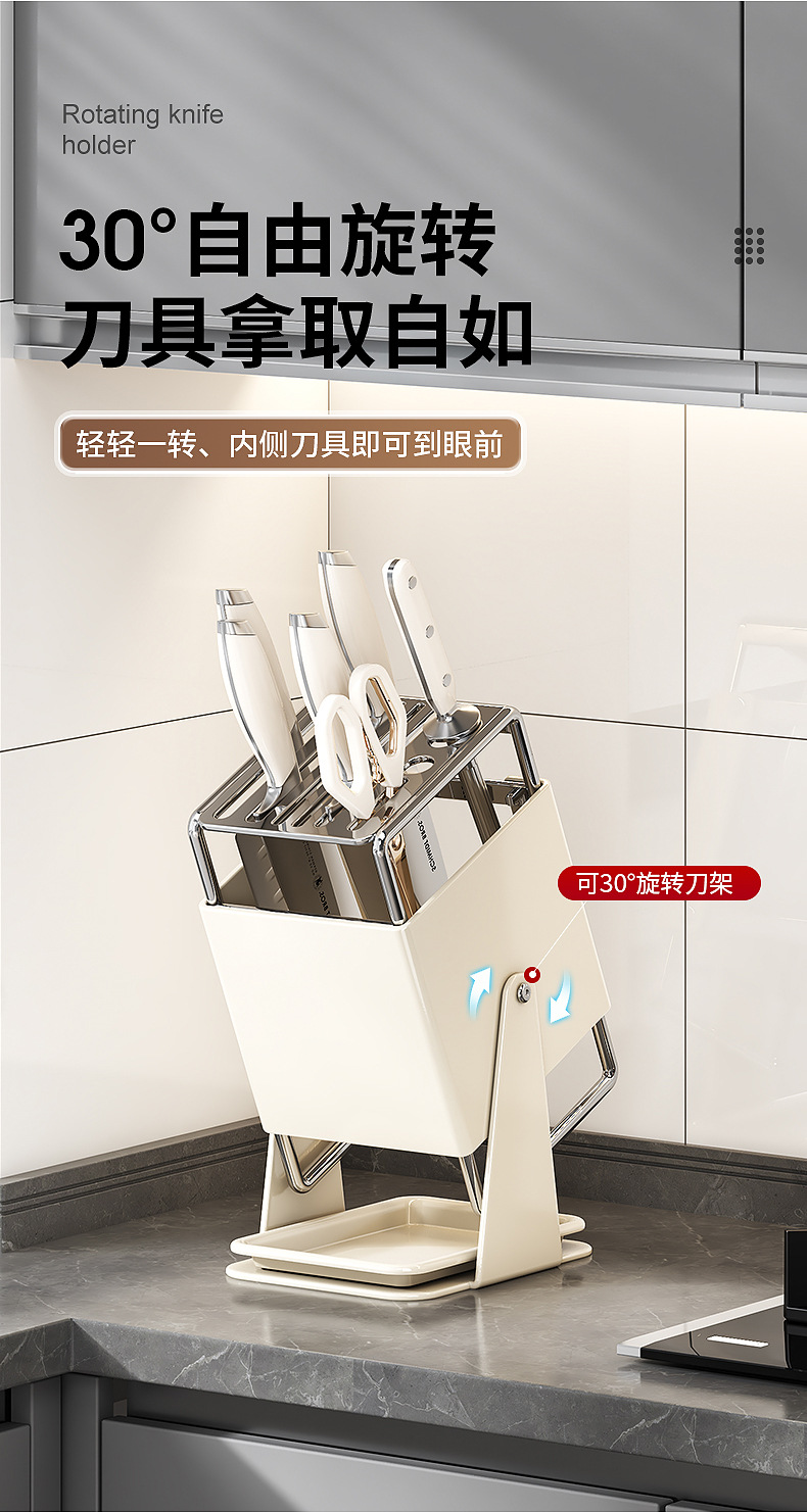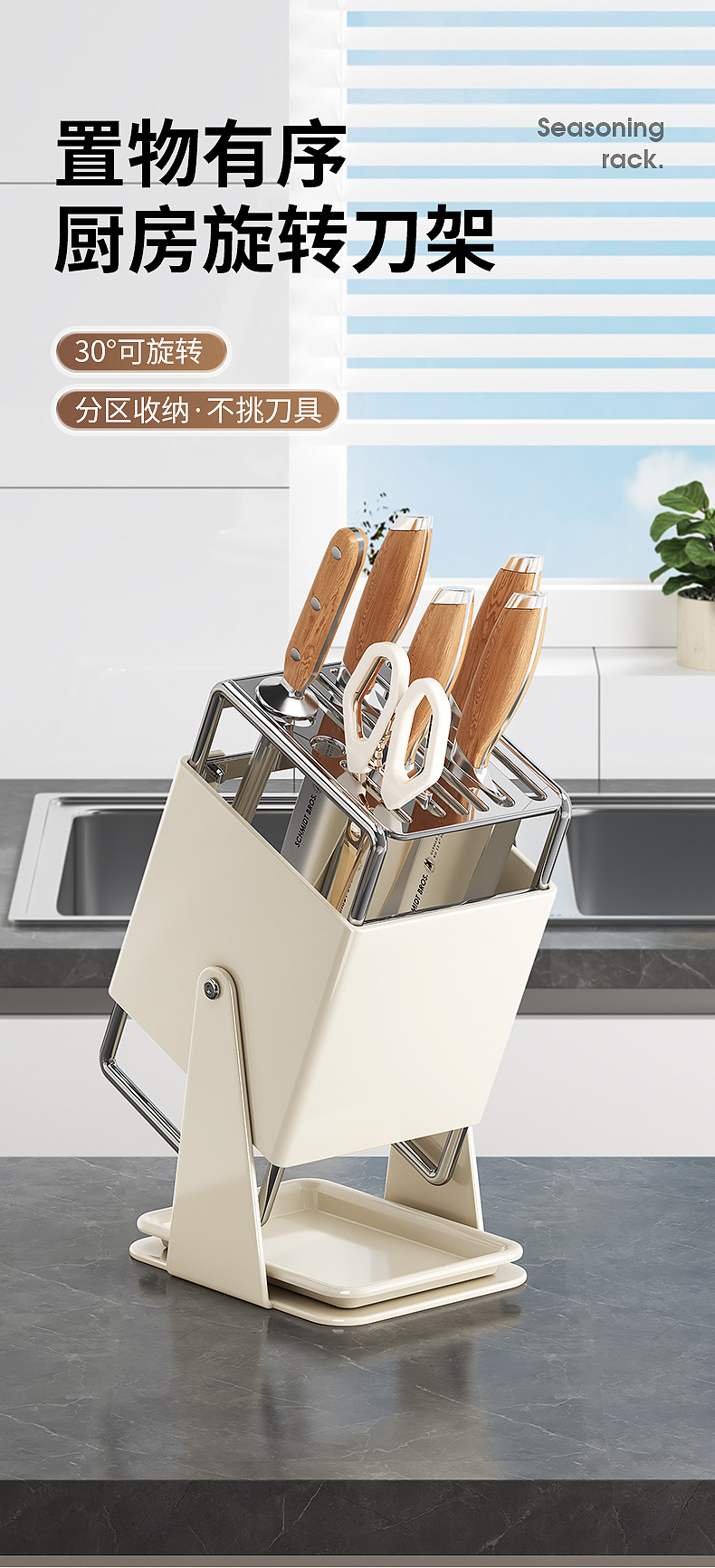 주방 조리대 회전식 칼 홀더 개방형 가정용 수납 선반 물 트레이가 있는 새로운 수납 식칼 선반스토어 가기