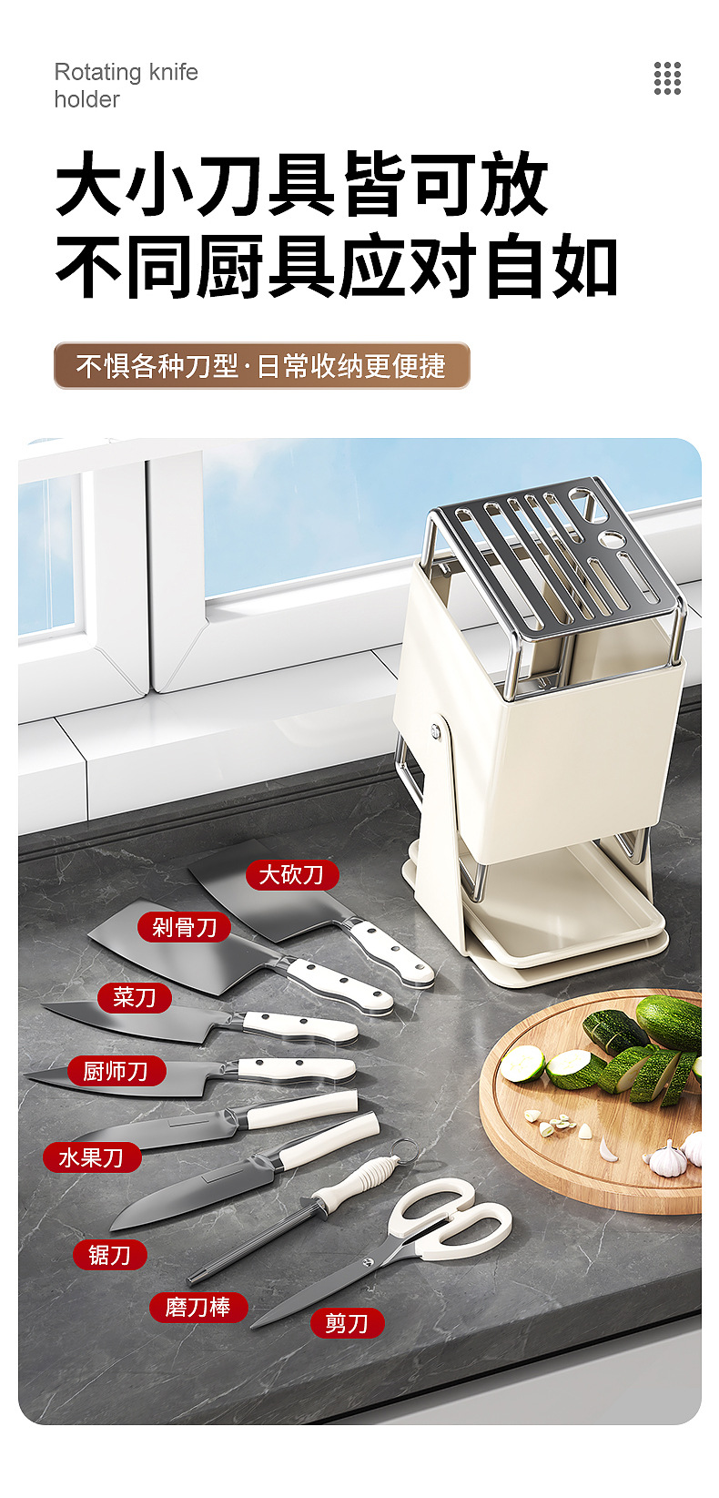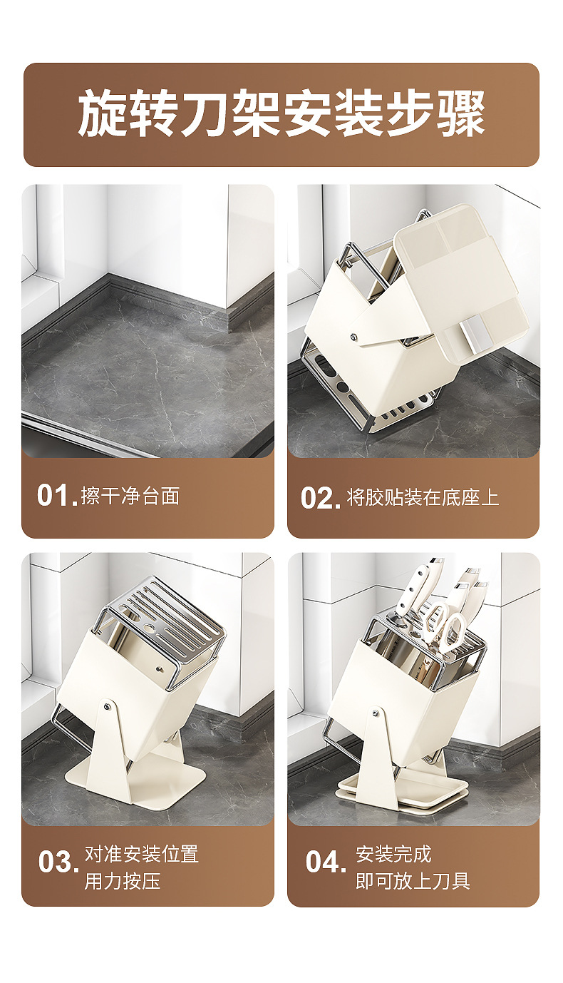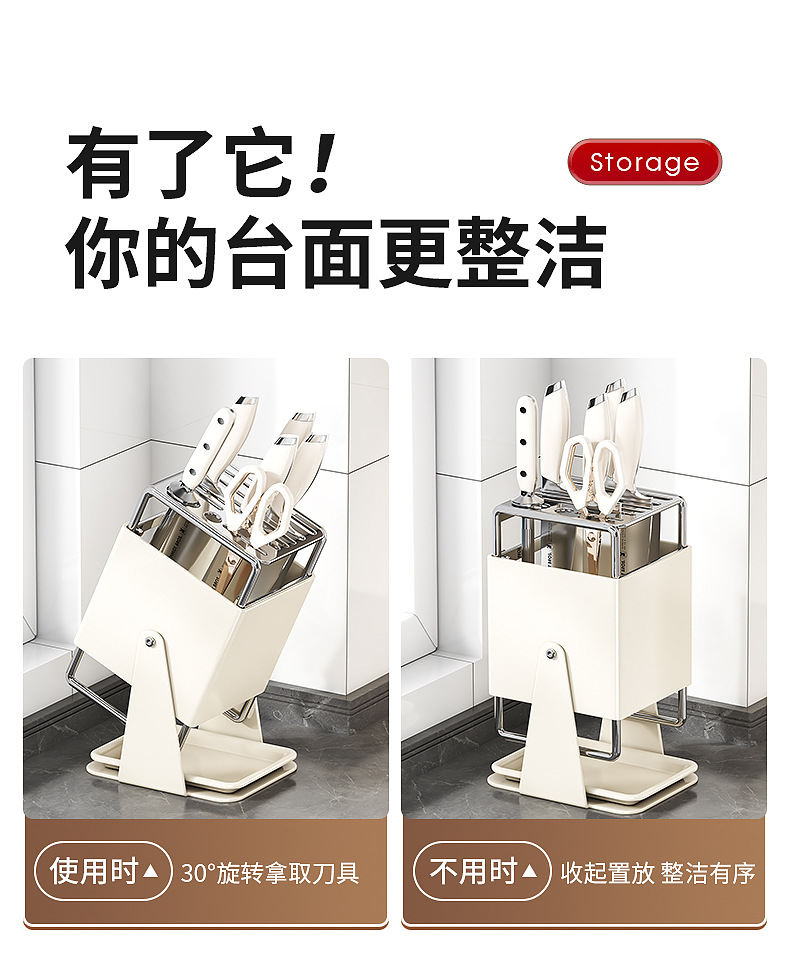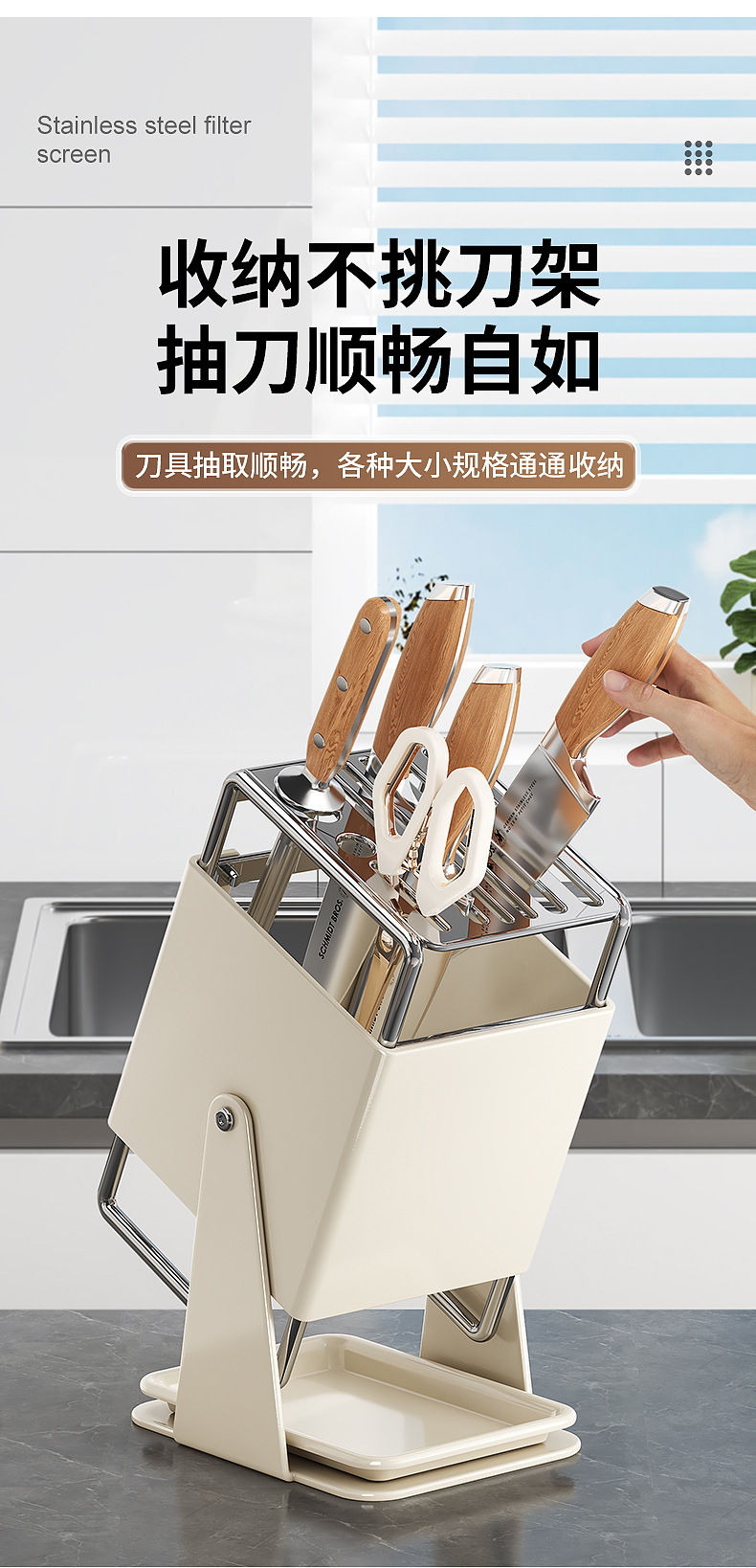 주방 조리대 회전식 칼 홀더 개방형 가정용 수납 선반 물 트레이가 있는 새로운 수납 식칼 선반스토어 가기