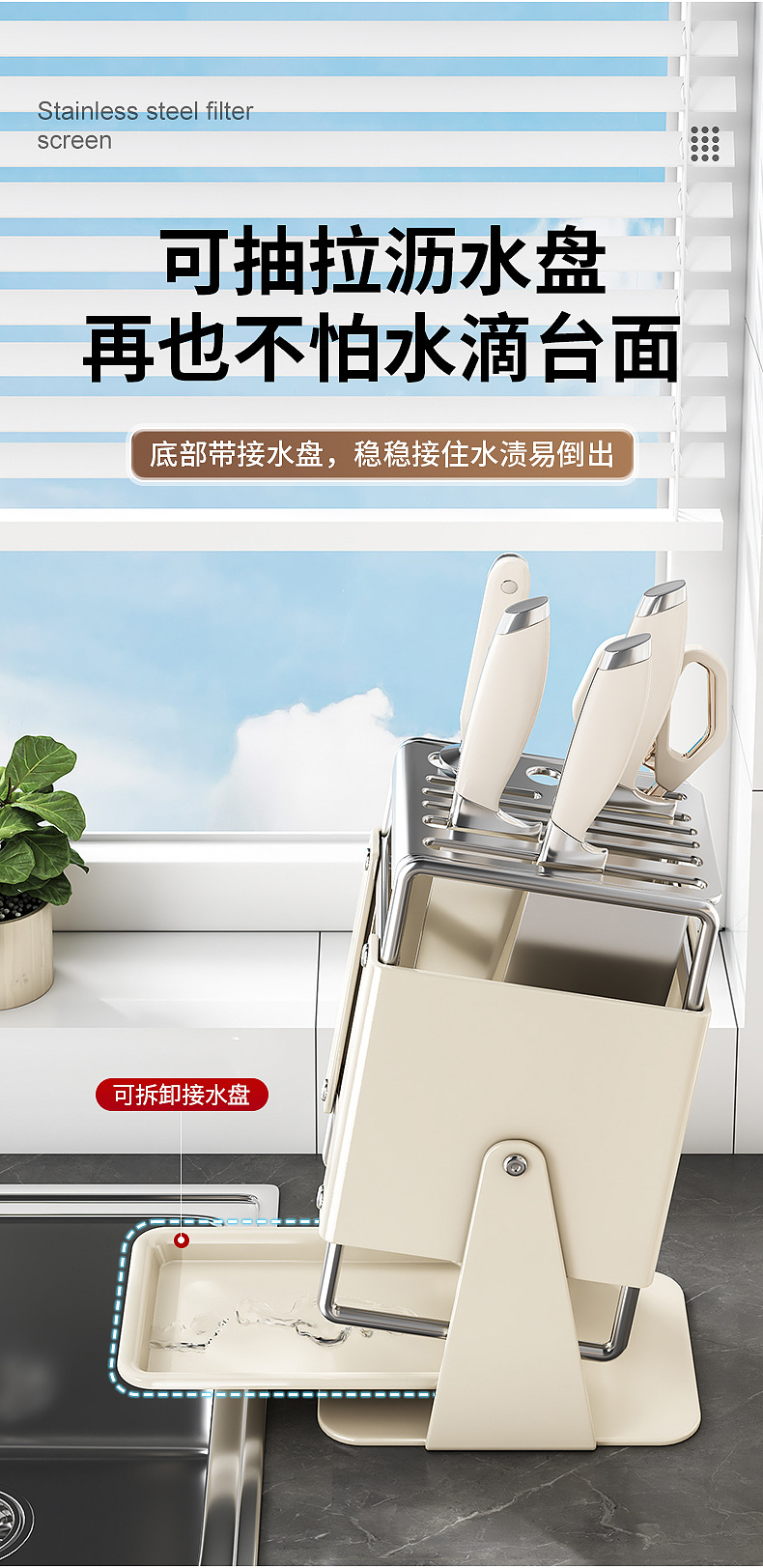 주방 조리대 회전식 칼 홀더 개방형 가정용 수납 선반 물 트레이가 있는 새로운 수납 식칼 선반
