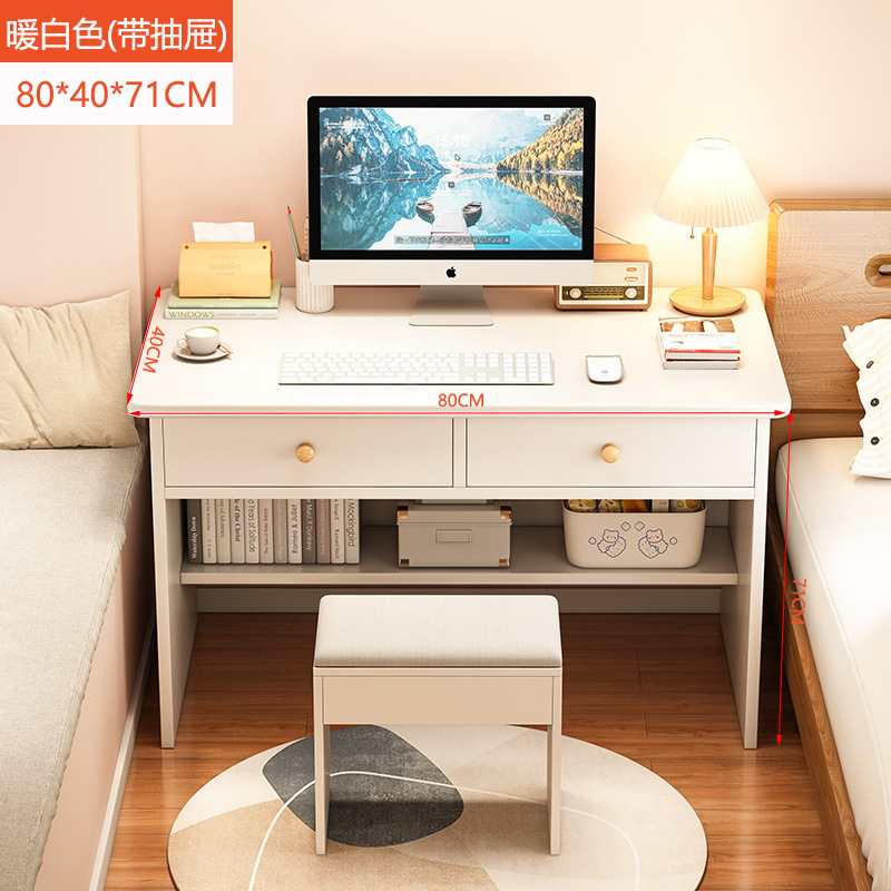• ★ 싱글 테이블 [세트 + 서랍 2개] 웜화이트 80CM + 스툴