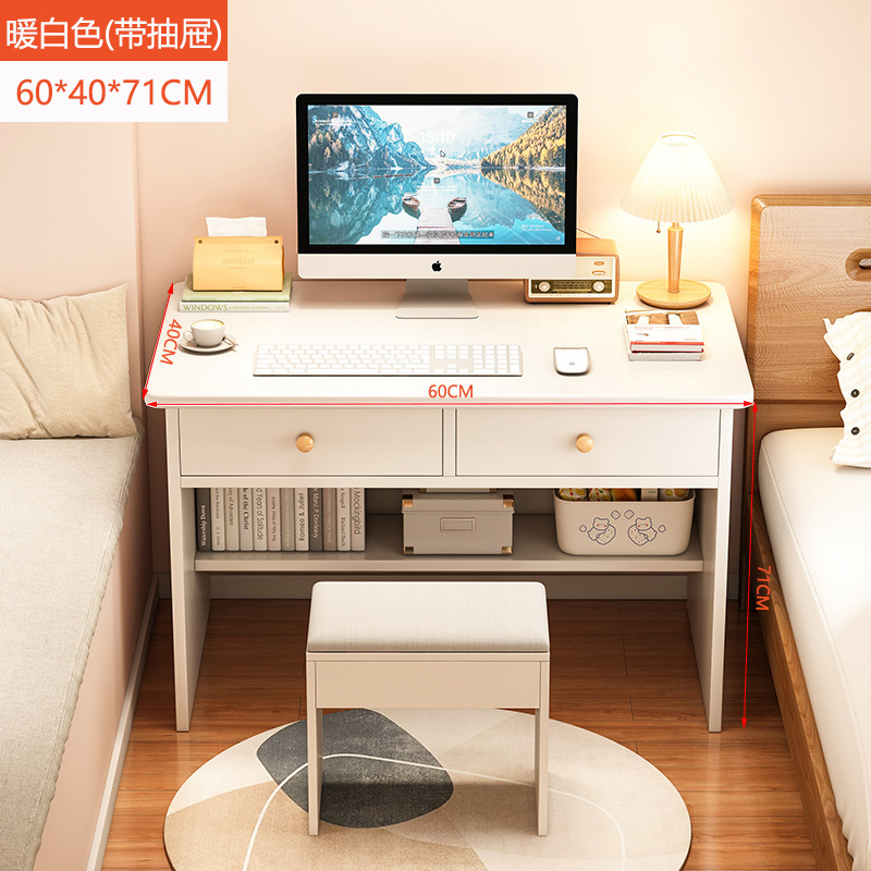 • ★ 싱글 테이블 [세트 + 서랍 2개] 웜화이트 60CM + 스툴