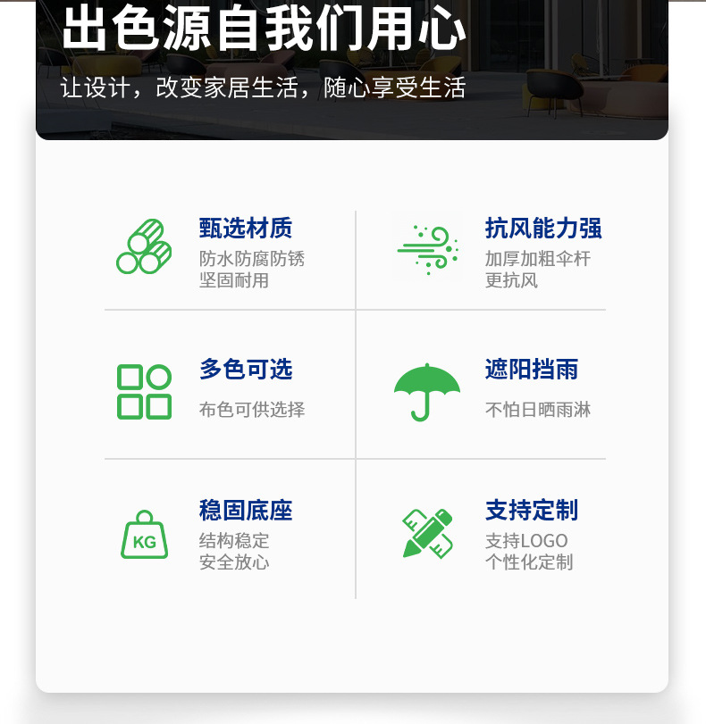 • 2.7m 원형 싱글 탑 센터 컬럼 우산(시트 없음)