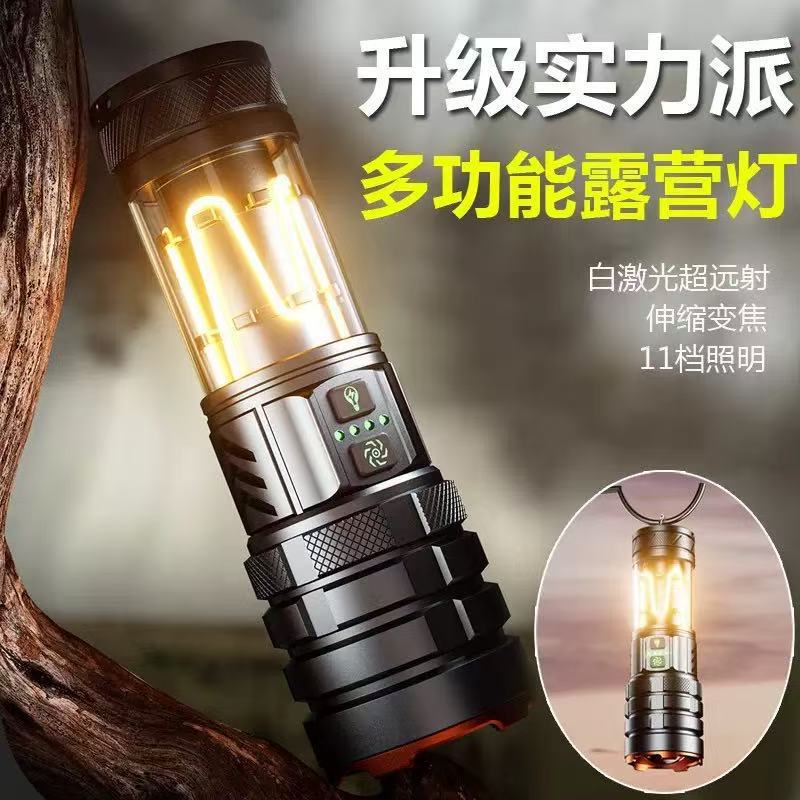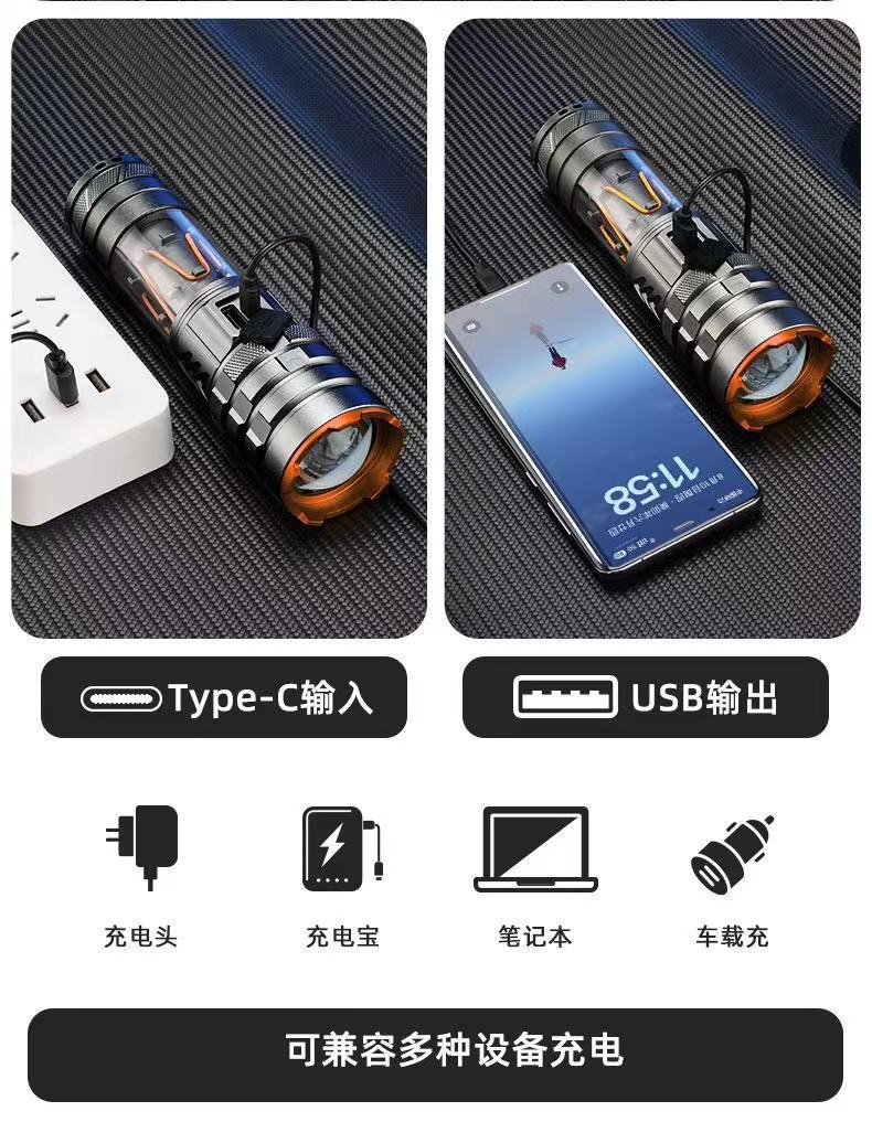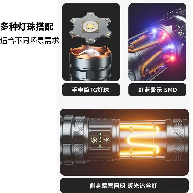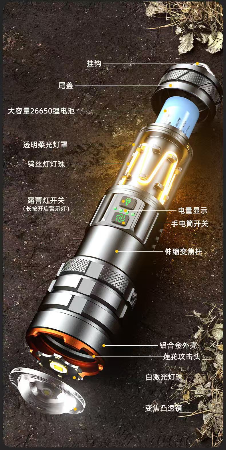 국경 간 백색 레이저 장거리 충전식 야외 가정용 조명 다기능 줌 휴대용 캠핑 램프 밝은 손전등