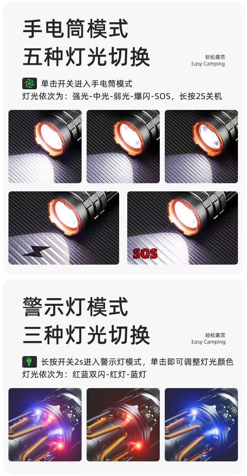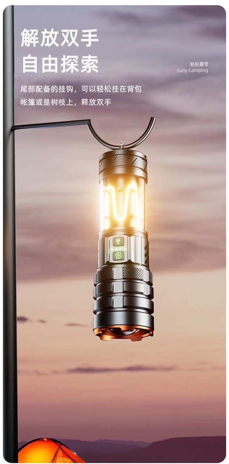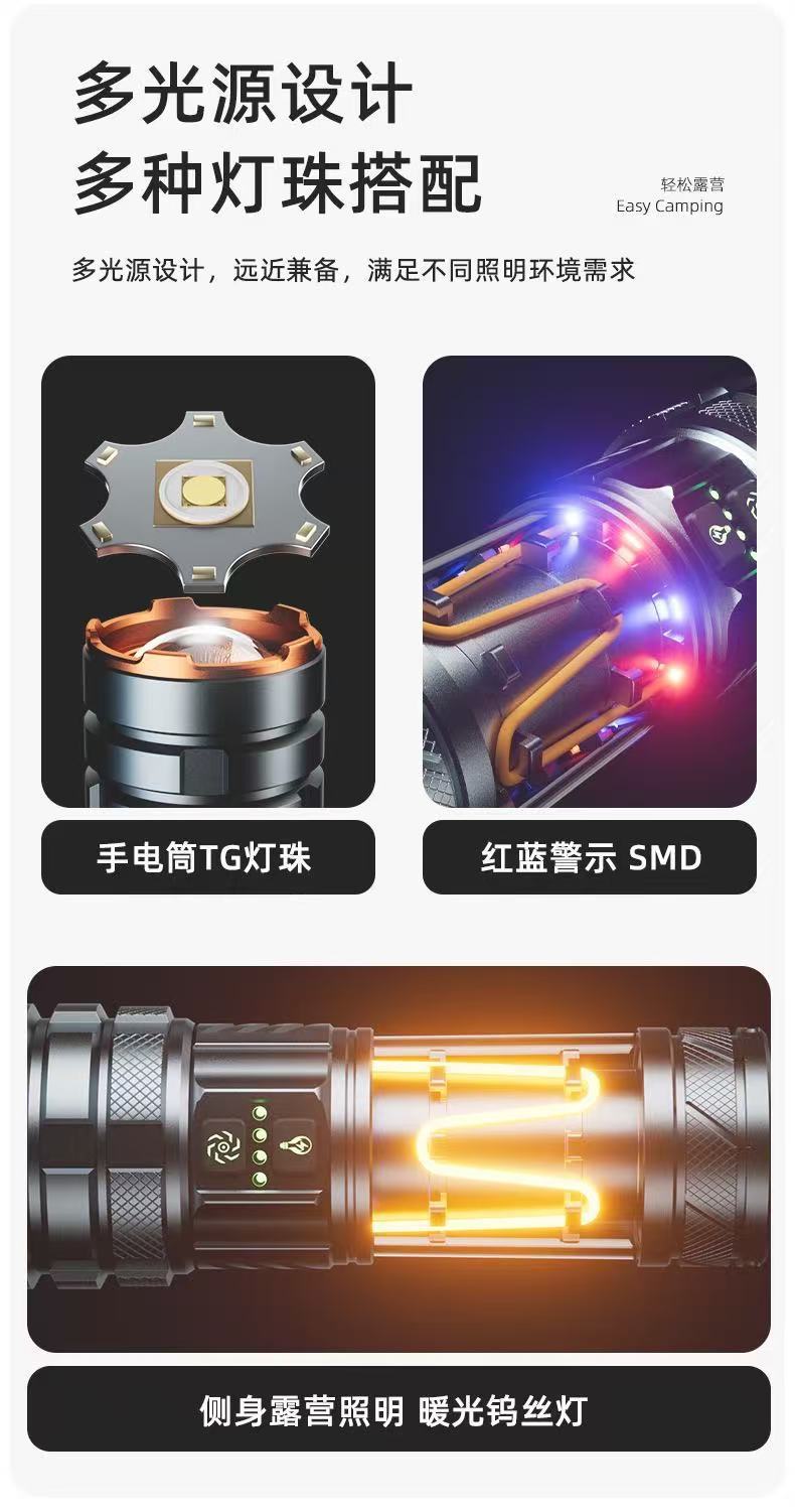 국경 간 백색 레이저 장거리 충전식 야외 가정용 조명 다기능 줌 휴대용 캠핑 램프 밝은 손전등