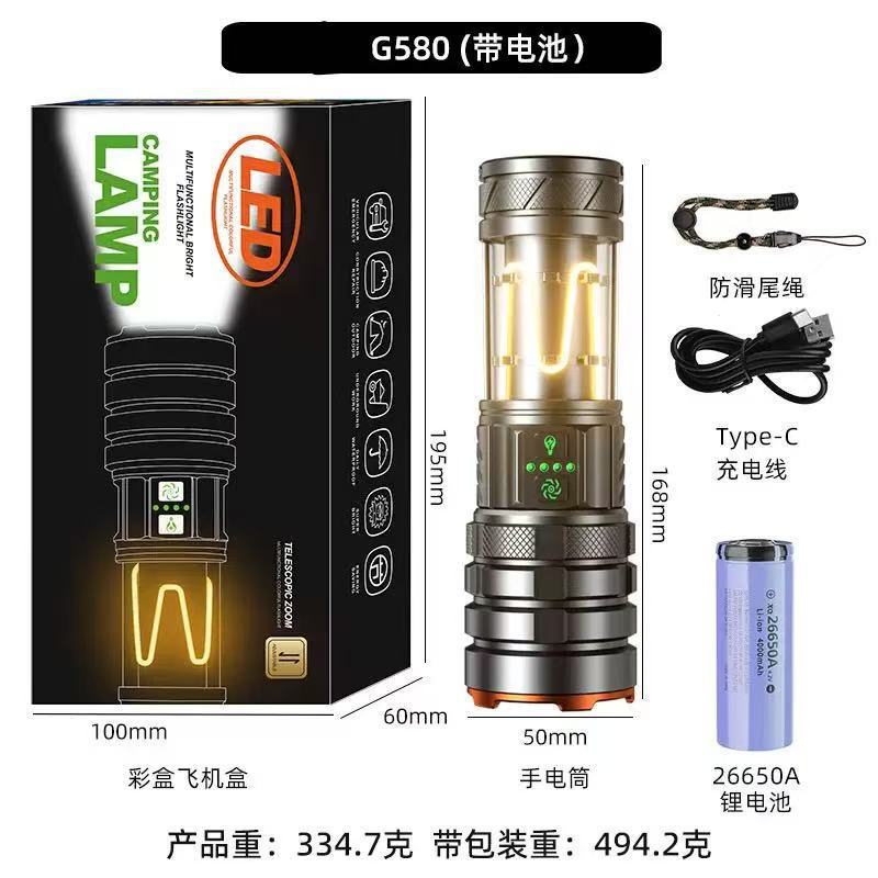 • G580 손전등 + 2섹션 26650 + 선물 상자