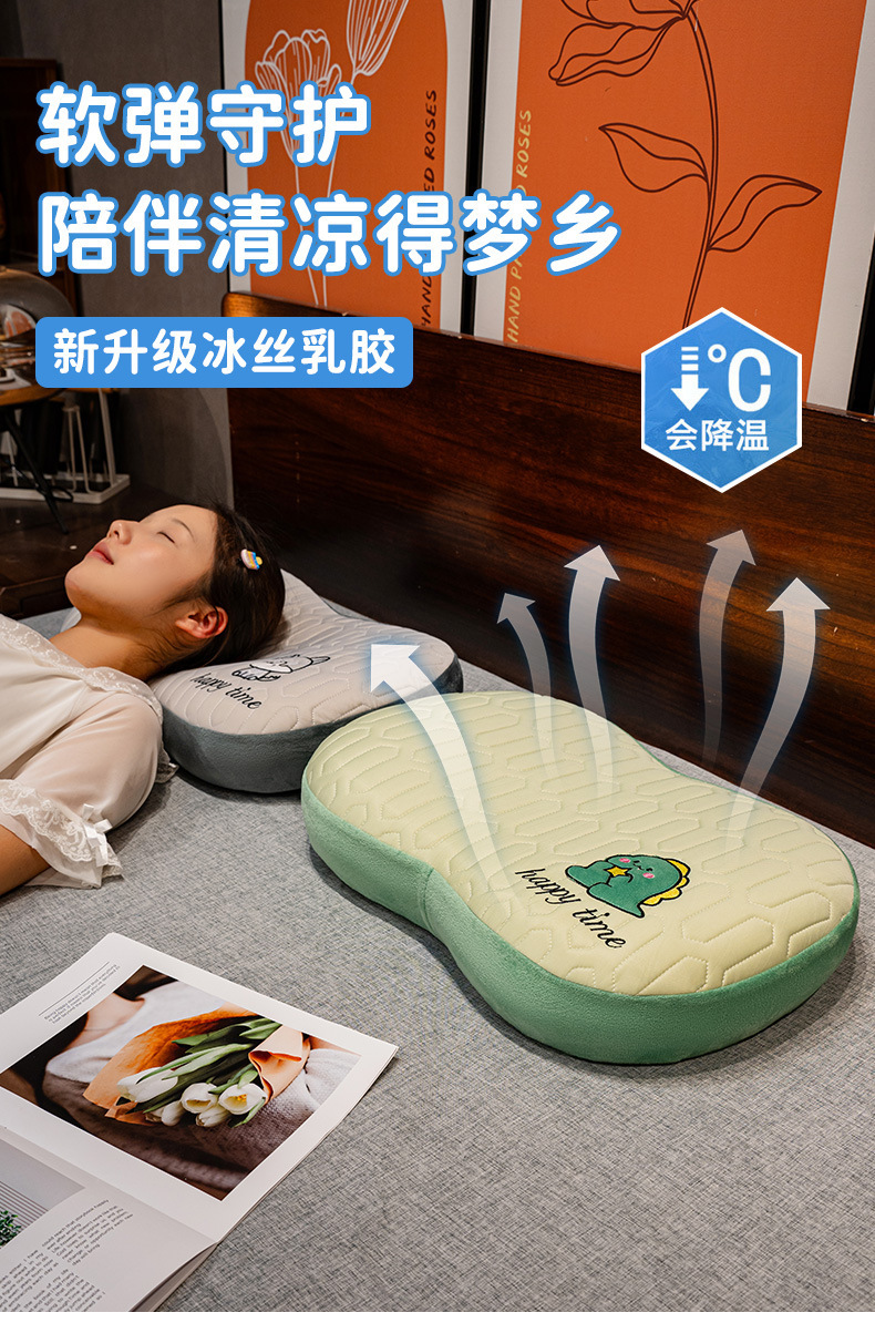 메모리 폼 베개 여름 얼음 실크 고양이 배 베개 경추 수면 베개 사무실 침대 베개 쿠션 베개
