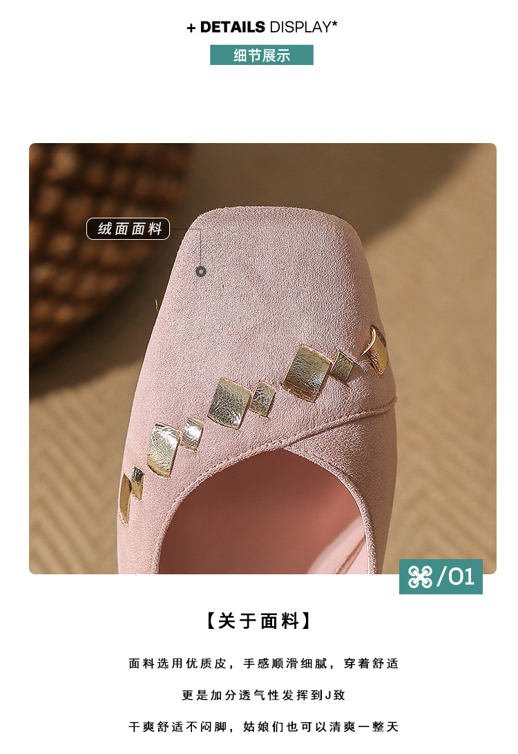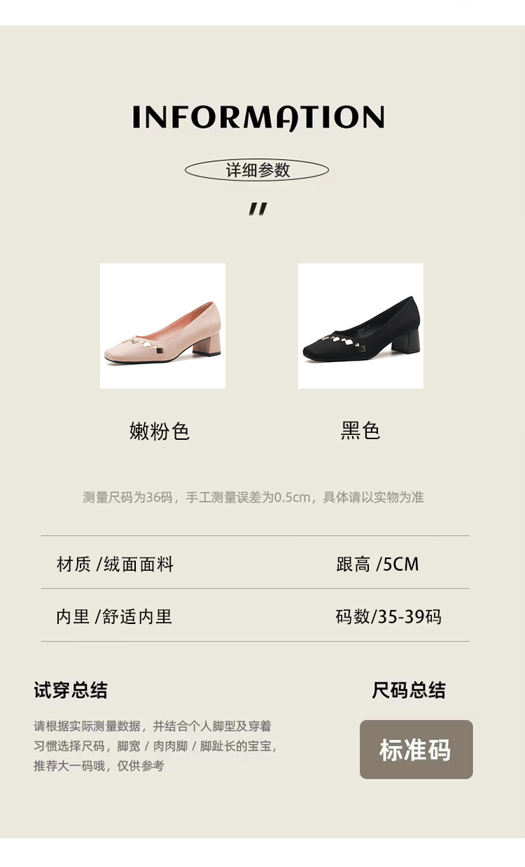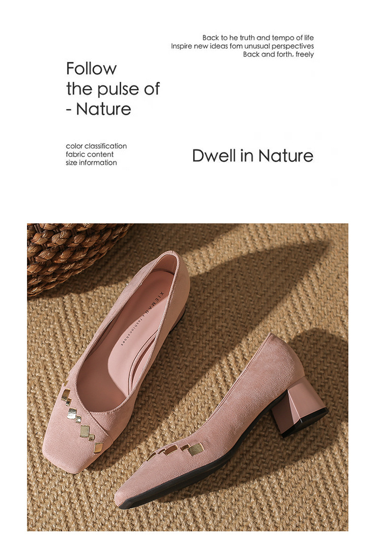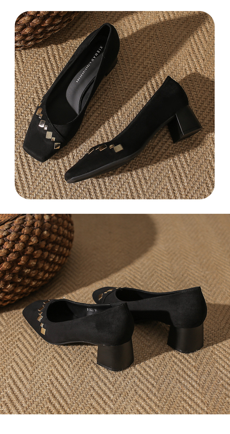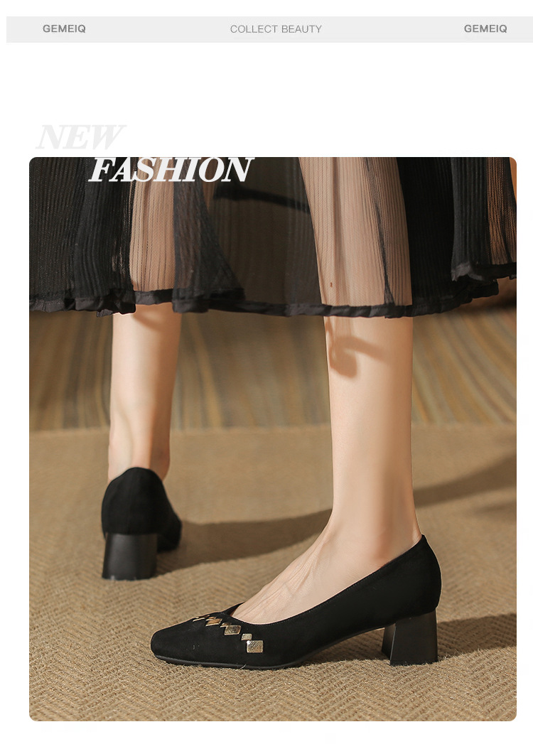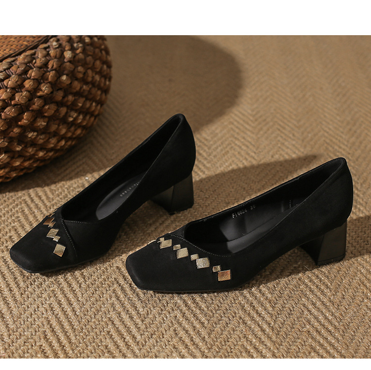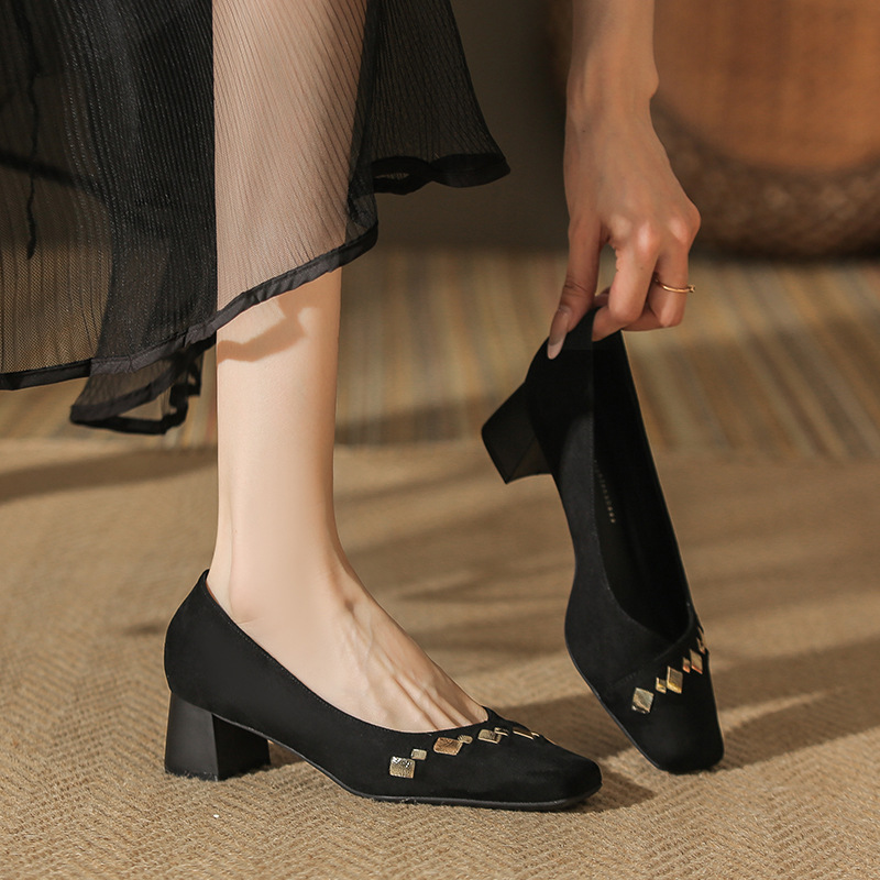 402 봄 여름 신상 여성용 펌프스 슈즈, 두꺼운 굽, 배색, 스웨이드, 편안한 스퀘어 토, 여성용 사계절 슈즈, 미드힐스토어 가기
