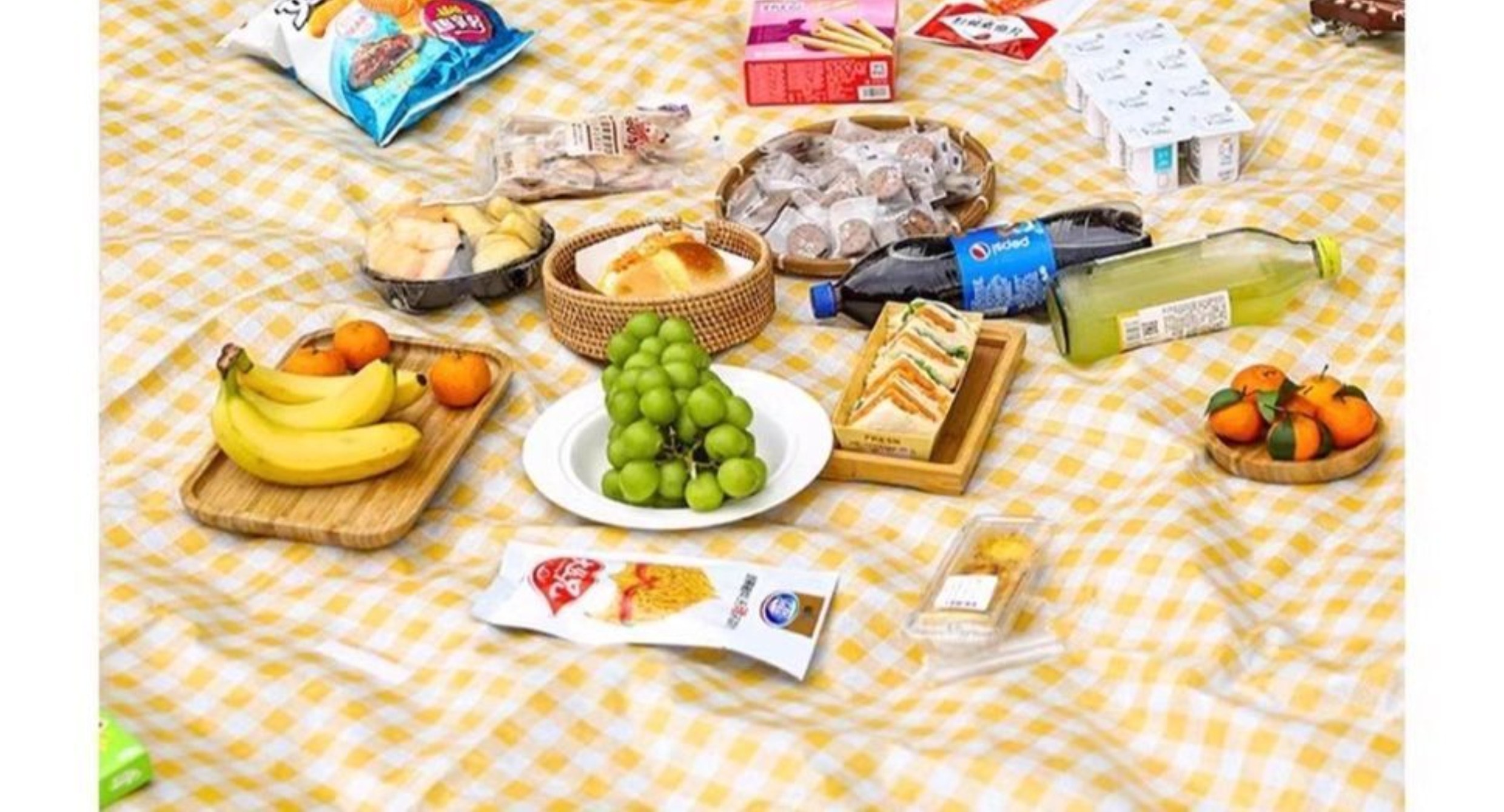 • 두꺼운 노란색 격자 무늬 2*2m [8명이 앉을 수 있음] 양면 방수/꽃과 식물에 달라붙지 않음