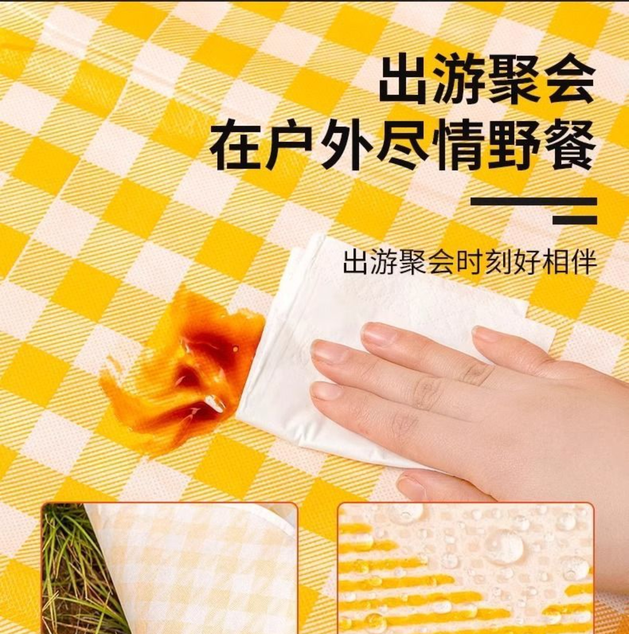 • 두꺼운 노란색 격자 무늬 2*1.5m [6명이 앉을 수 있음] 양면 방수/꽃과 식물에 달라붙지 않음