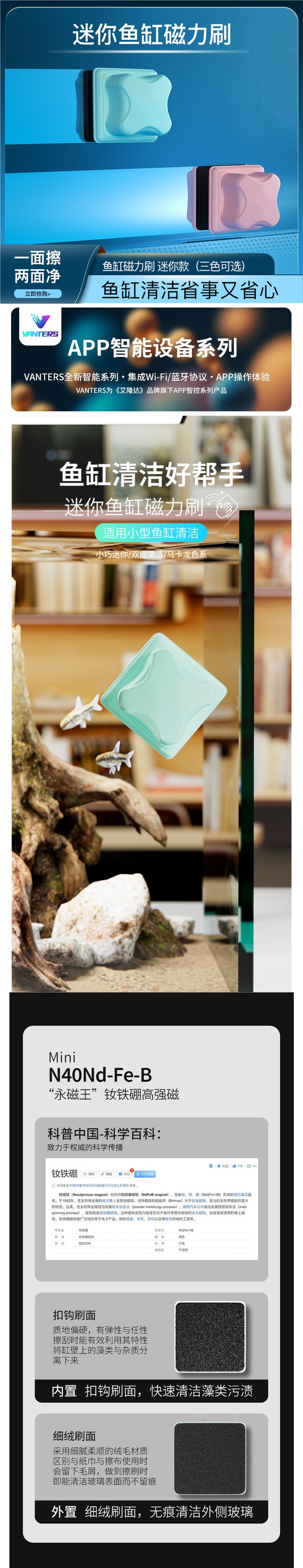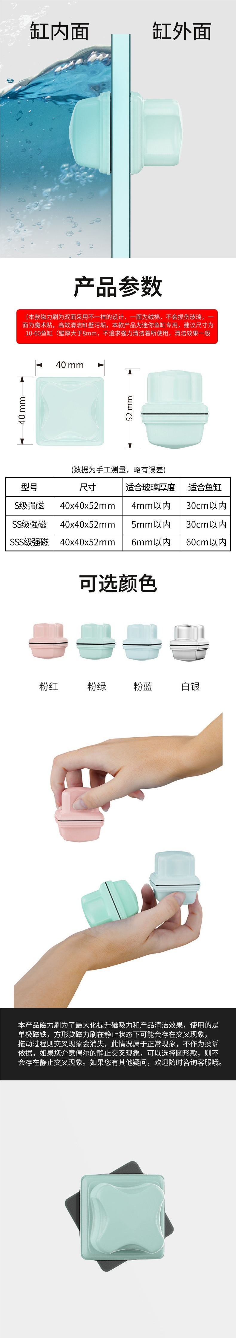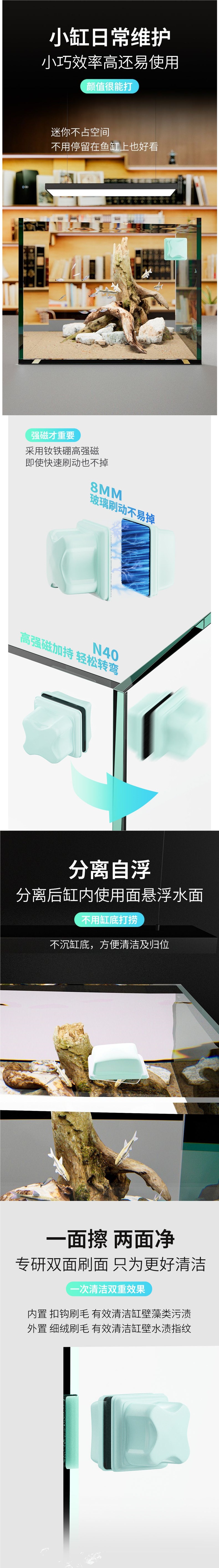 수조용 자석 브러시, 강력한 자석 유리 닦는 도구, 미니 버전 조류 스크레이퍼, 양면 청소 삽스토어 가기