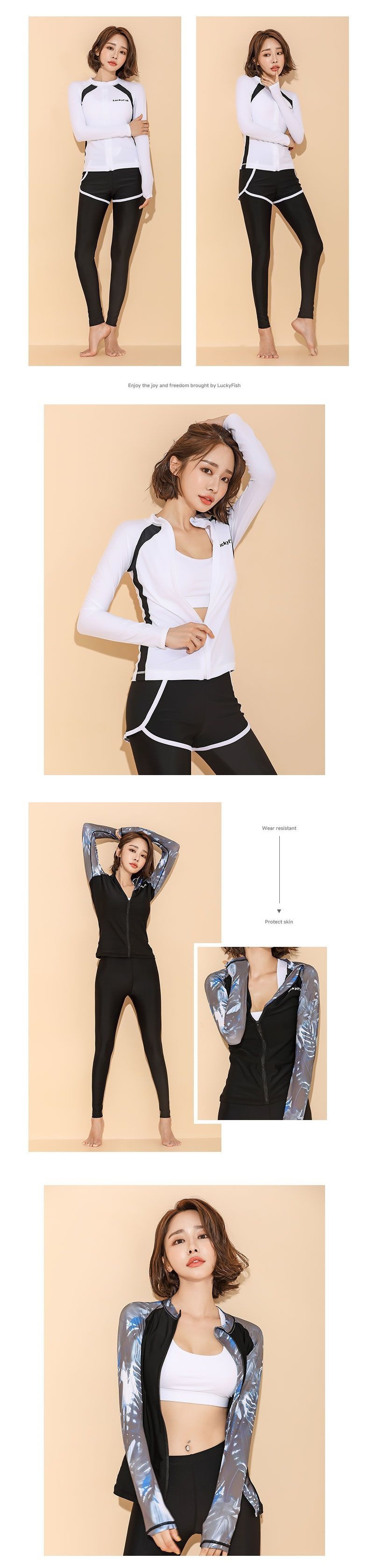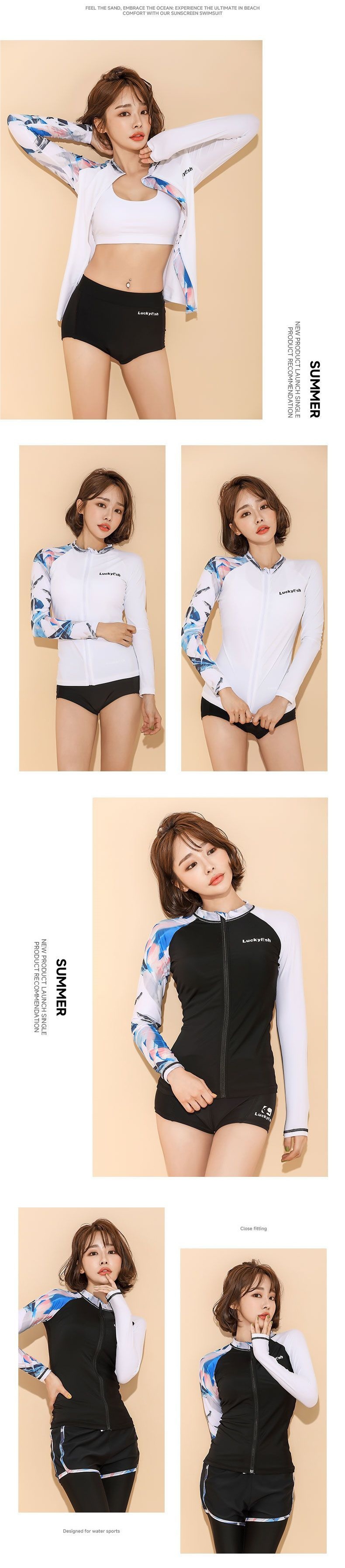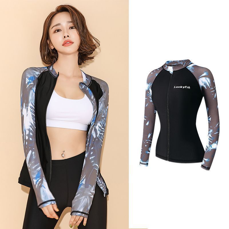 야외 여성용 스플릿 다이빙 슈트, 보수적인 자외선 차단 서핑 및 수영 슬리밍 긴팔 속건 해파리 Lanqi스토어 가기