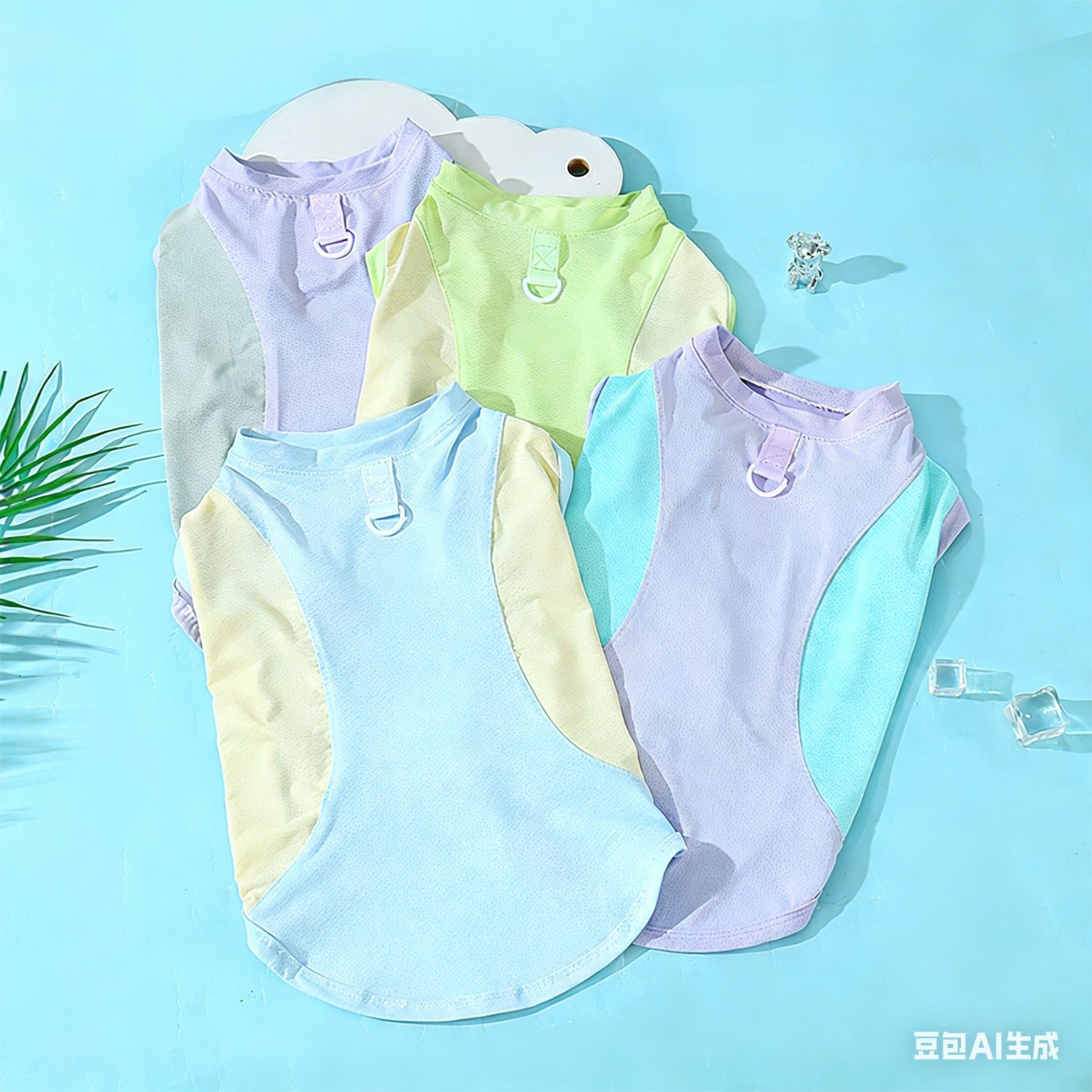 강아지 용품, 고양이 아이스 실크 조끼, 소형 및 중형견 야외용 자외선 차단 강아지 옷, 반팔 애완동물 의류