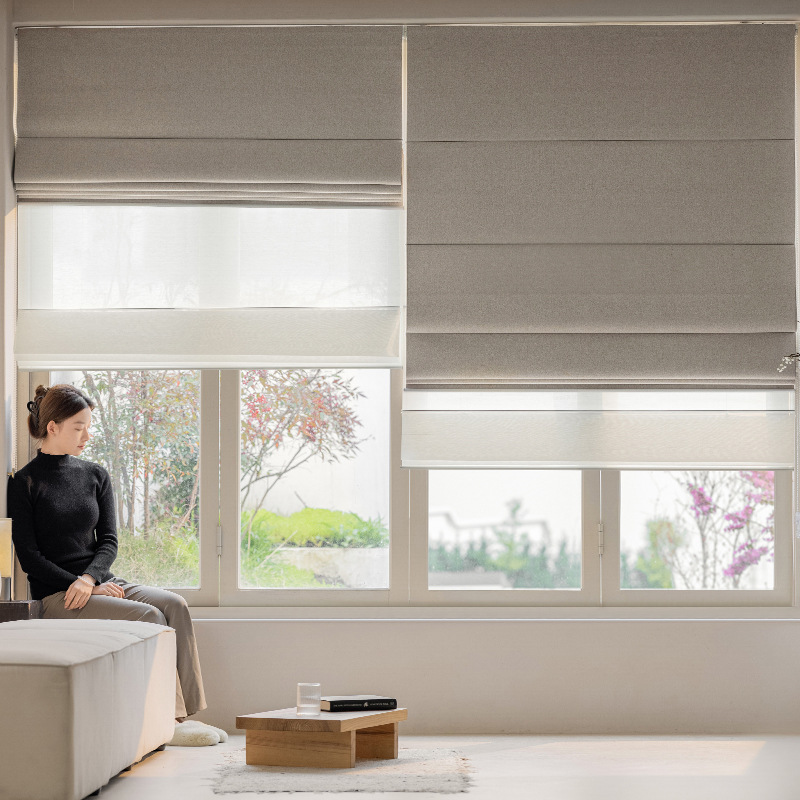 제조업체의 완전 암막 린넨 롤스크린, 거실, 침실, 서재, 다실용, 리프트형 로만 블라인드, 이중 레이어 낮밤 차양 커튼스토어 가기