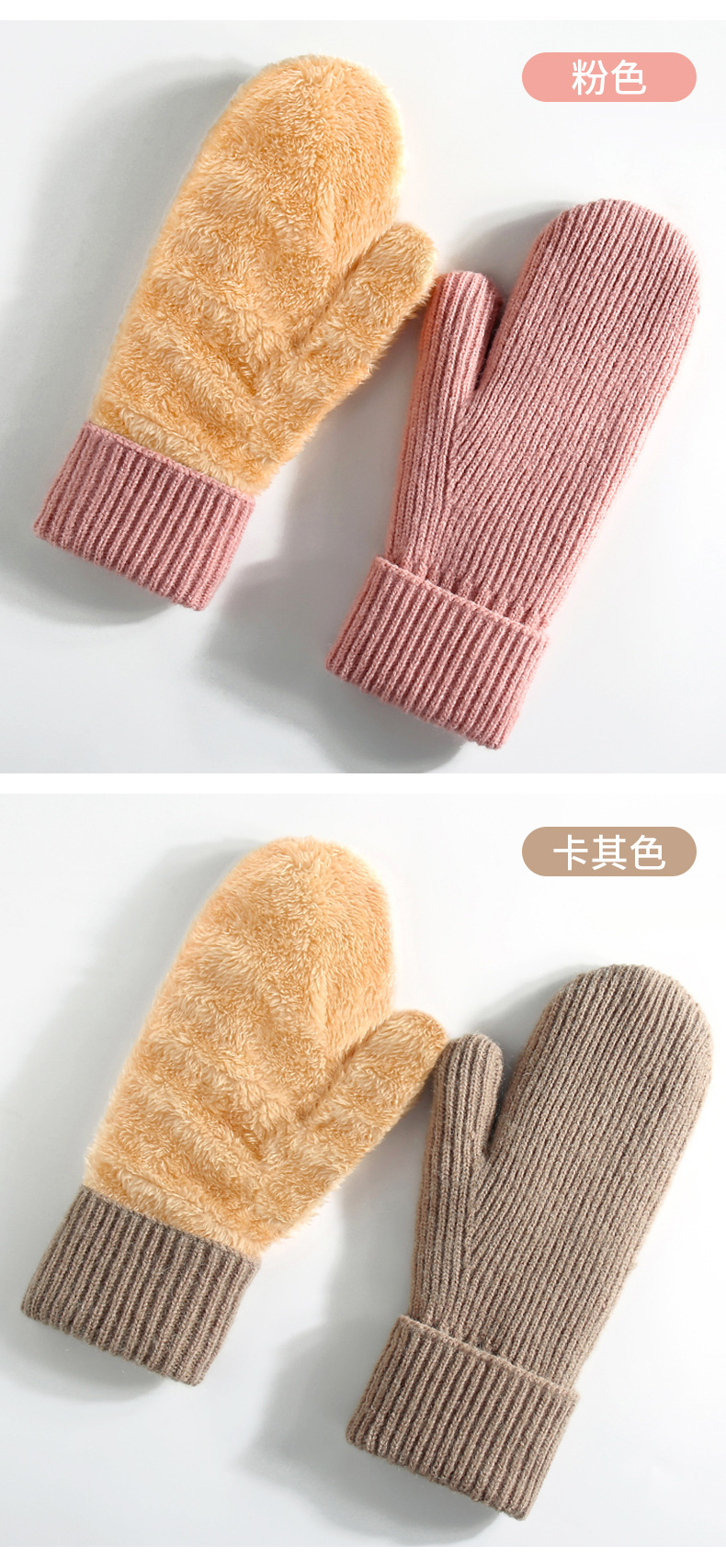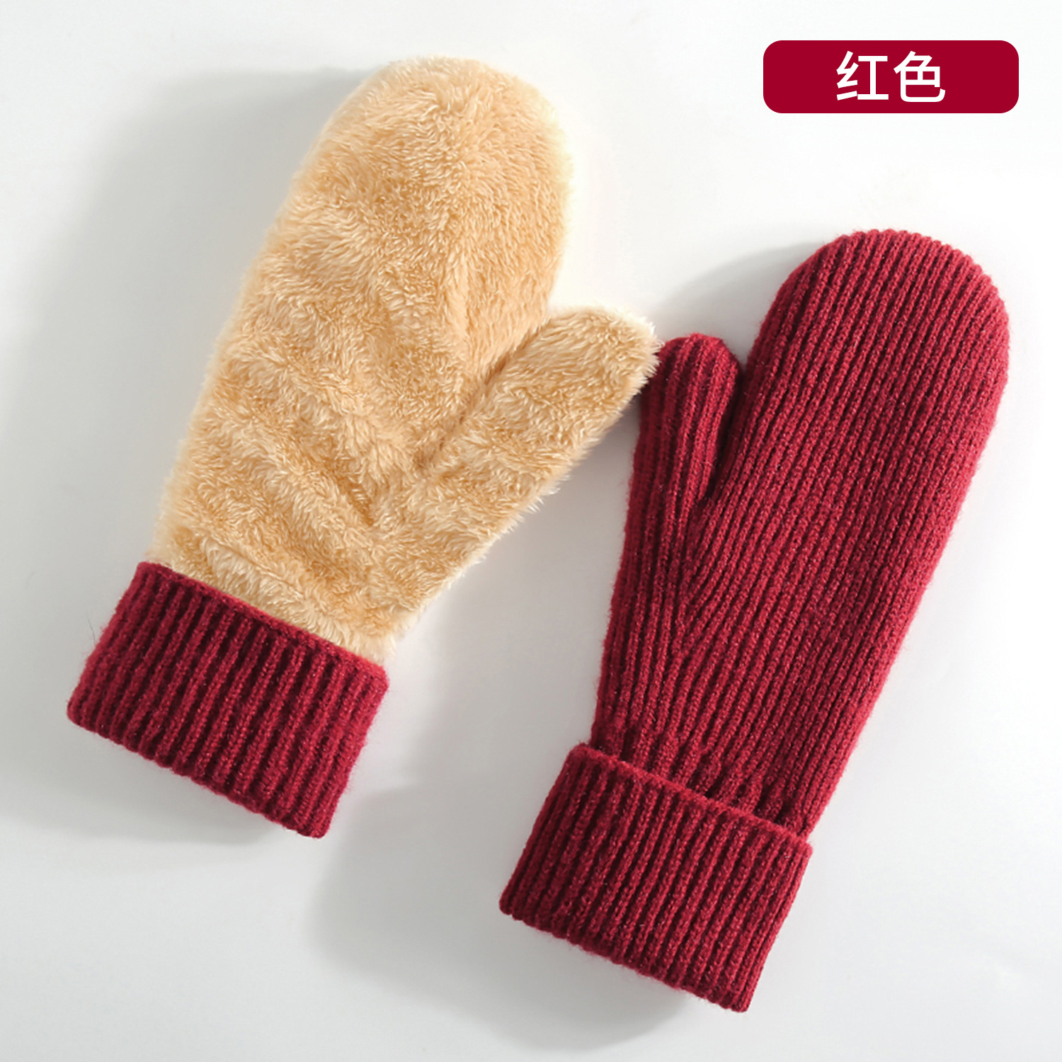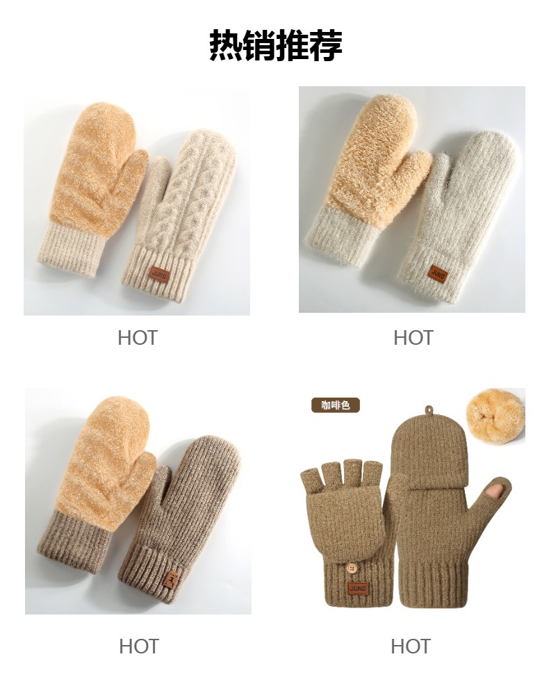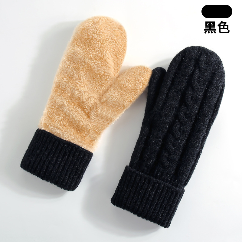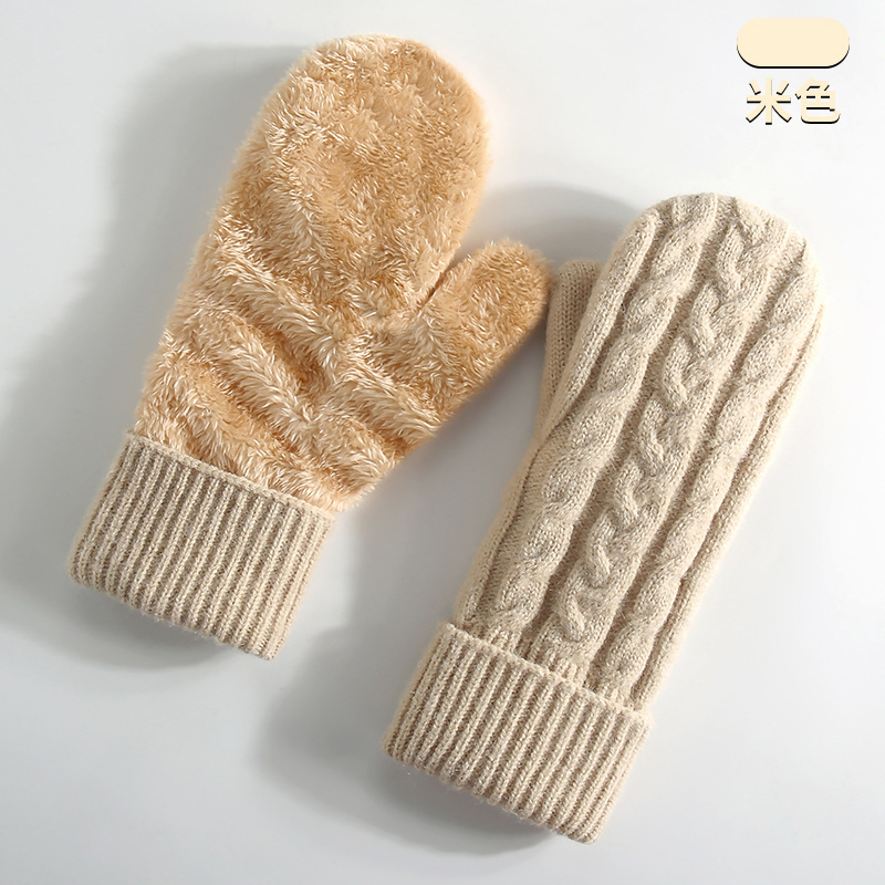 아마존 여성용 기모 두꺼운 니트 장갑 이중 보온 스키 장갑 손가락 덮개 장갑