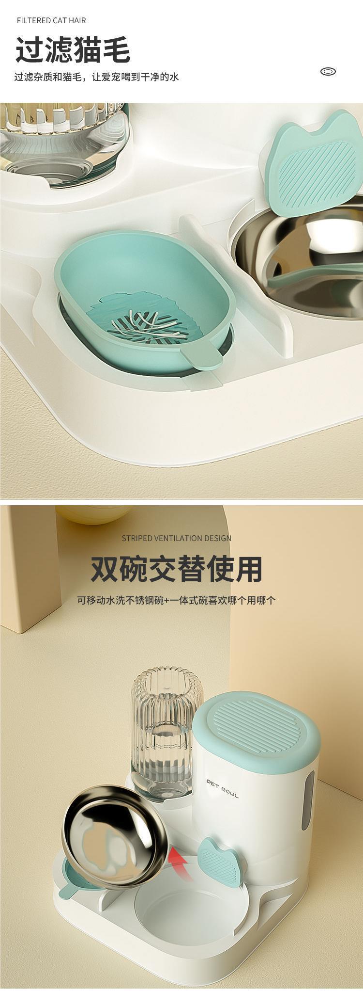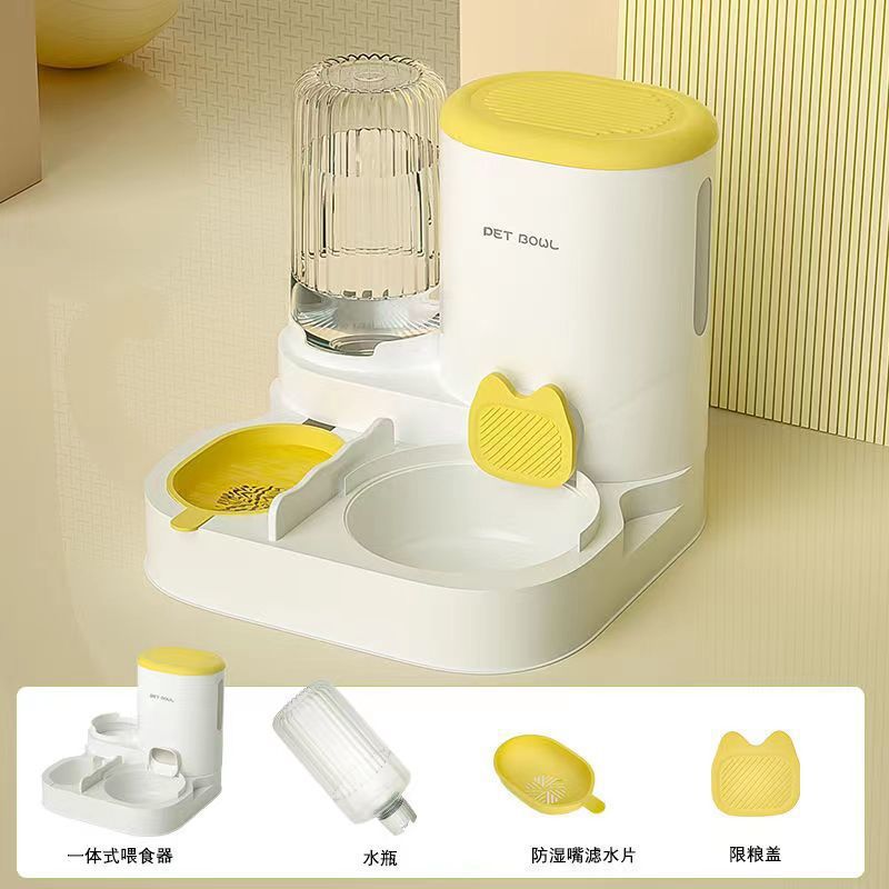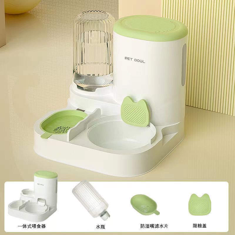 고양이 그릇 자동 급식기 고양이와 개 애완동물 워터 디스펜서 일체형 고양이 그릇 고양이 사료 그릇 개 먹고 마시는 이중 그릇