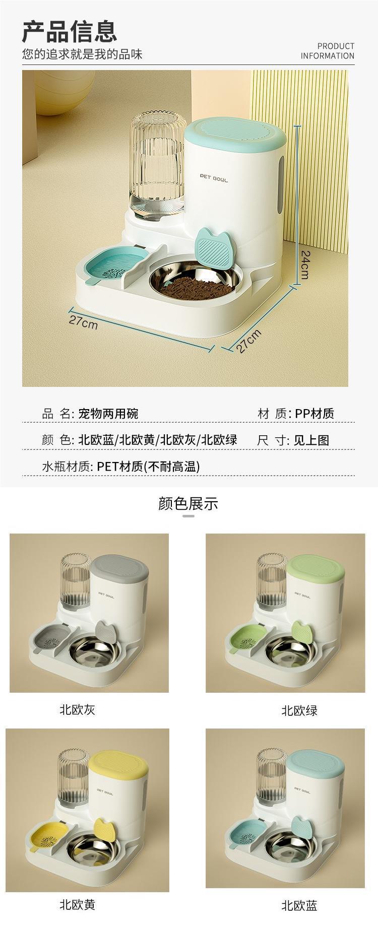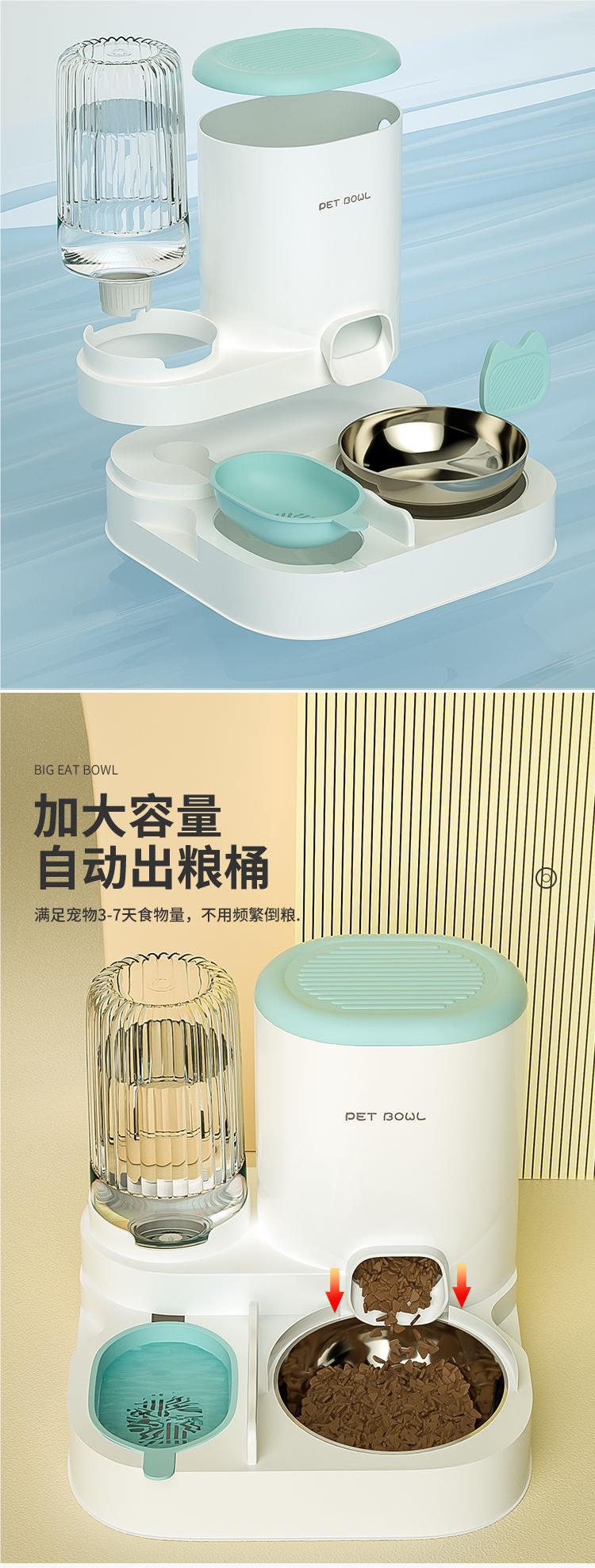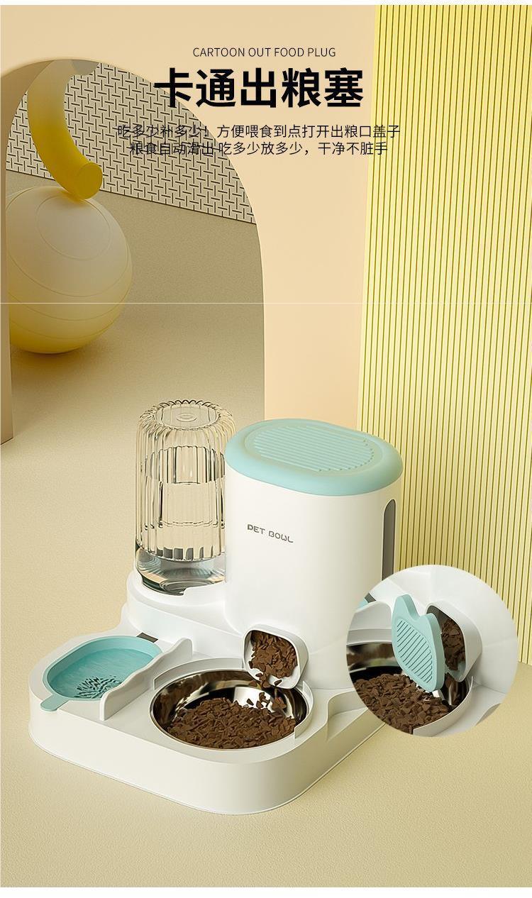 고양이 그릇 자동 급식기 고양이와 개 애완동물 워터 디스펜서 일체형 고양이 그릇 고양이 사료 그릇 개 먹고 마시는 이중 그릇스토어 가기